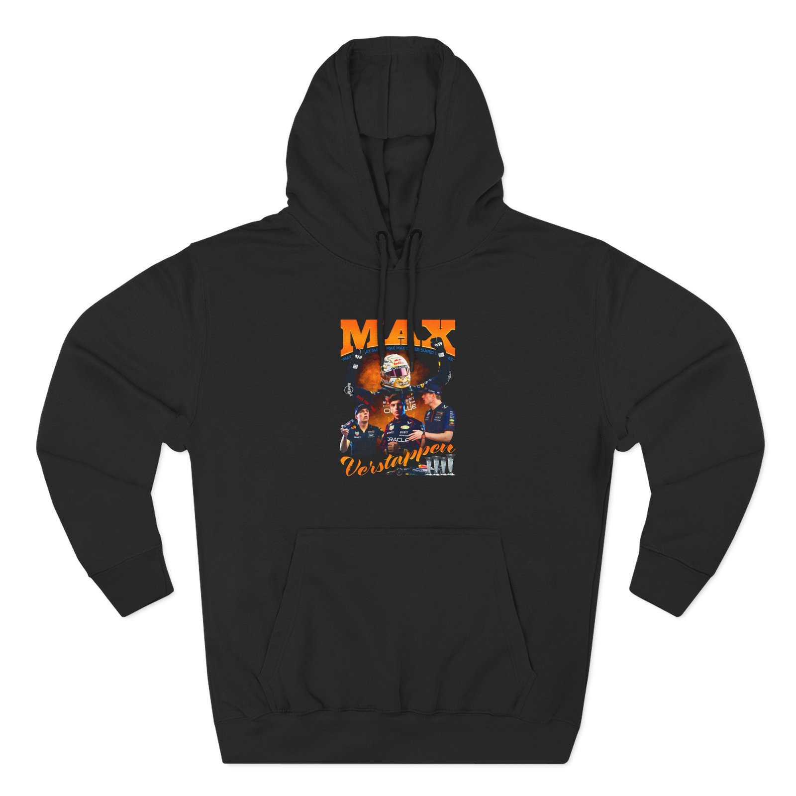 Beat the cold with this 2024 Max Verstappen Tribute premium pullover hoodie that’s just the right layer of warm and cozy. Made with three-panel fleece lining, this pullover is double stitched for durability and roomy. Pick one in your favorite color to match your style.