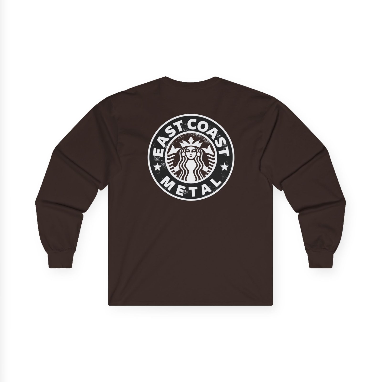 A bit more formal than a standard-issue t-shirt, A Wake in Providence East Coast Metal ultra cotton long sleeve tee is a clear comfort winner. The sleeves also act as a nice frame. There are no side seams. The shoulders are taped for improved durability. This makes for a good fitting around the shoulders and neck. The cotton used for these shirts is environmentally friendly.