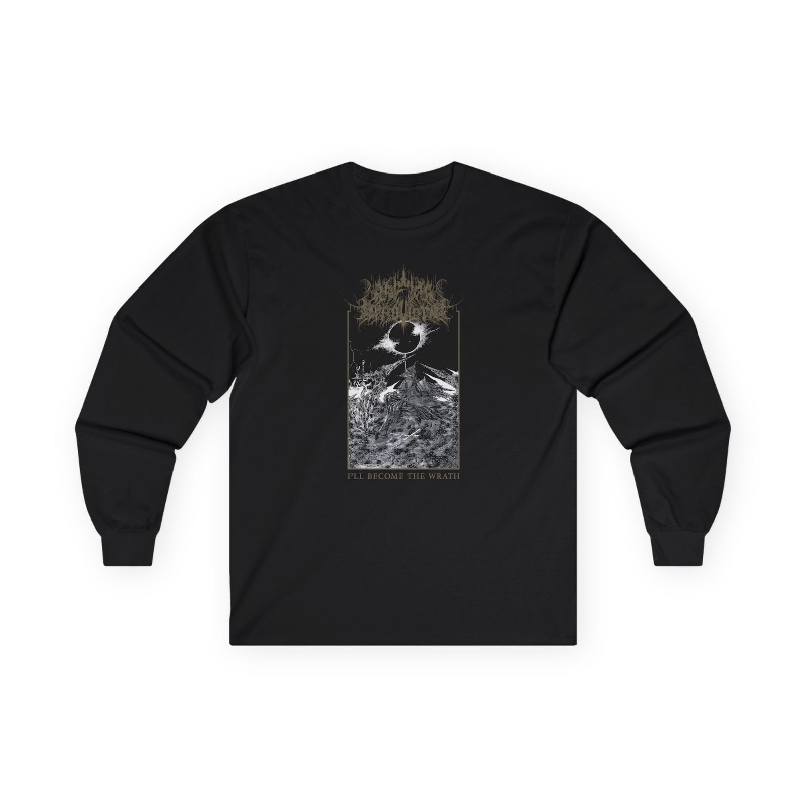 A bit more formal than a standard-issue t-shirt, A Wake in Providence Mournful Benediction ultra cotton long sleeve tee is a clear comfort winner. The sleeves also act as a nice frame. There are no side seams. The shoulders are taped for improved durability. This makes for a good fitting around the shoulders and neck. The cotton used for these shirts is environmentally friendly.