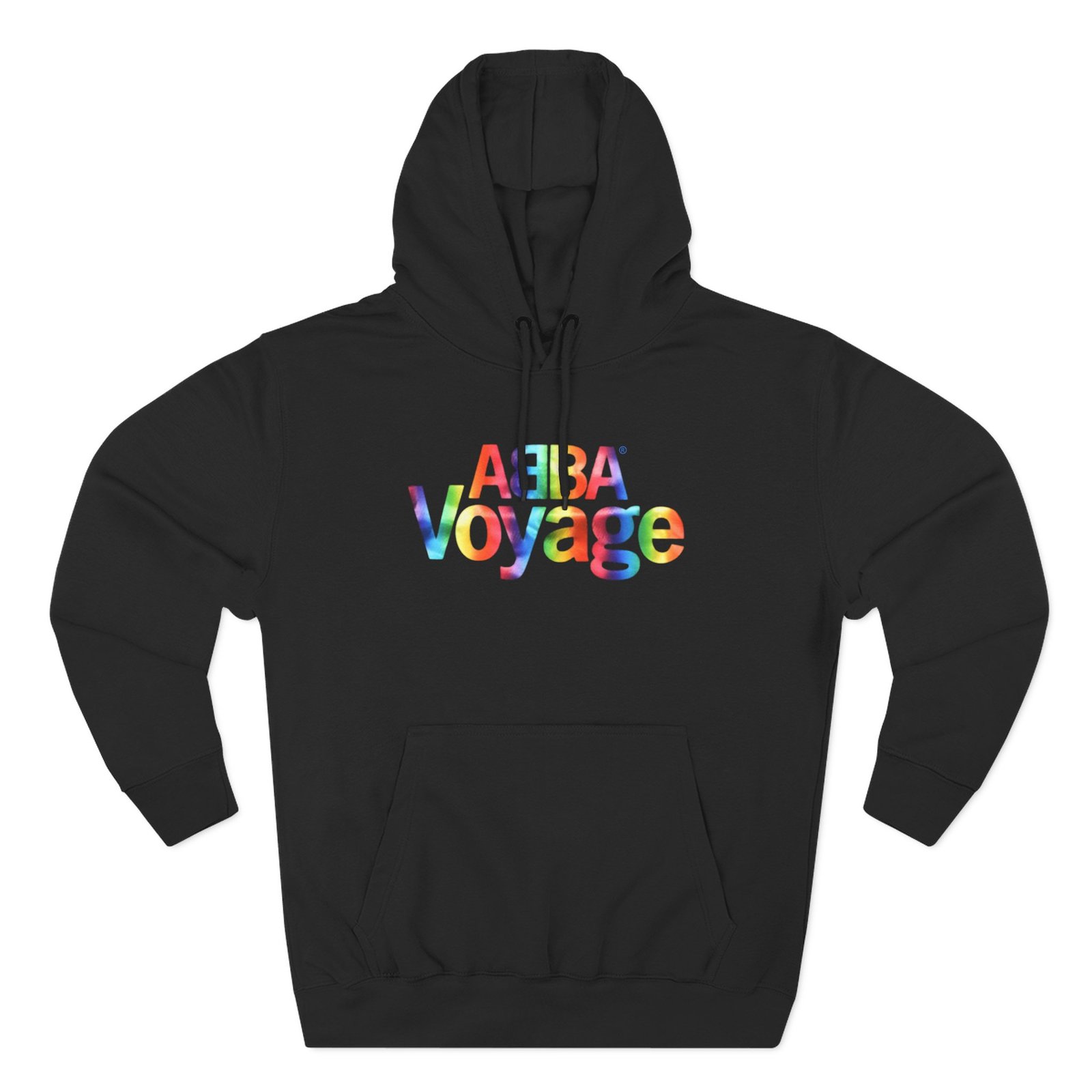 Beat the cold with this Abba Voyage Rainbow Foil Logo premium pullover hoodie that’s just the right layer of warm and cozy. Made with three-panel fleece lining, this pullover is double stitched for durability and roomy. Pick one in your favorite color to match your style.