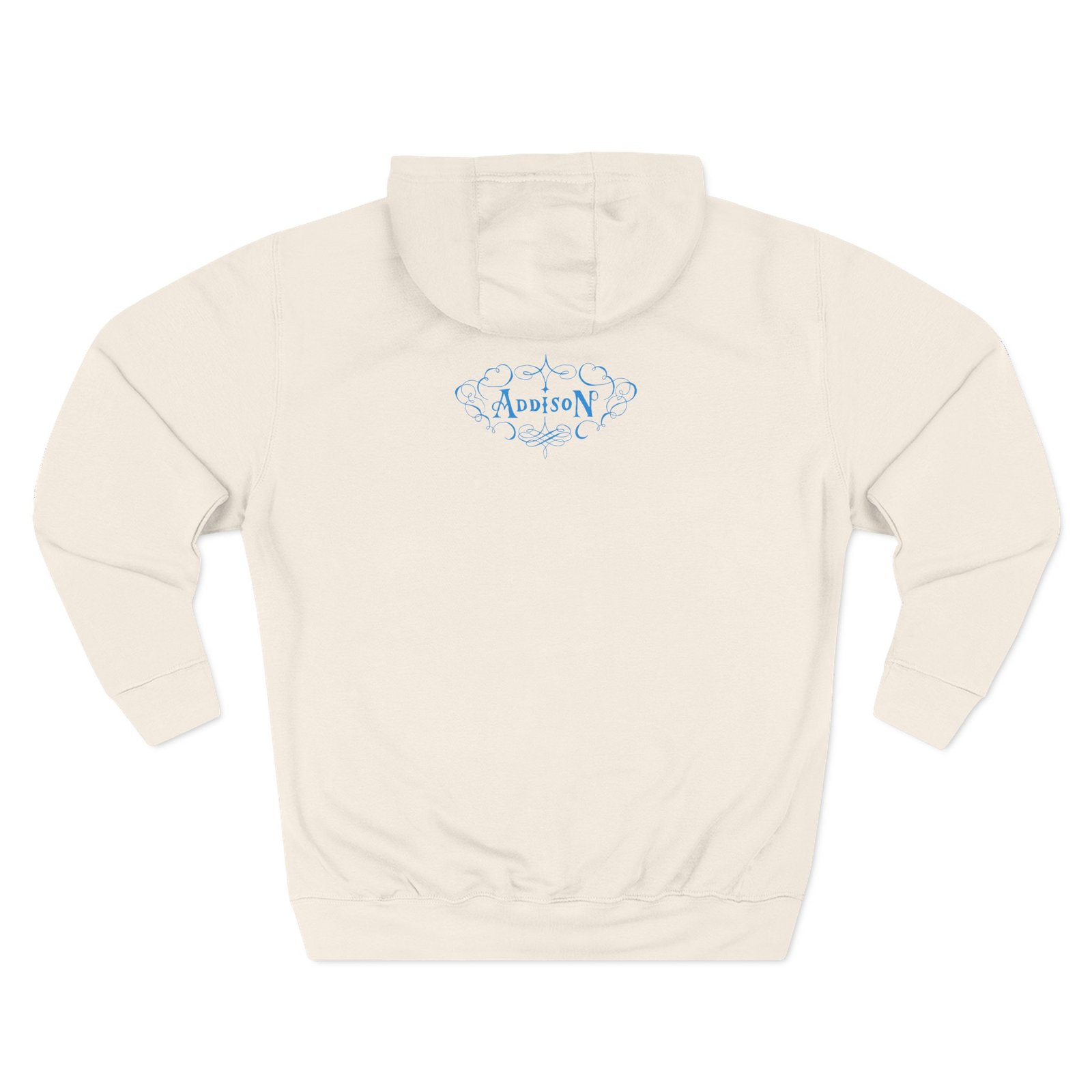 Beat the cold with this Addison Rae logo premium pullover hoodie that’s just the right layer of warm and cozy. Made with three-panel fleece lining, this pullover is double stitched for durability and roomy. Pick one in your favorite color to match your style.