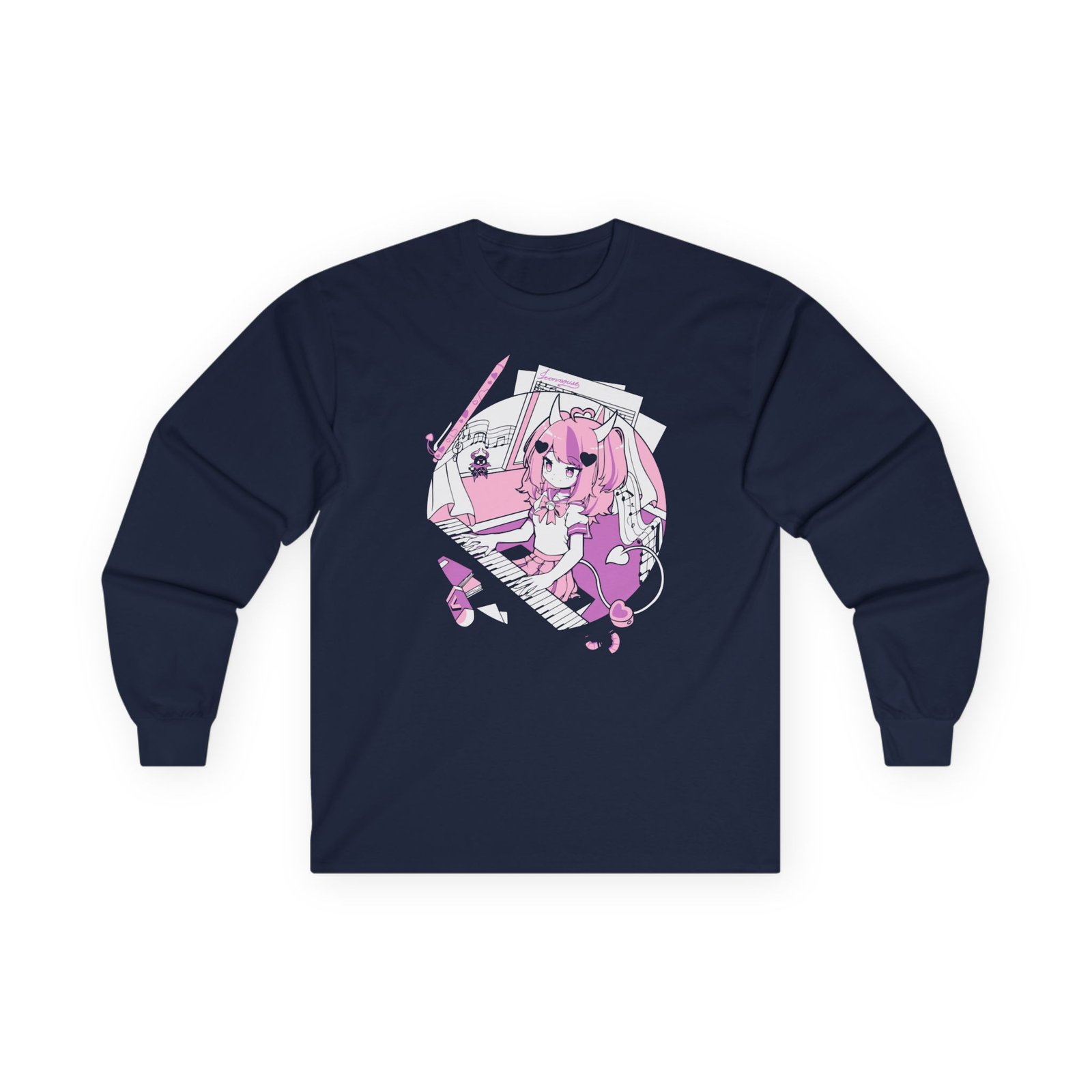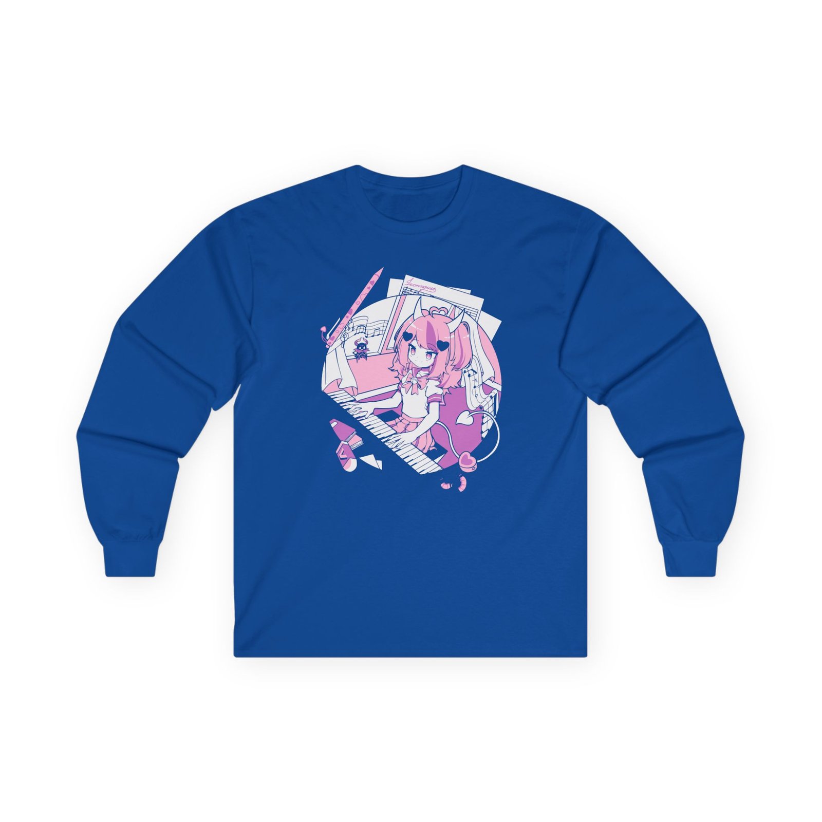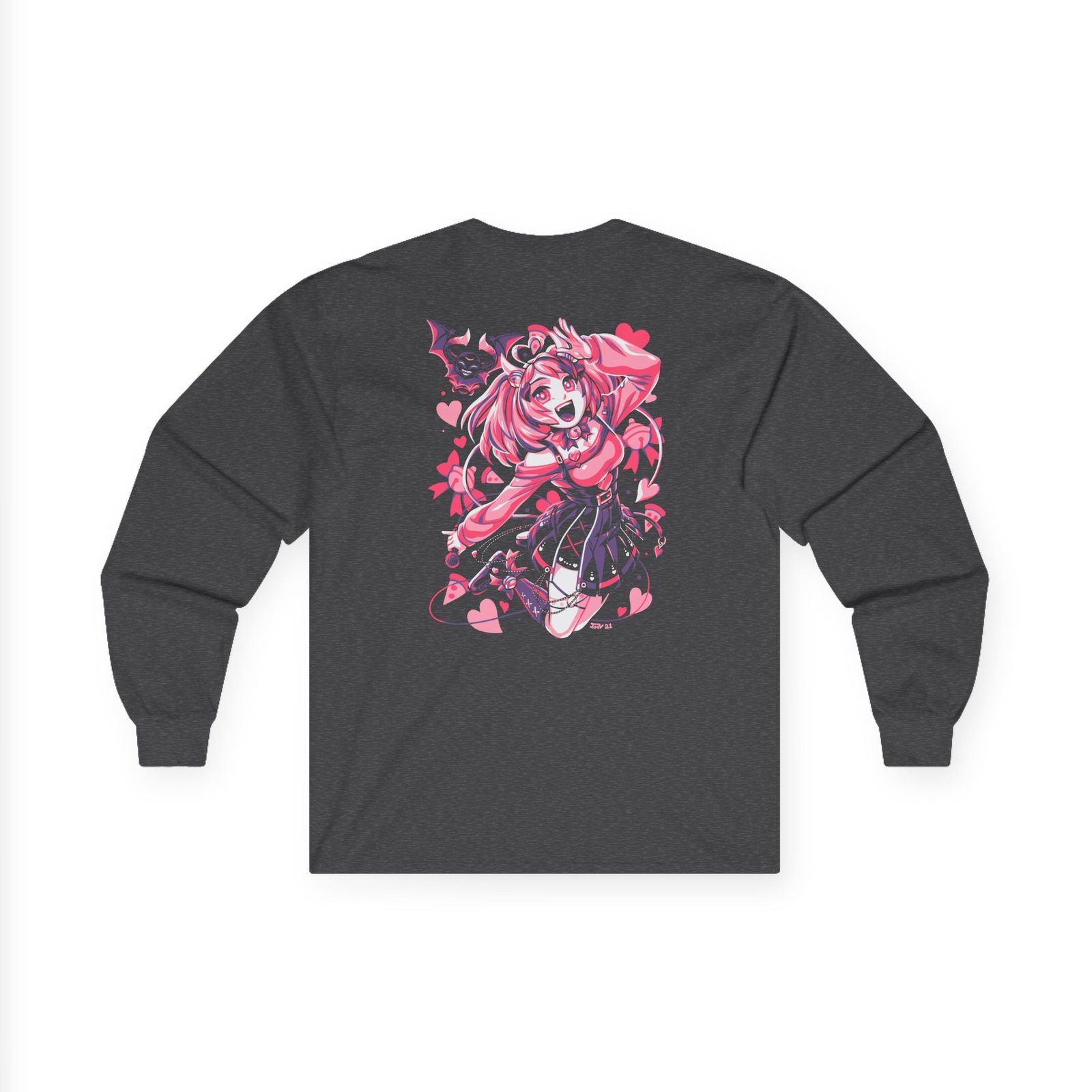 A bit more formal than a standard-issue t-shirt, the Anime Ironmouse ultra cotton long sleeve tee is a clear comfort winner. The sleeves also act as a nice frame. There are no side seams. The shoulders are taped for improved durability. This makes for a good fitting around the shoulders and neck. The cotton used for these shirts is environmentally friendly.