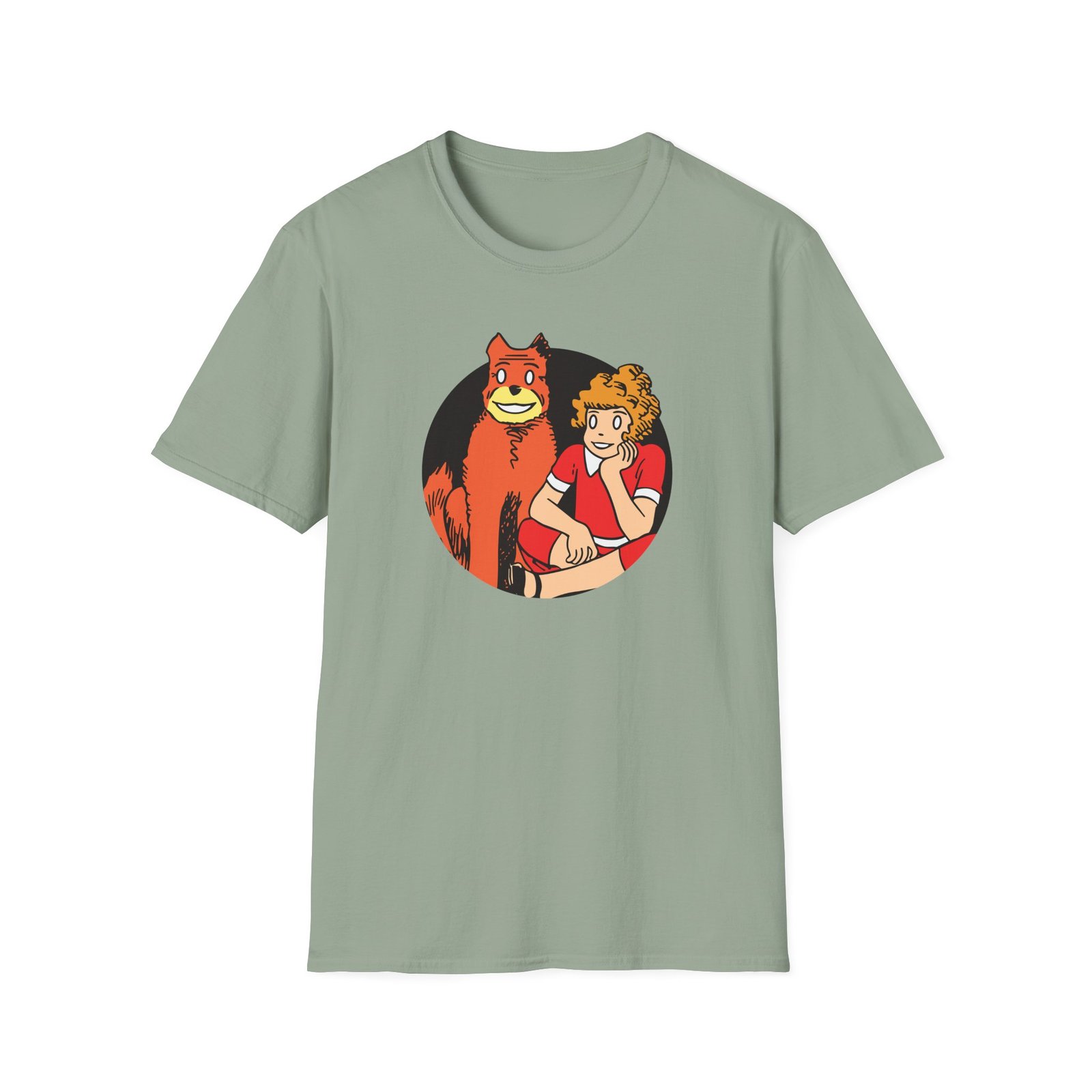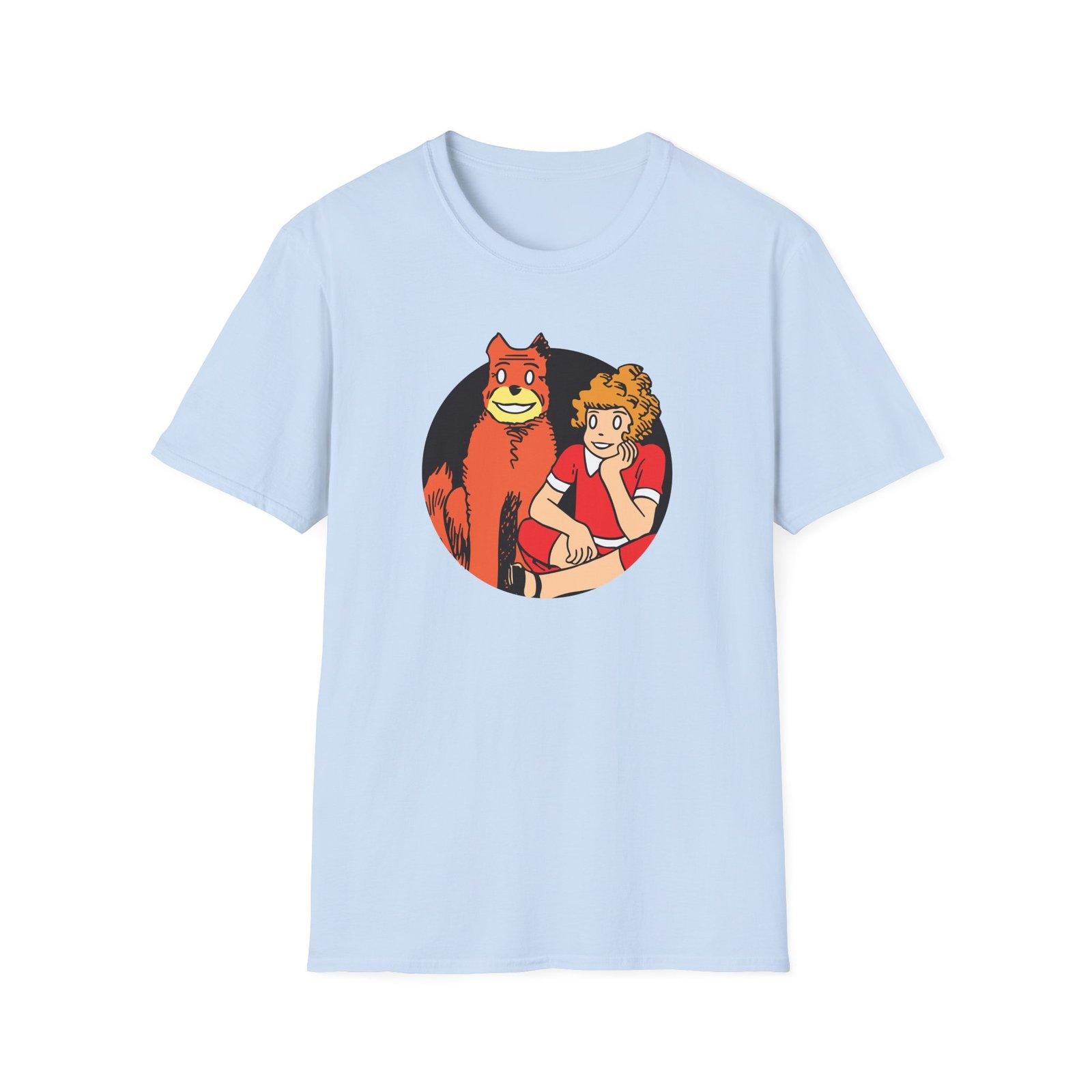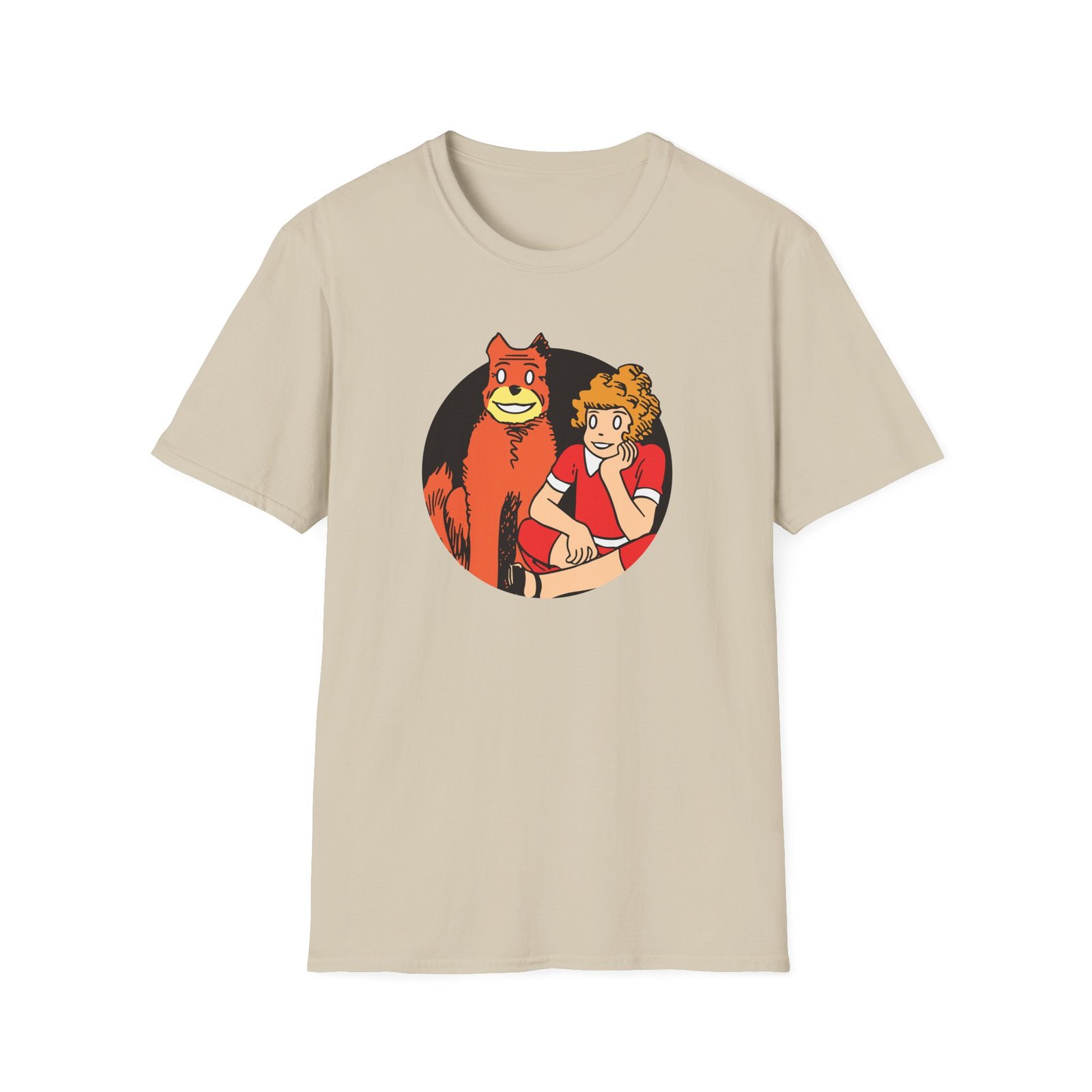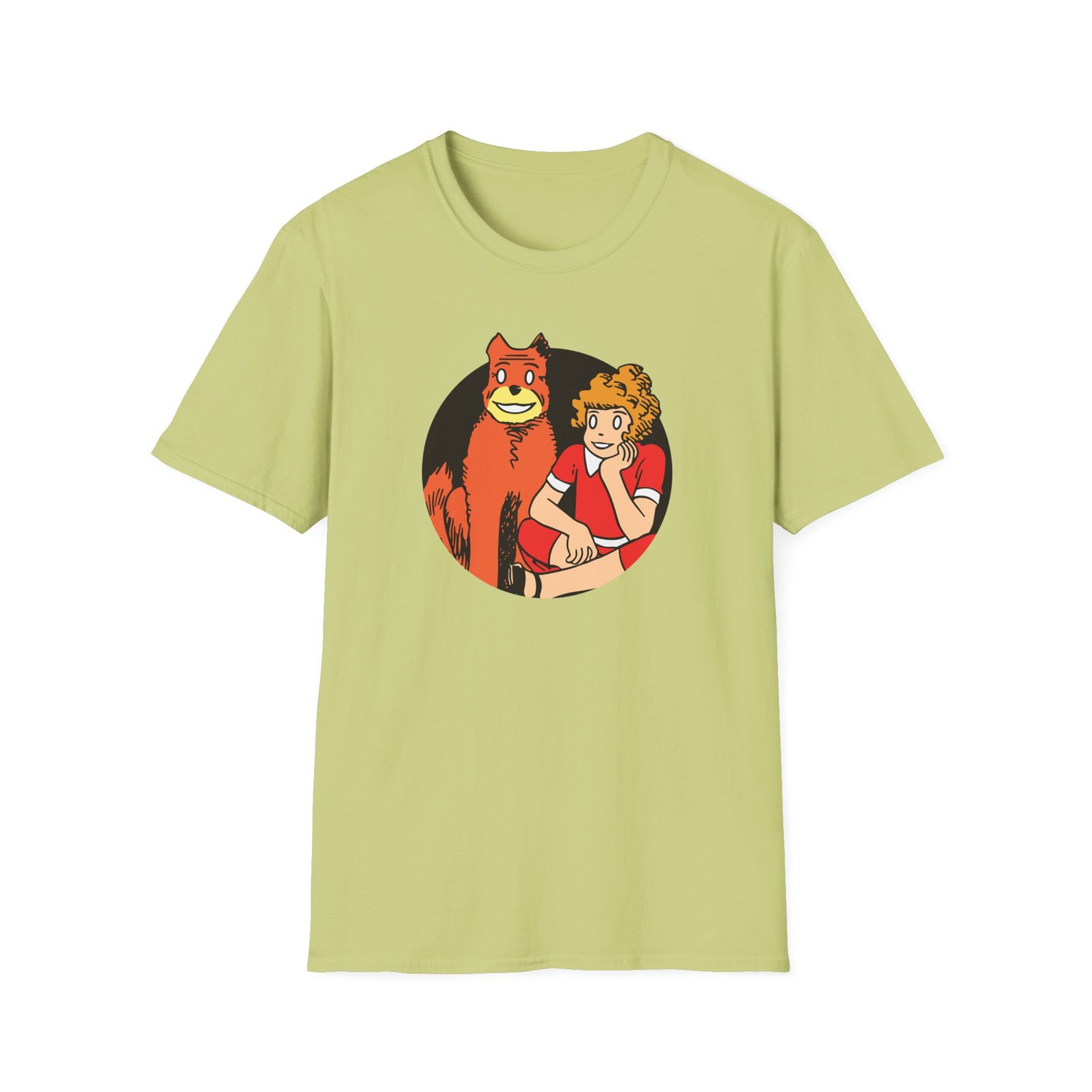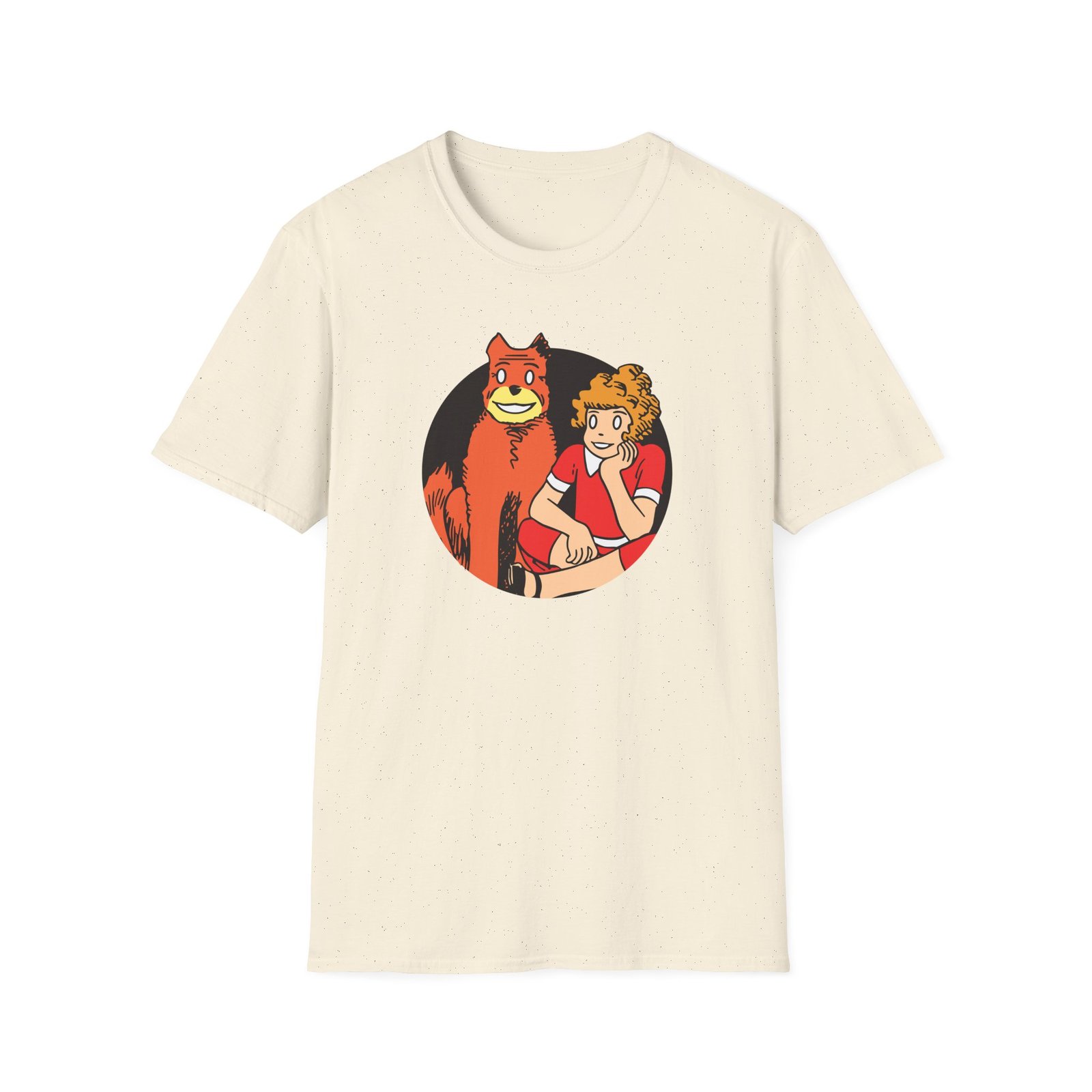 The Annie Cartoon unisex soft-style t-shirt puts a new spin on casual comfort. Made from very soft materials, this tee is 100% cotton for solid colors. Heather colors and sports grey include polyester. The shoulders have twill tape for improved durability. There are no side seams. The collar is made with ribbed knitting to prevent curling damage.