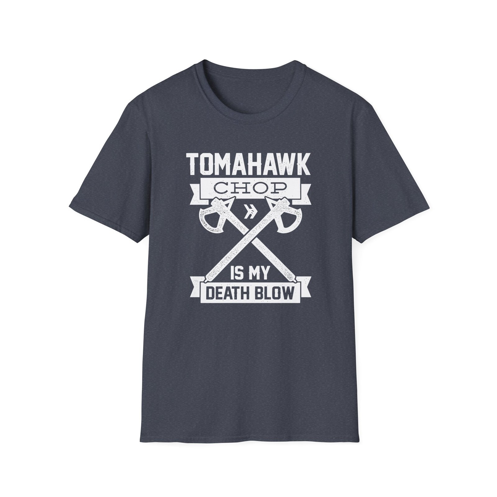 The Anthony Padilla Tomahawk Chop is My Death Blow unisex soft-style t-shirt puts a new spin on casual comfort. Made from very soft materials, this tee is 100% cotton for solid colors. Heather colors and sports grey include polyester. The shoulders have twill tape for improved durability. There are no side seams. The collar is made with ribbed knitting to prevent curling damage.