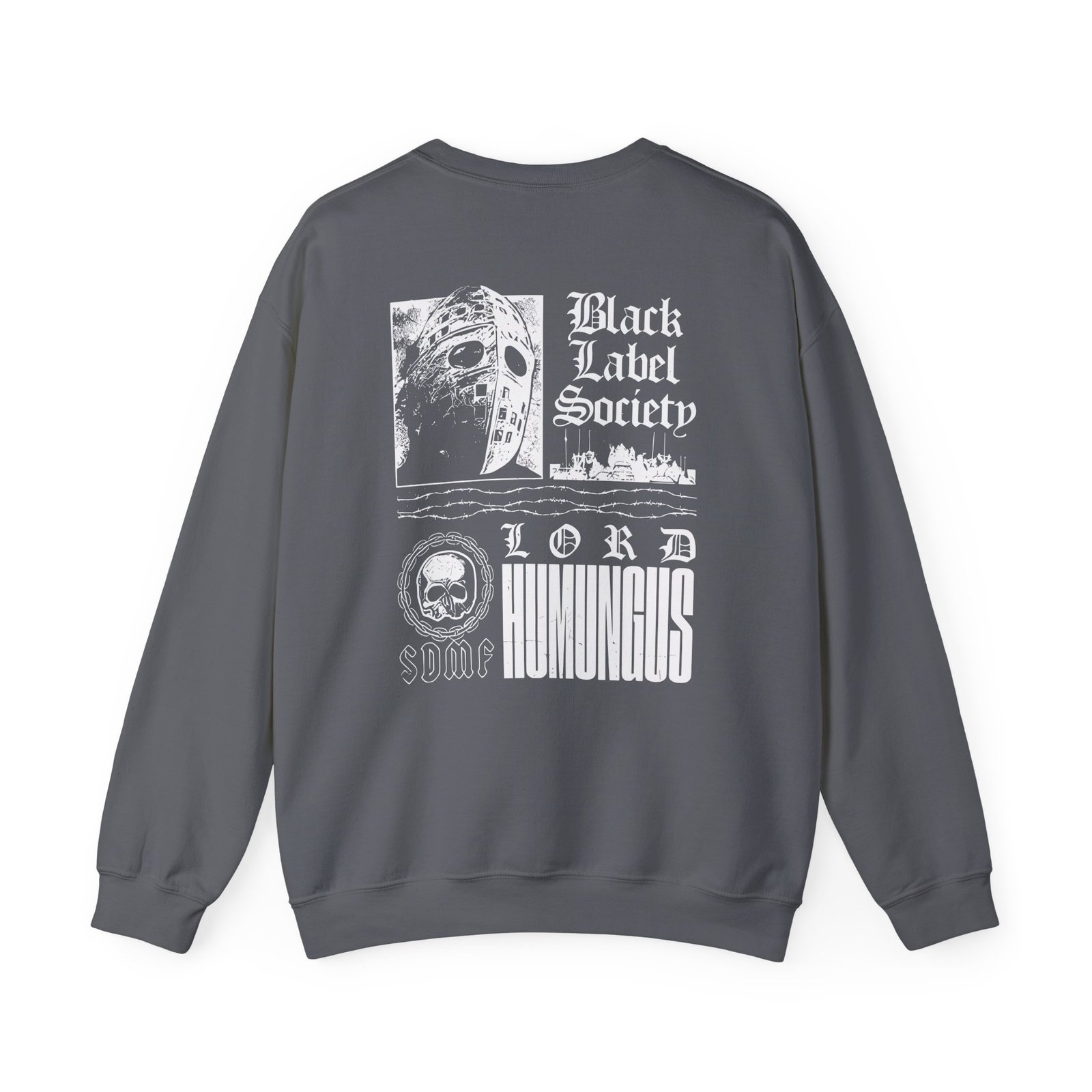 Ideal for any situation, a Black Label Society Script Lord Humungus unisex heavy blend crewneck sweatshirt is pure comfort. These garments are made from polyester and cotton. This combination helps designs come out looking fresh and beautiful. The collar is ribbed knit, so it retains its shape even after washing. There are no itchy side seams on these sweaters.