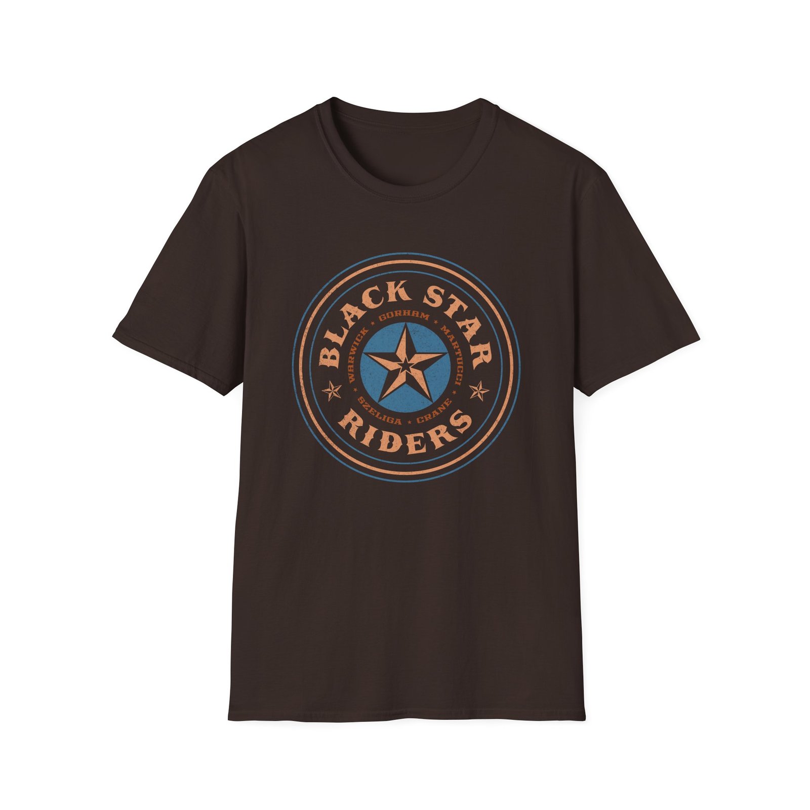 The Black Star Riders Blue Star unisex soft-style t-shirt puts a new spin on casual comfort. Made from very soft materials, this tee is 100% cotton for solid colors. Heather colors and sports grey include polyester. The shoulders have twill tape for improved durability. There are no side seams. The collar is made with ribbed knitting to prevent curling damage.