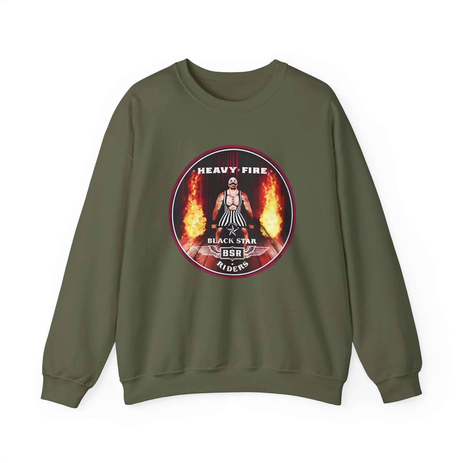 Ideal for any situation, a Black Star Riders Heavy Fire unisex heavy blend crewneck sweatshirt is pure comfort. These garments are made from polyester and cotton. This combination helps designs come out looking fresh and beautiful. The collar is ribbed knit, so it retains its shape even after washing. There are no itchy side seams on these sweaters.