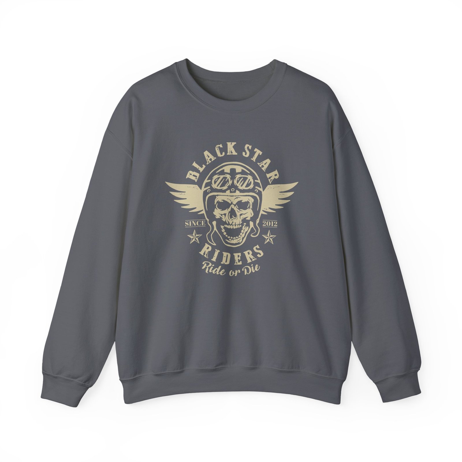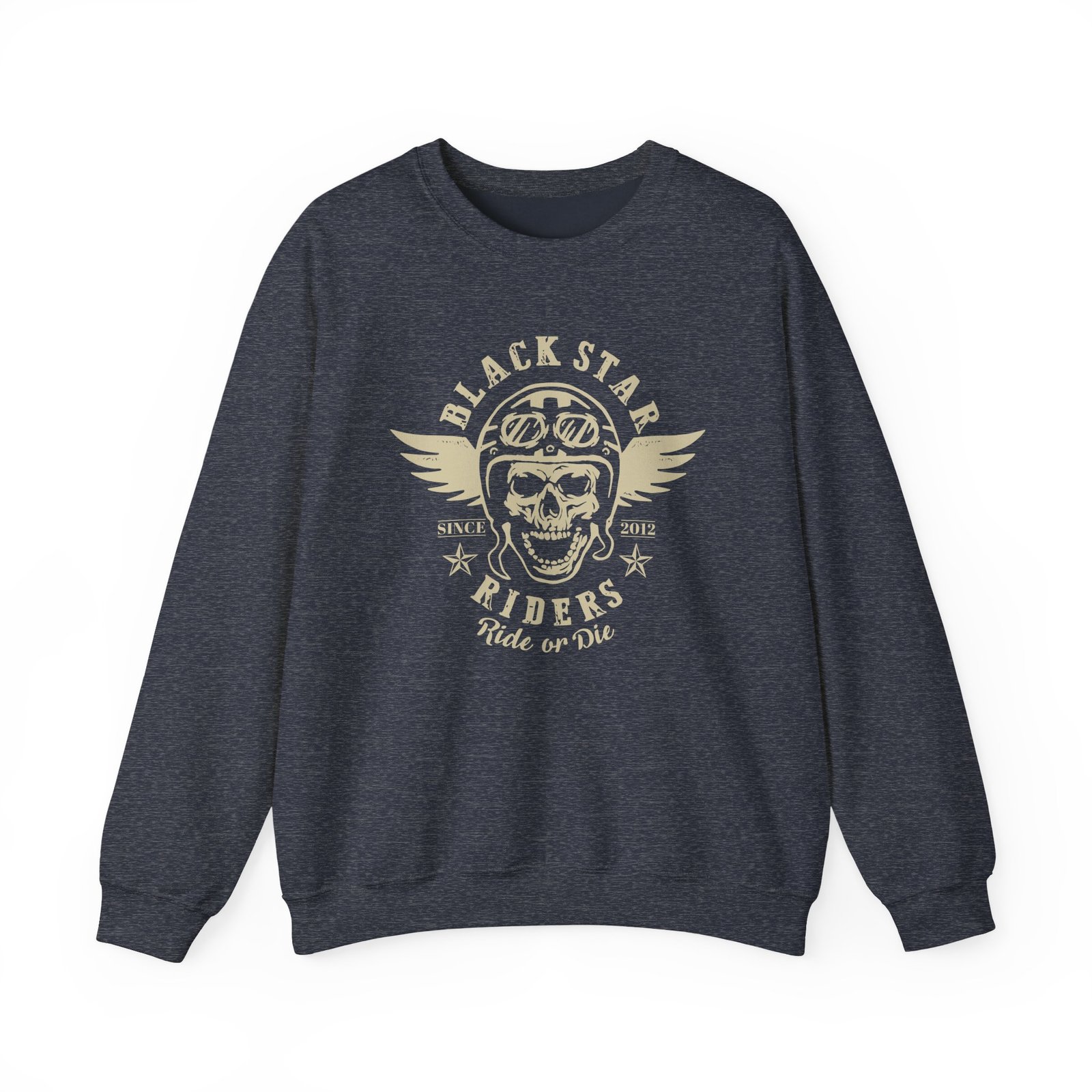 Ideal for any situation, a Black Star Riders Skeleton Biker unisex heavy blend crewneck sweatshirt is pure comfort. These garments are made from polyester and cotton. This combination helps designs come out looking fresh and beautiful. The collar is ribbed knit, so it retains its shape even after washing. There are no itchy side seams on these sweaters.