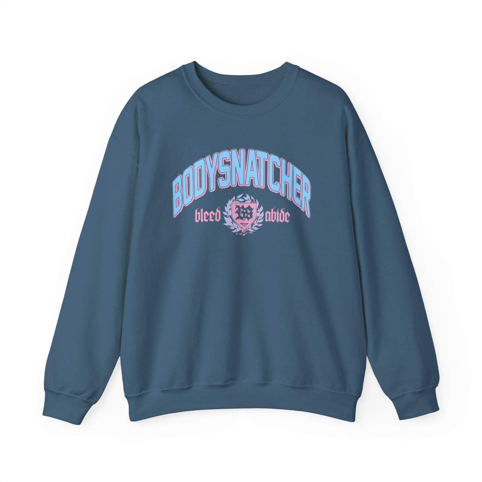 Ideal for any situation, a Bodysnatcher Collegiate unisex heavy blend crewneck sweatshirt is pure comfort. These garments are made from polyester and cotton. This combination helps designs come out looking fresh and beautiful. The collar is ribbed knit, so it retains its shape even after washing. There are no itchy side seams on these sweaters.