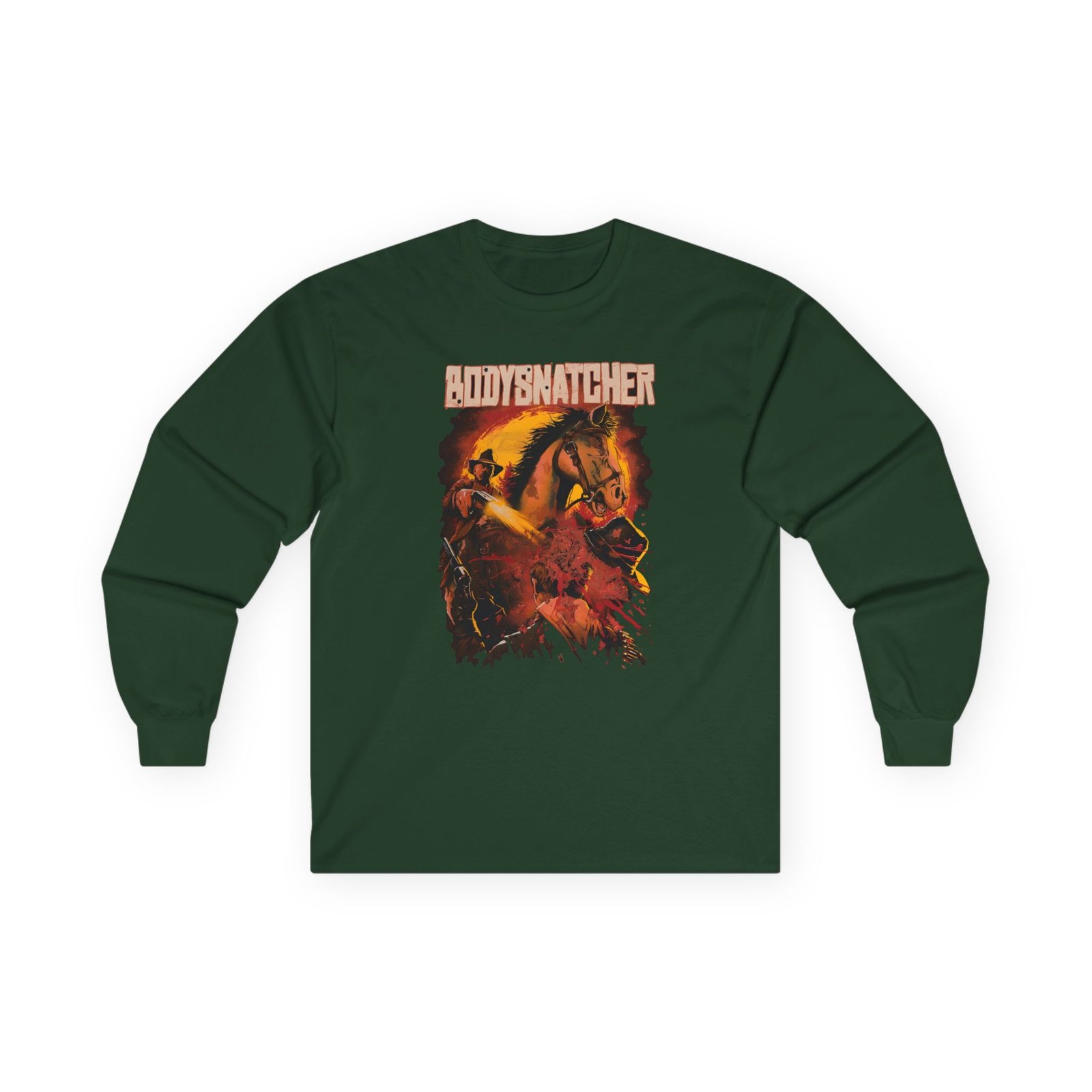 A bit more formal than a standard-issue t-shirt, the Bodysnatcher Cowboy Design ultra cotton long sleeve tee is a clear comfort winner. The sleeves also act as a nice frame. There are no side seams. The shoulders are taped for improved durability. This makes for a good fitting around the shoulders and neck. The cotton used for these shirts is environmentally friendly.