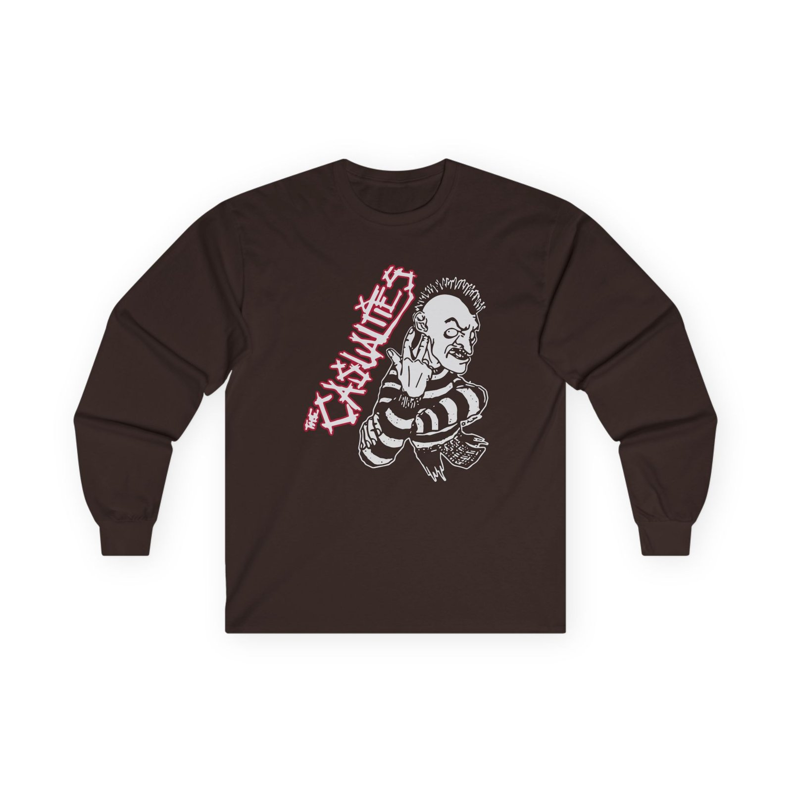 A bit more formal than a standard-issue t-shirt, the Casualties ultra cotton long sleeve tee is a clear comfort winner. The sleeves also act as a nice frame. There are no side seams. The shoulders are taped for improved durability. This makes for a good fitting around the shoulders and neck. The cotton used for these shirts is environmentally friendly.
