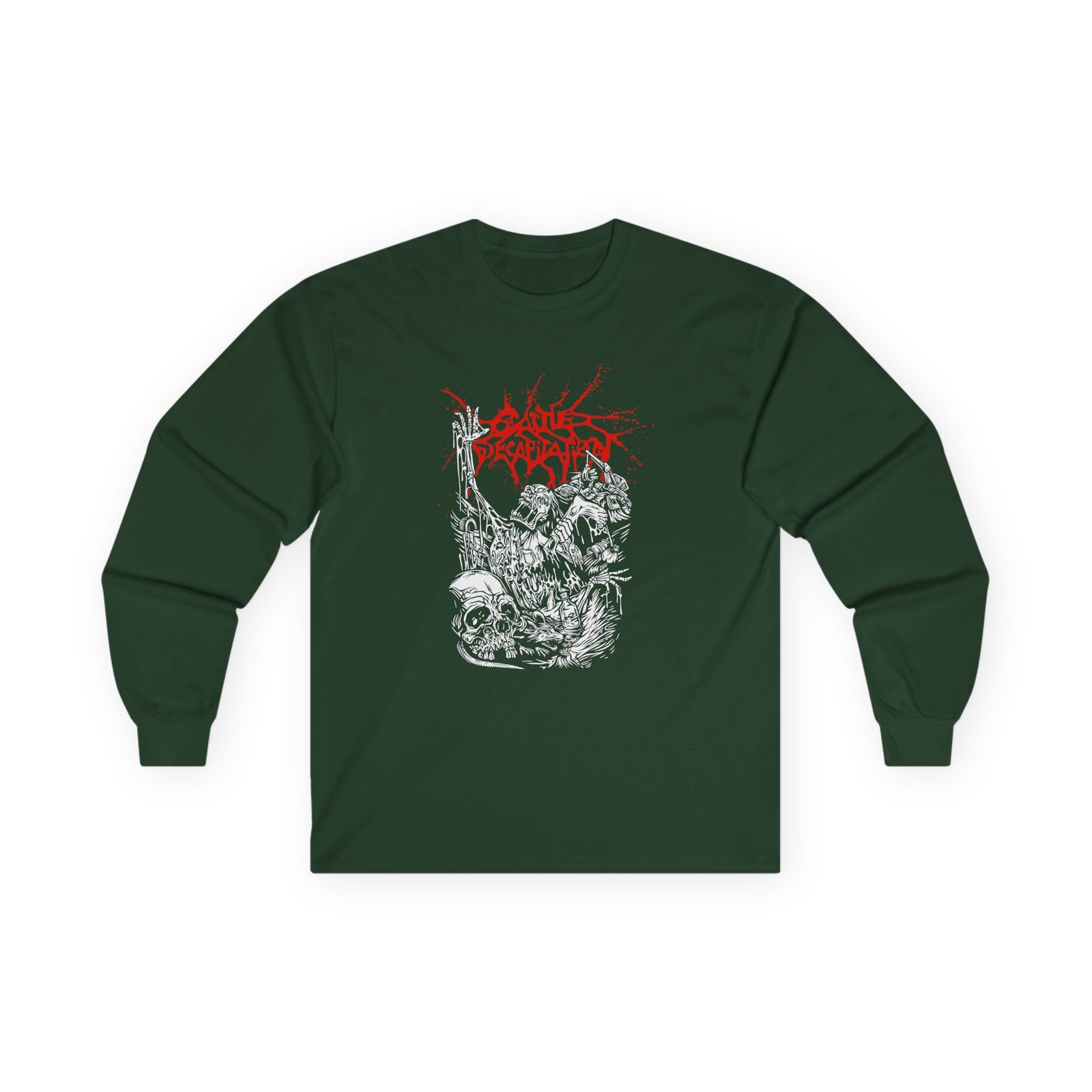 A bit more formal than a standard-issue t-shirt, the Cattle Decap Alone at the Landfill ultra cotton long sleeve tee is a clear comfort winner. The sleeves also act as a nice frame. There are no side seams. The shoulders are taped for improved durability. This makes for a good fitting around the shoulders and neck. The cotton used for these shirts is environmentally friendly.