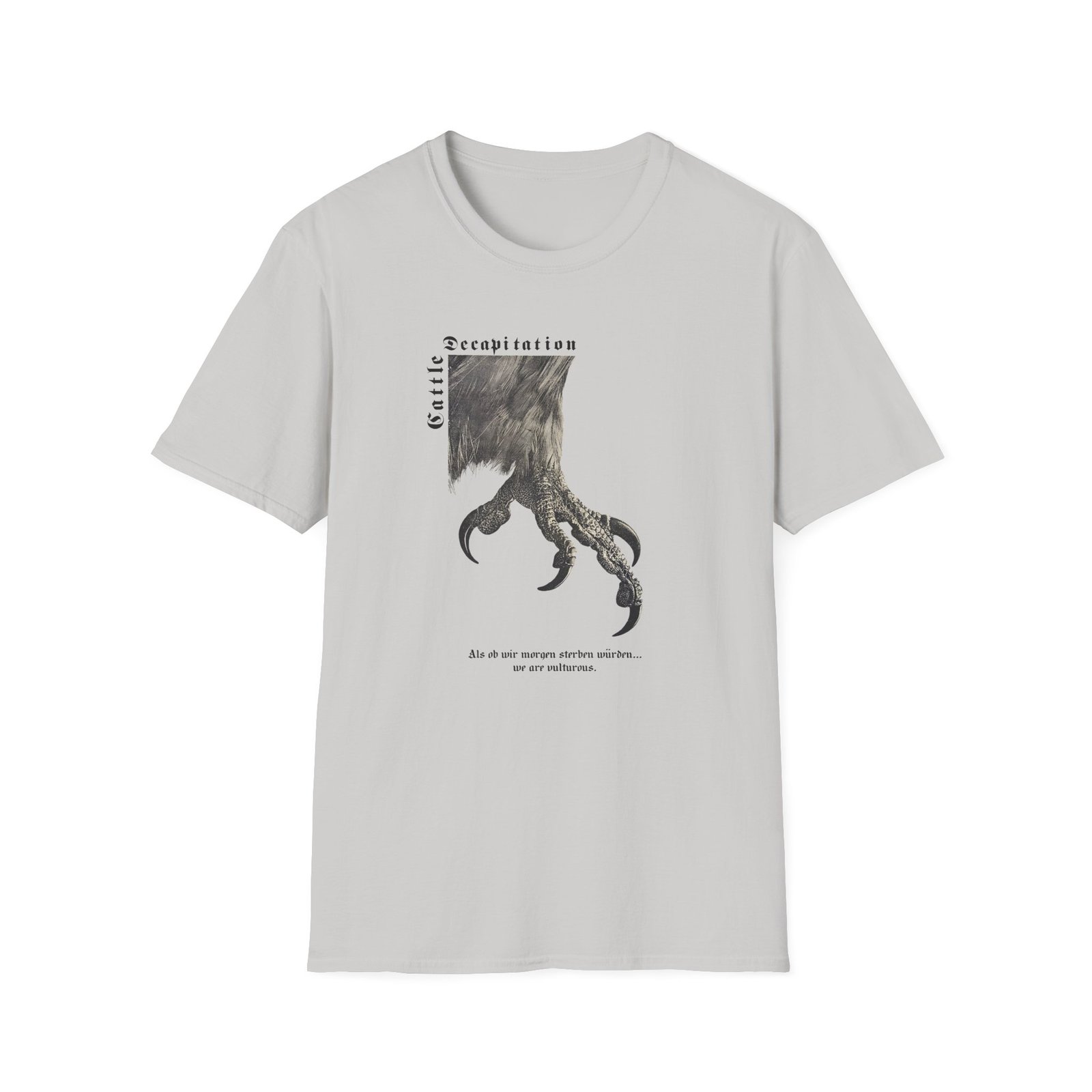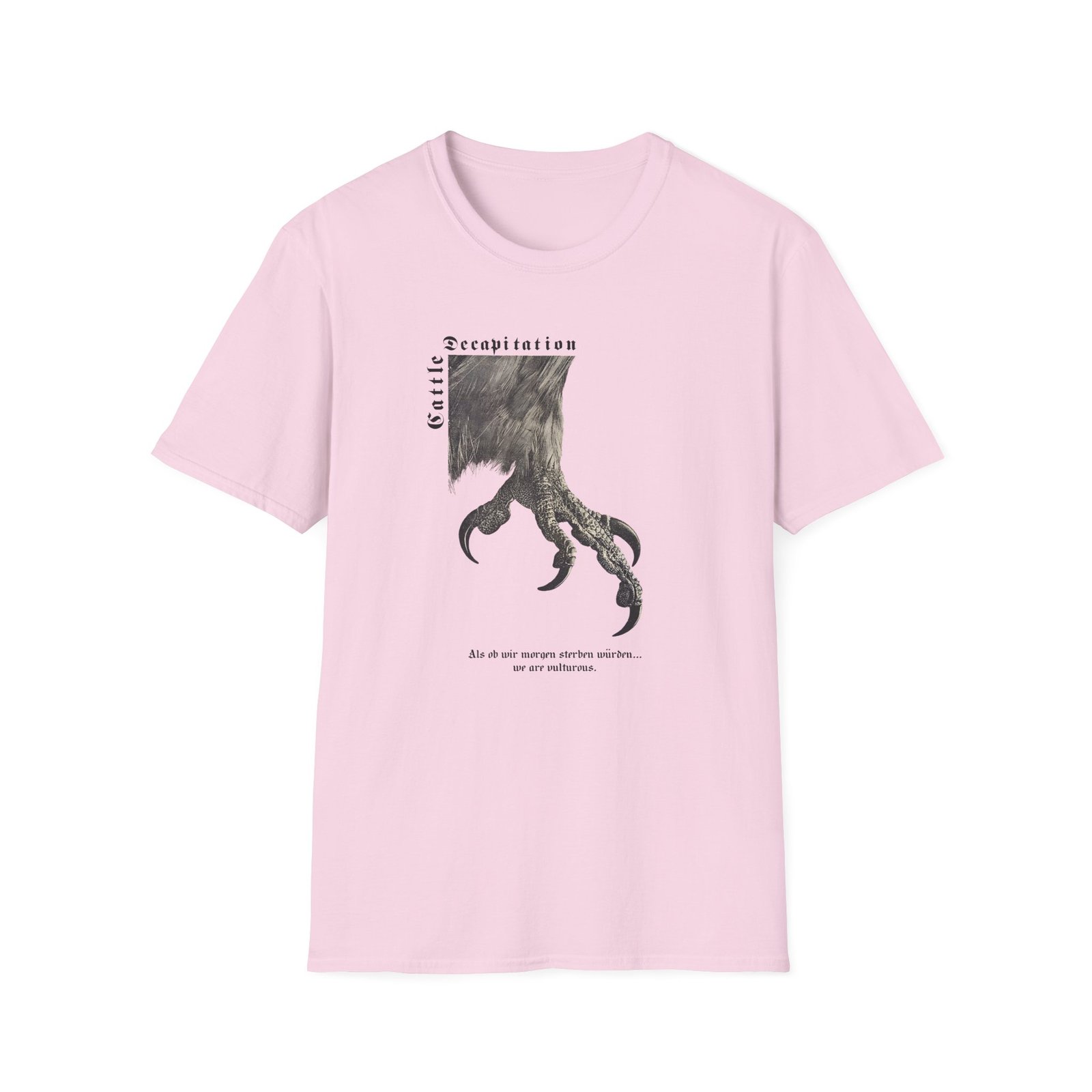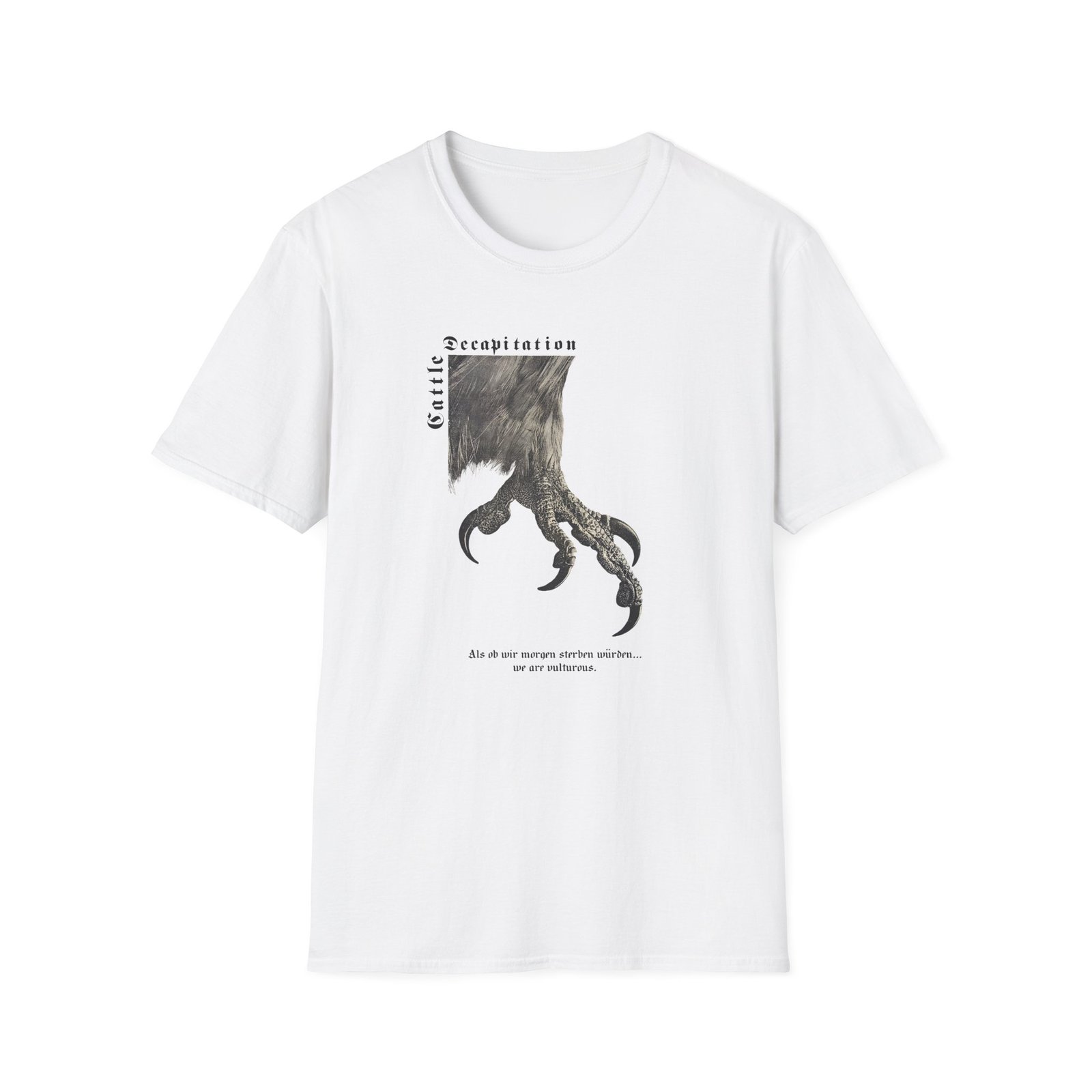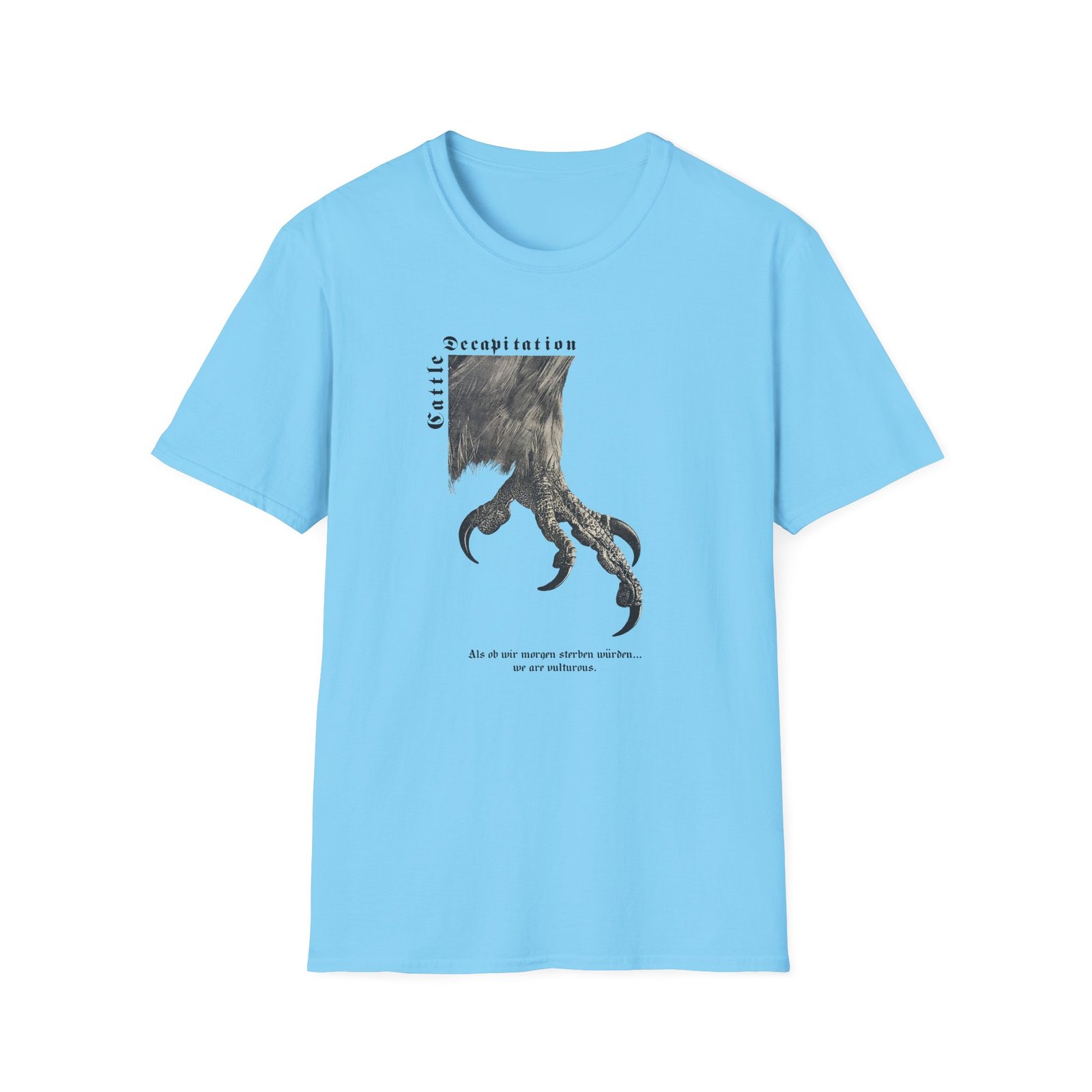 The Cattle Decap Logo unisex soft-style t-shirt puts a new spin on casual comfort. Made from very soft materials, this tee is 100% cotton for solid colors. Heather colors and sports grey include polyester. The shoulders have twill tape for improved durability. There are no side seams. The collar is made with ribbed knitting to prevent curling damage.