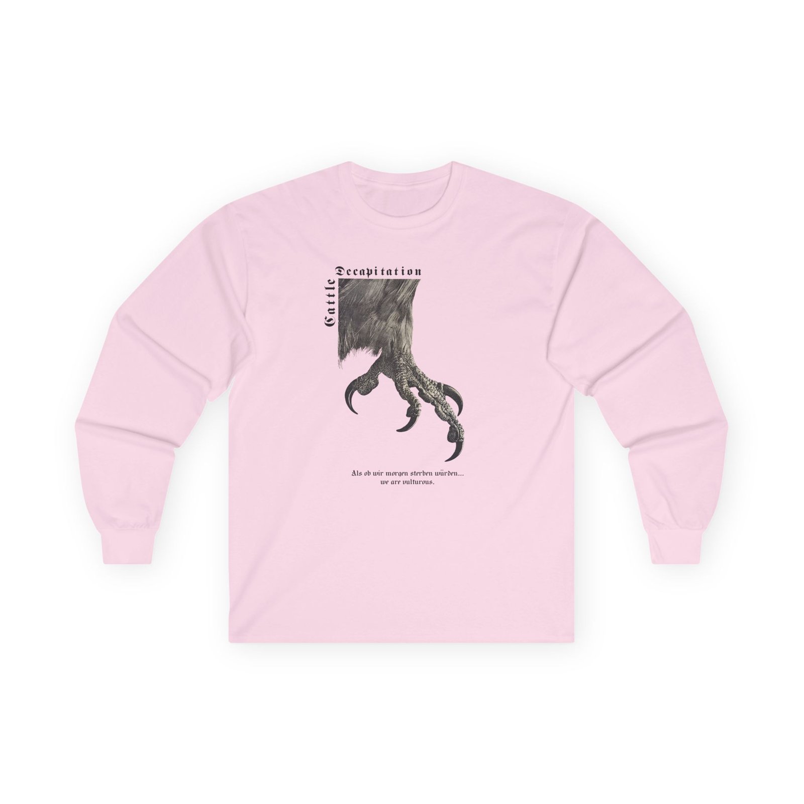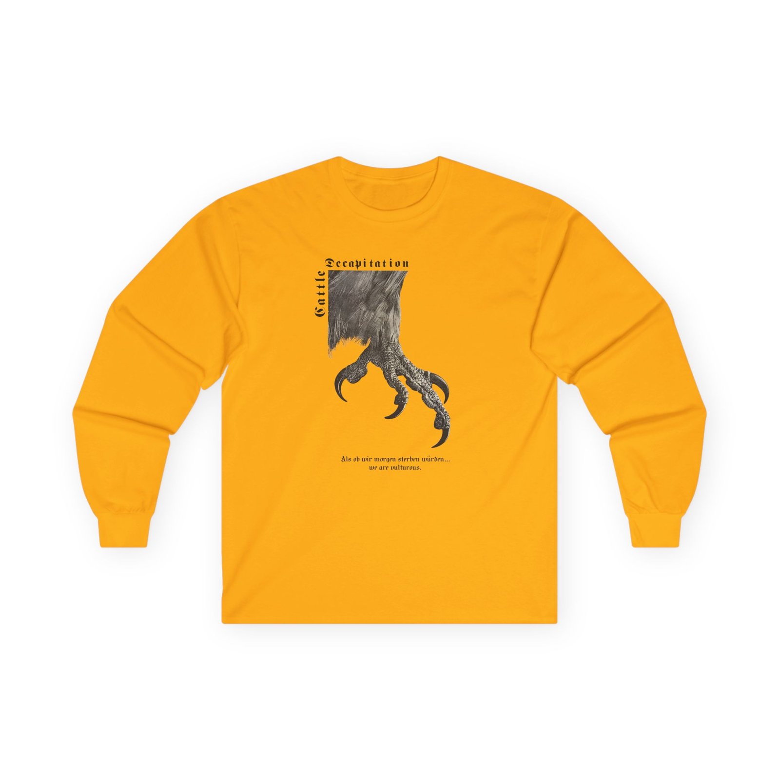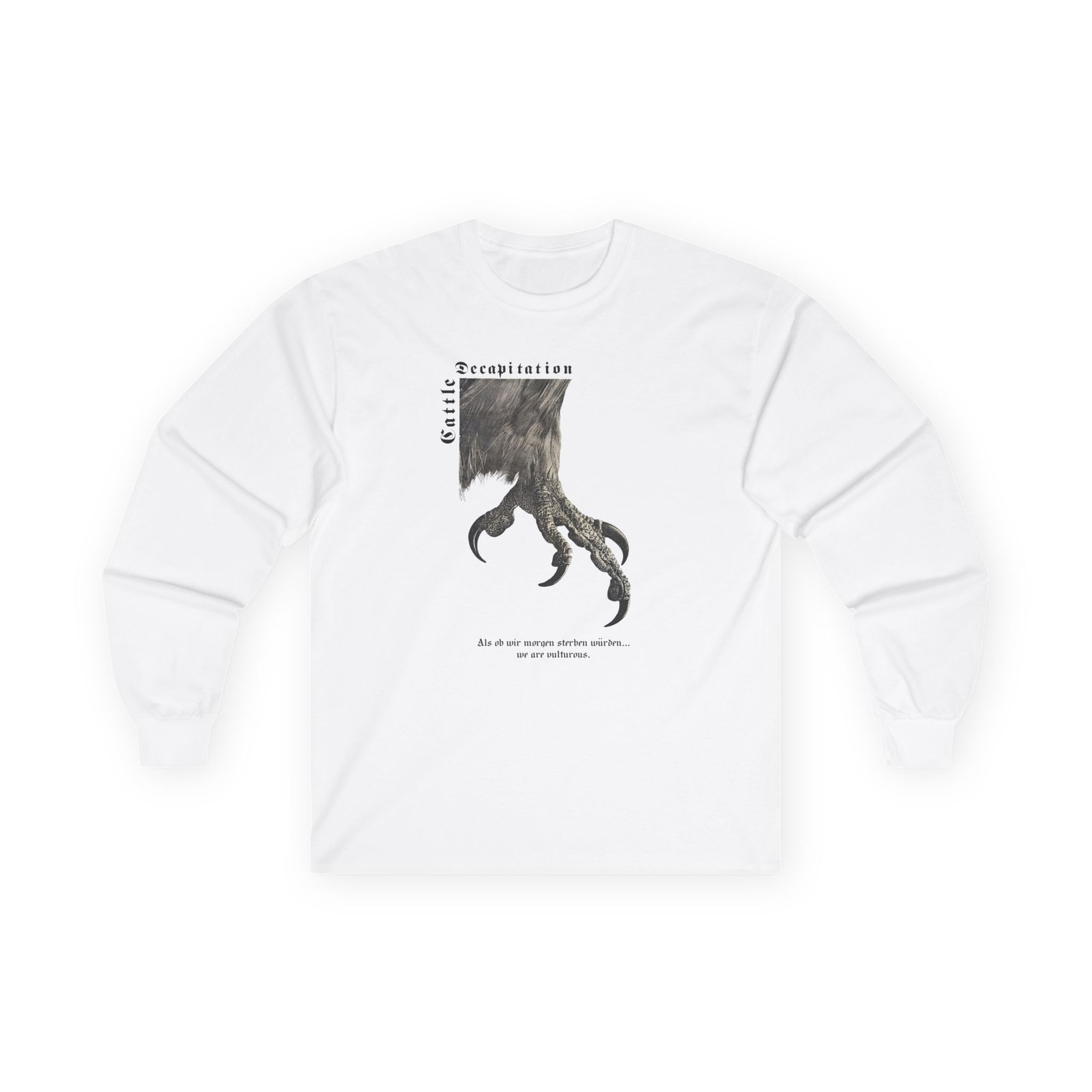 A bit more formal than a standard-issue t-shirt, the Cattle Decap Vulturous ultra cotton long sleeve tee is a clear comfort winner. The sleeves also act as a nice frame. There are no side seams. The shoulders are taped for improved durability. This makes for a good fitting around the shoulders and neck. The cotton used for these shirts is environmentally friendly.