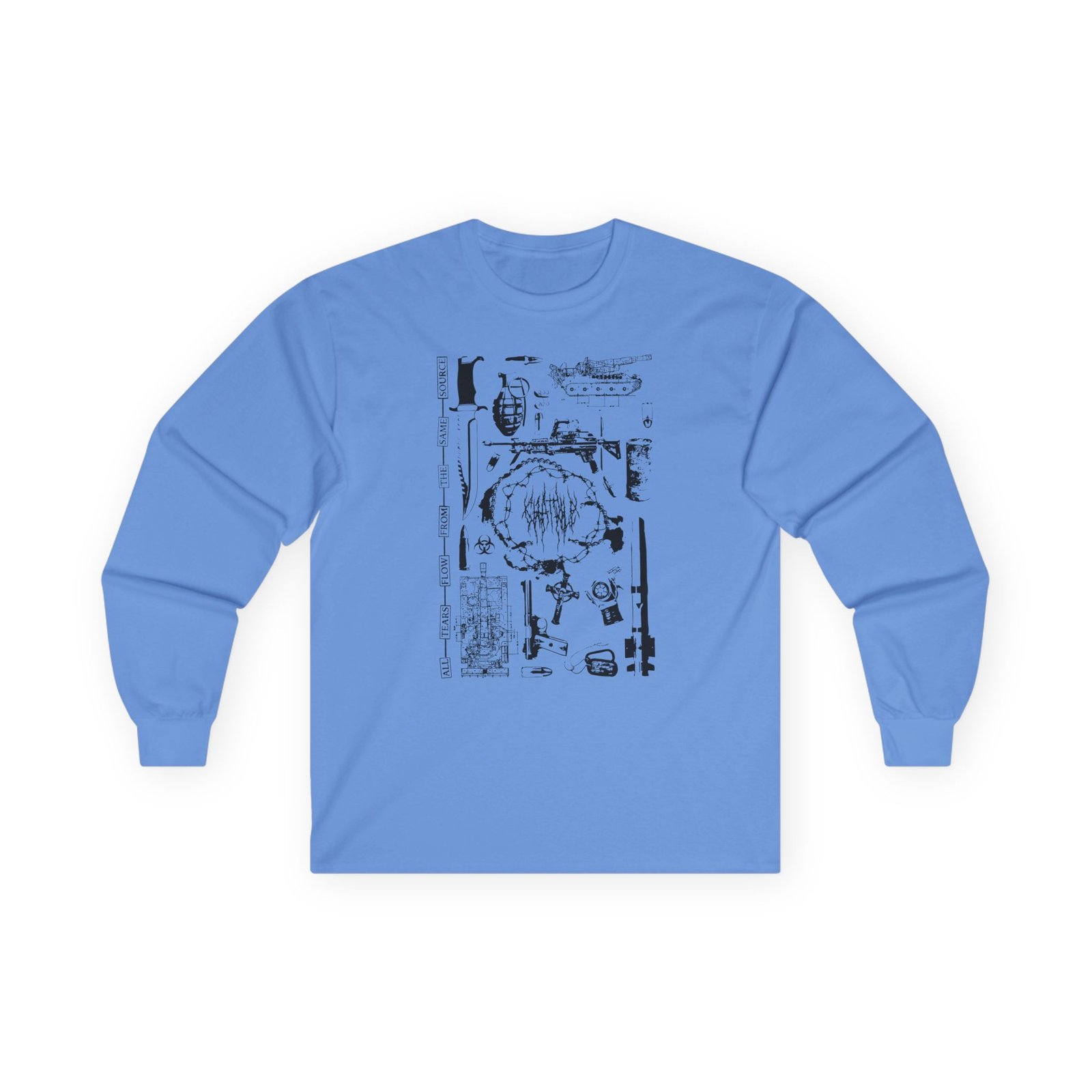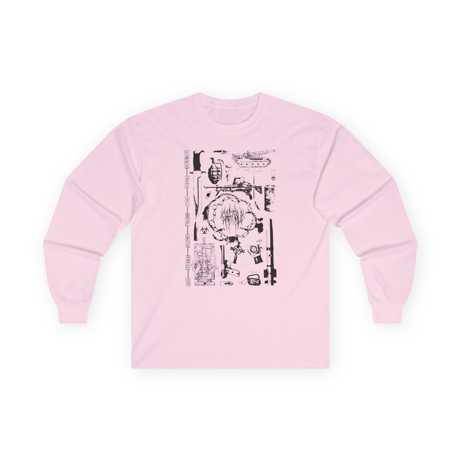 A bit more formal than a standard-issue t-shirt, the Chat Pile Shame ultra cotton long sleeve tee is a clear comfort winner. The sleeves also act as a nice frame. There are no side seams. The shoulders are taped for improved durability. This makes for a good fitting around the shoulders and neck. The cotton used for these shirts is environmentally friendly.