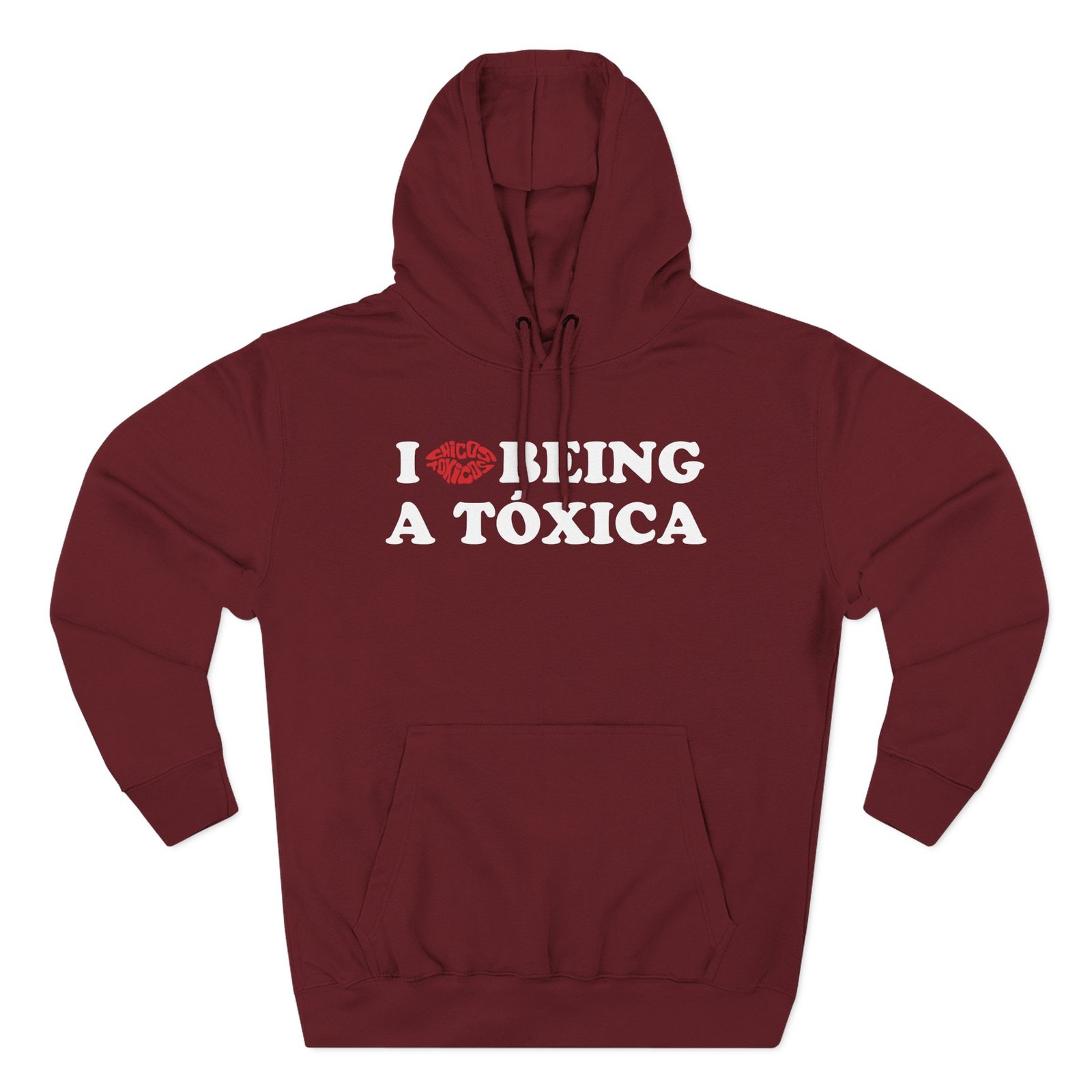 Beat the cold with this Chicos Toxicos I Love Being a Tóxica premium pullover hoodie that’s just the right layer of warm and cozy. Made with three-panel fleece lining, this pullover is double stitched for durability and roomy. Pick one in your favorite color to match your style.