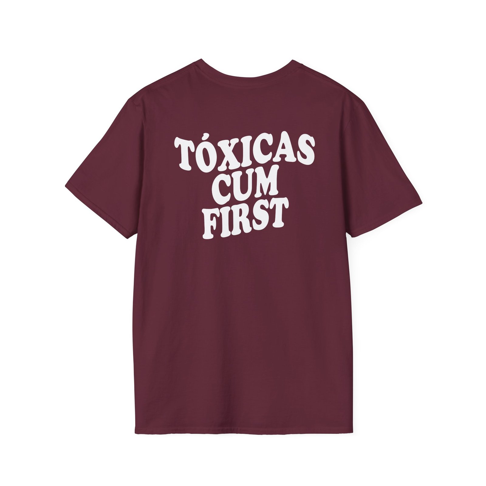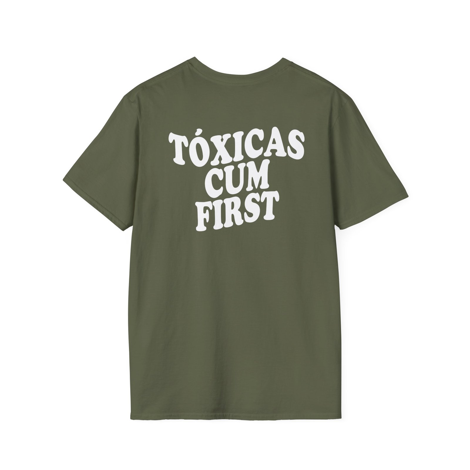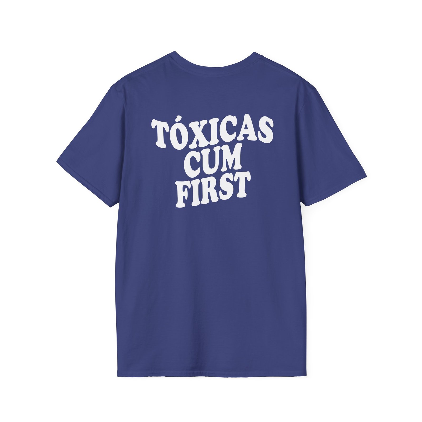 The Chicos Toxicos Tóxicas Cum First unisex soft-style t-shirt puts a new spin on casual comfort. Made from very soft materials, this tee is 100% cotton for solid colors. Heather colors and sports grey include polyester. The shoulders have twill tape for improved durability. There are no side seams. The collar is made with ribbed knitting to prevent curling damage.
