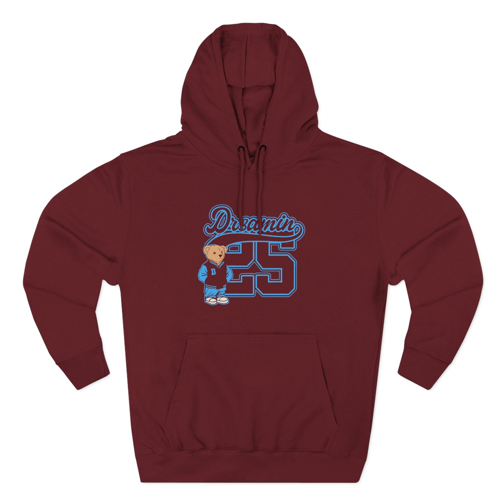 Beat the cold with this Clix Dr3amin Varsity Bear premium pullover hoodie that’s just the right layer of warm and cozy. Made with three-panel fleece lining, this pullover is double stitched for durability and roomy. Pick one in your favorite color to match your style.