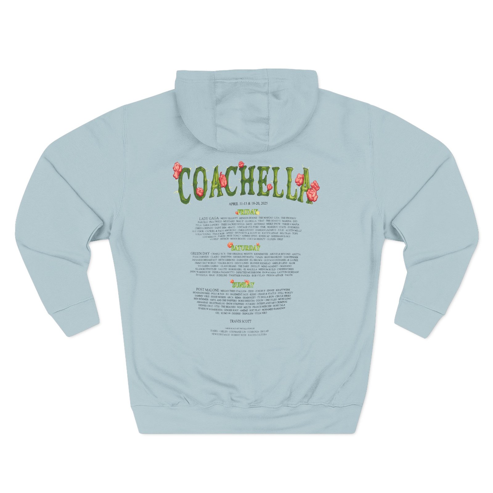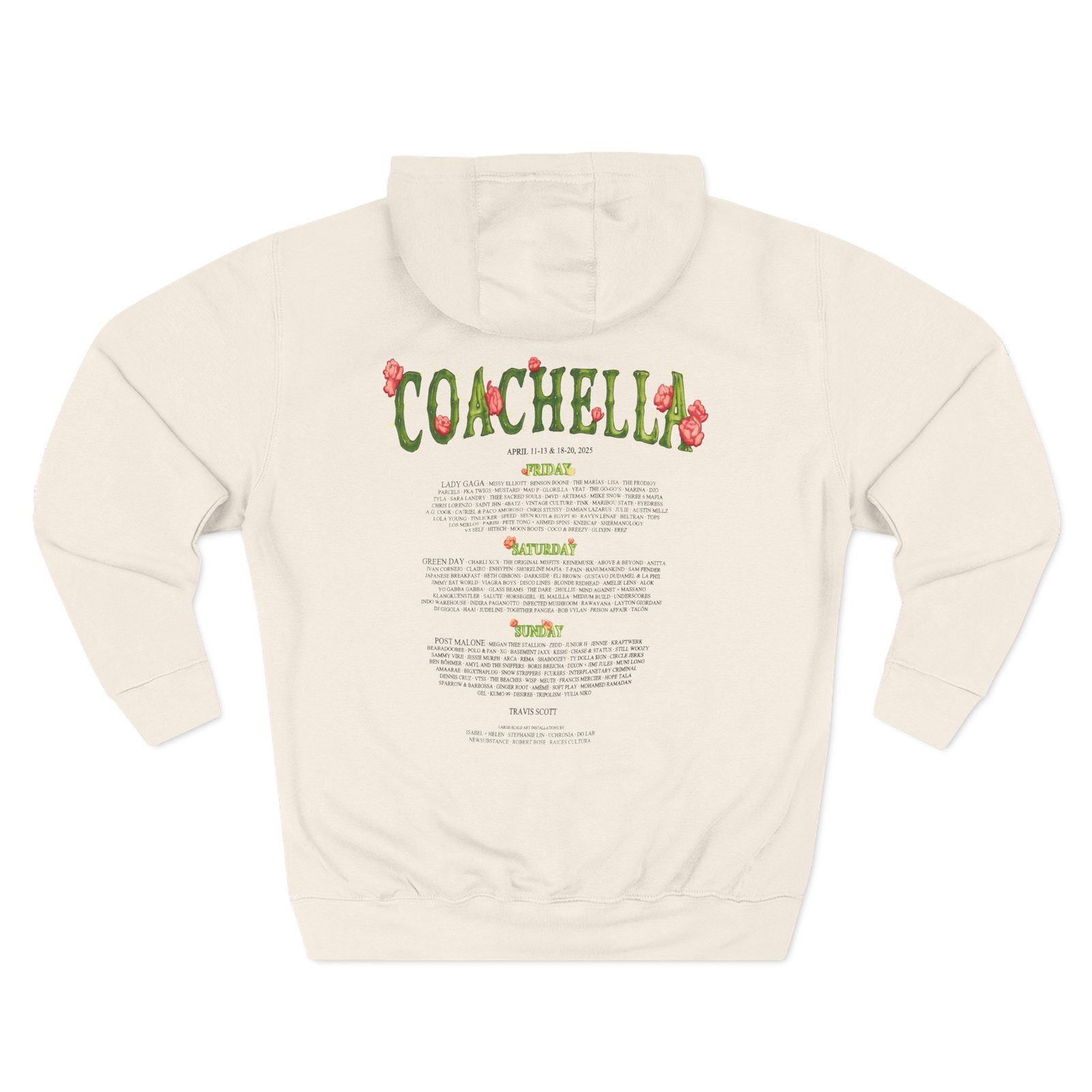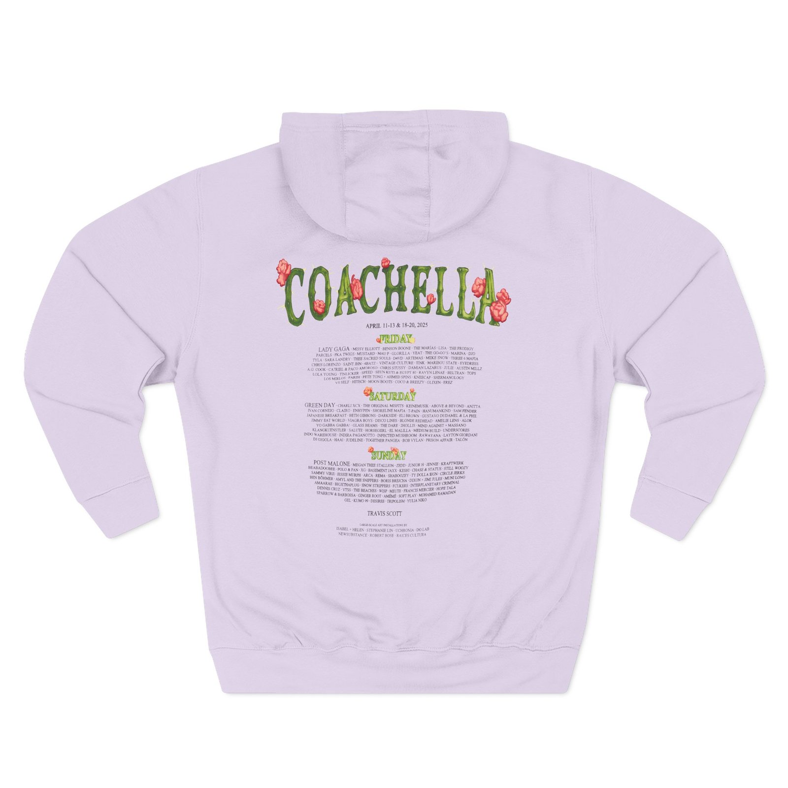 Beat the cold with this Coachella Flower premium pullover hoodie that’s just the right layer of warm and cozy. Made with three-panel fleece lining, this pullover is double stitched for durability and roomy. Pick one in your favorite color to match your style.