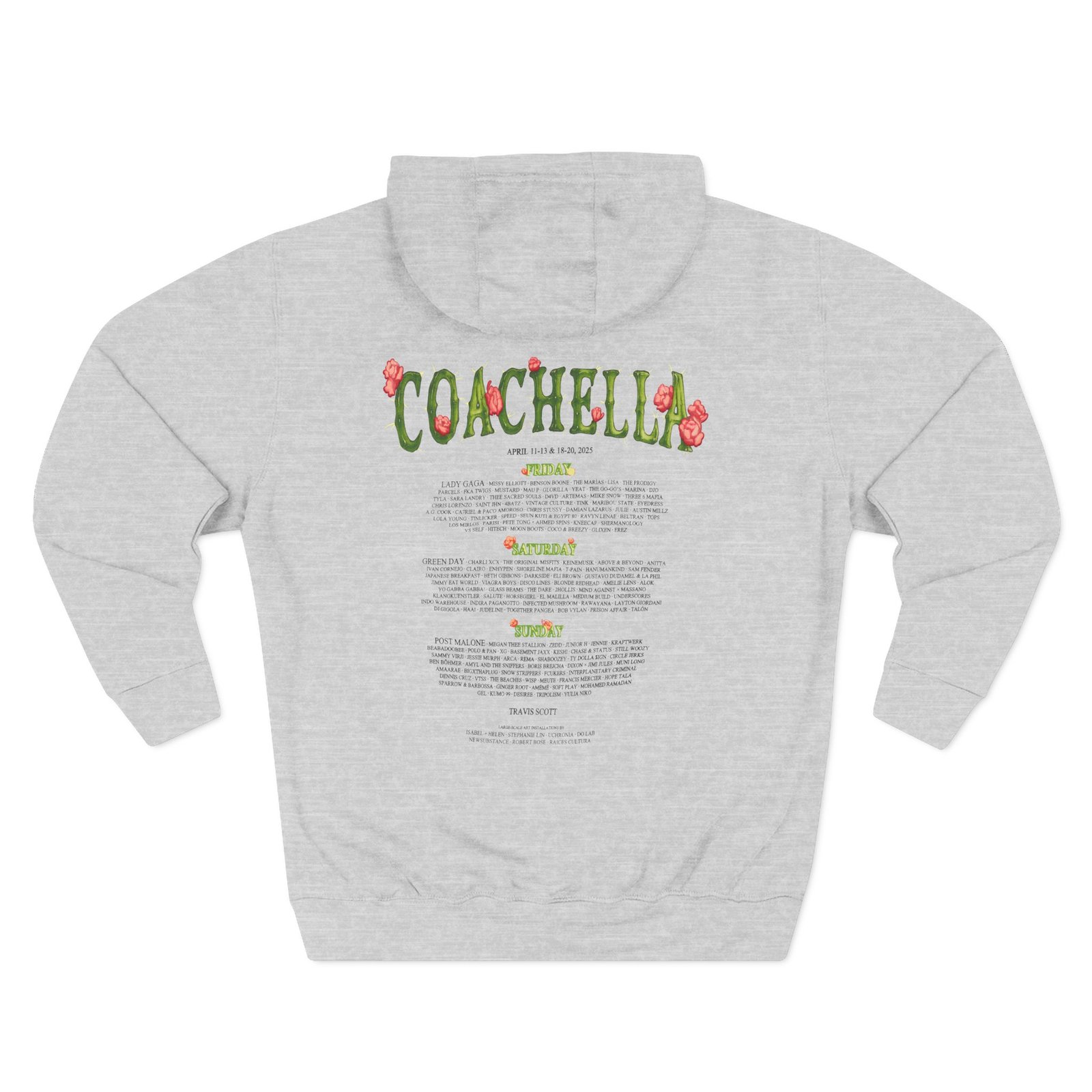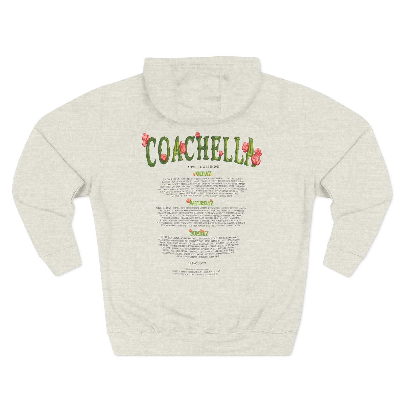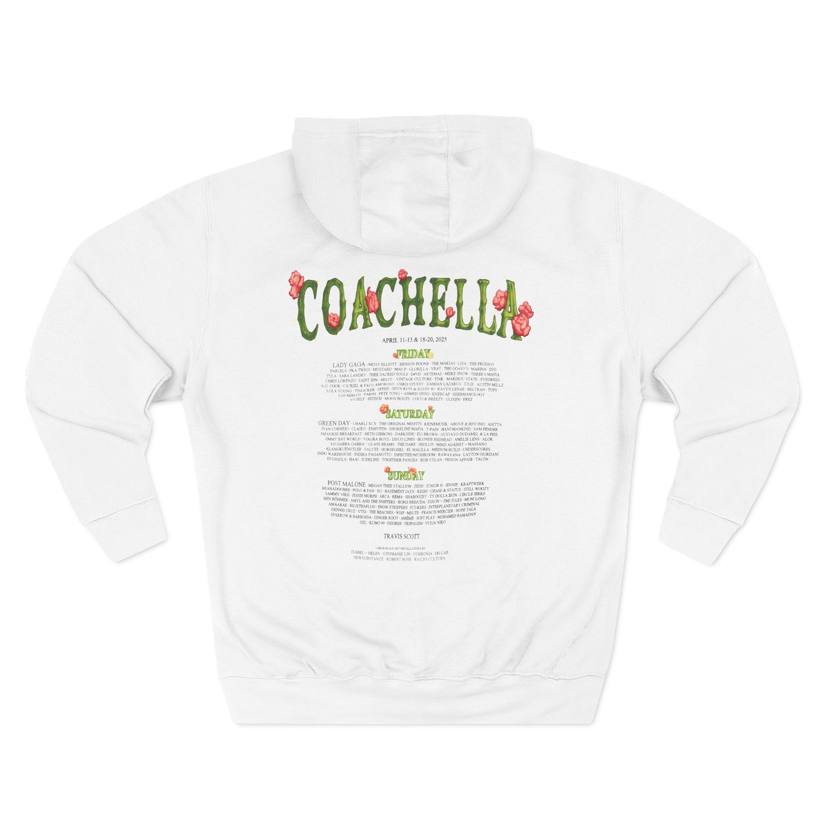 Beat the cold with this Coachella Flower premium pullover hoodie that’s just the right layer of warm and cozy. Made with three-panel fleece lining, this pullover is double stitched for durability and roomy. Pick one in your favorite color to match your style.