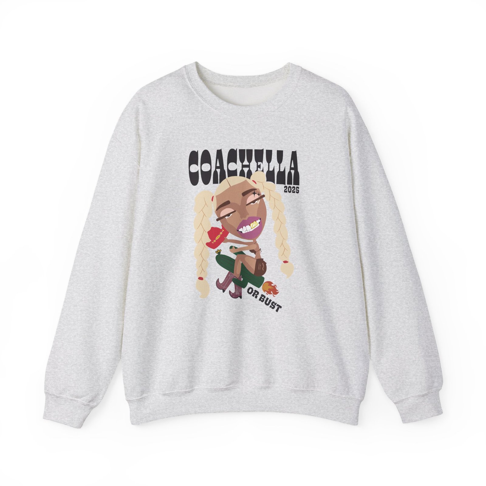 Ideal for any situation, a Coachella Uma Leoni x Coachella unisex heavy blend crewneck sweatshirt is pure comfort. These garments are made from polyester and cotton. This combination helps designs come out looking fresh and beautiful. The collar is ribbed knit, so it retains its shape even after washing. There are no itchy side seams on these sweaters.