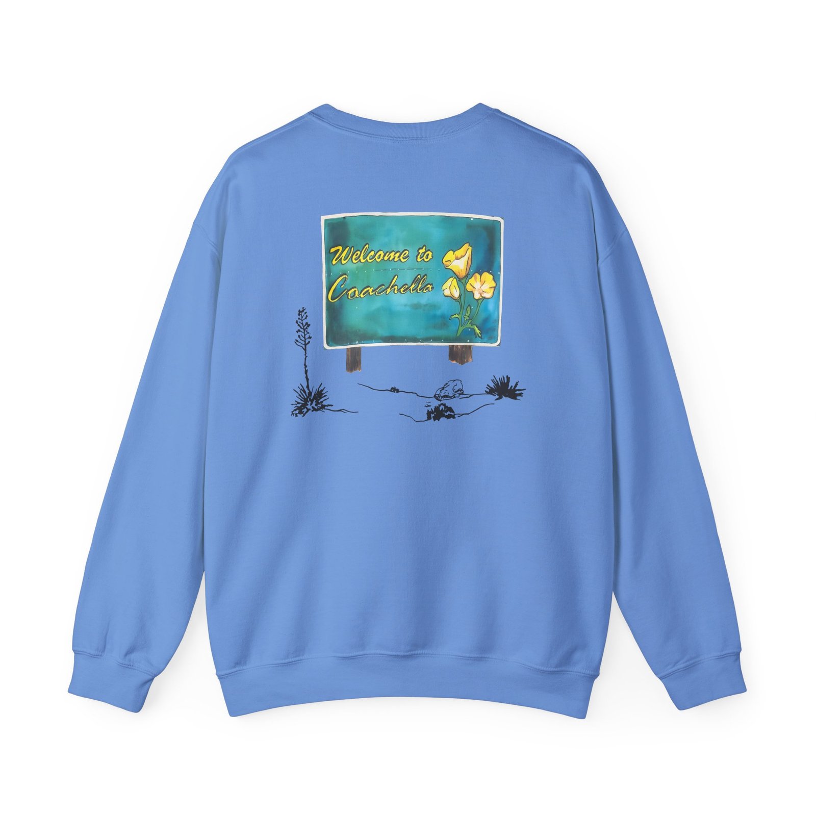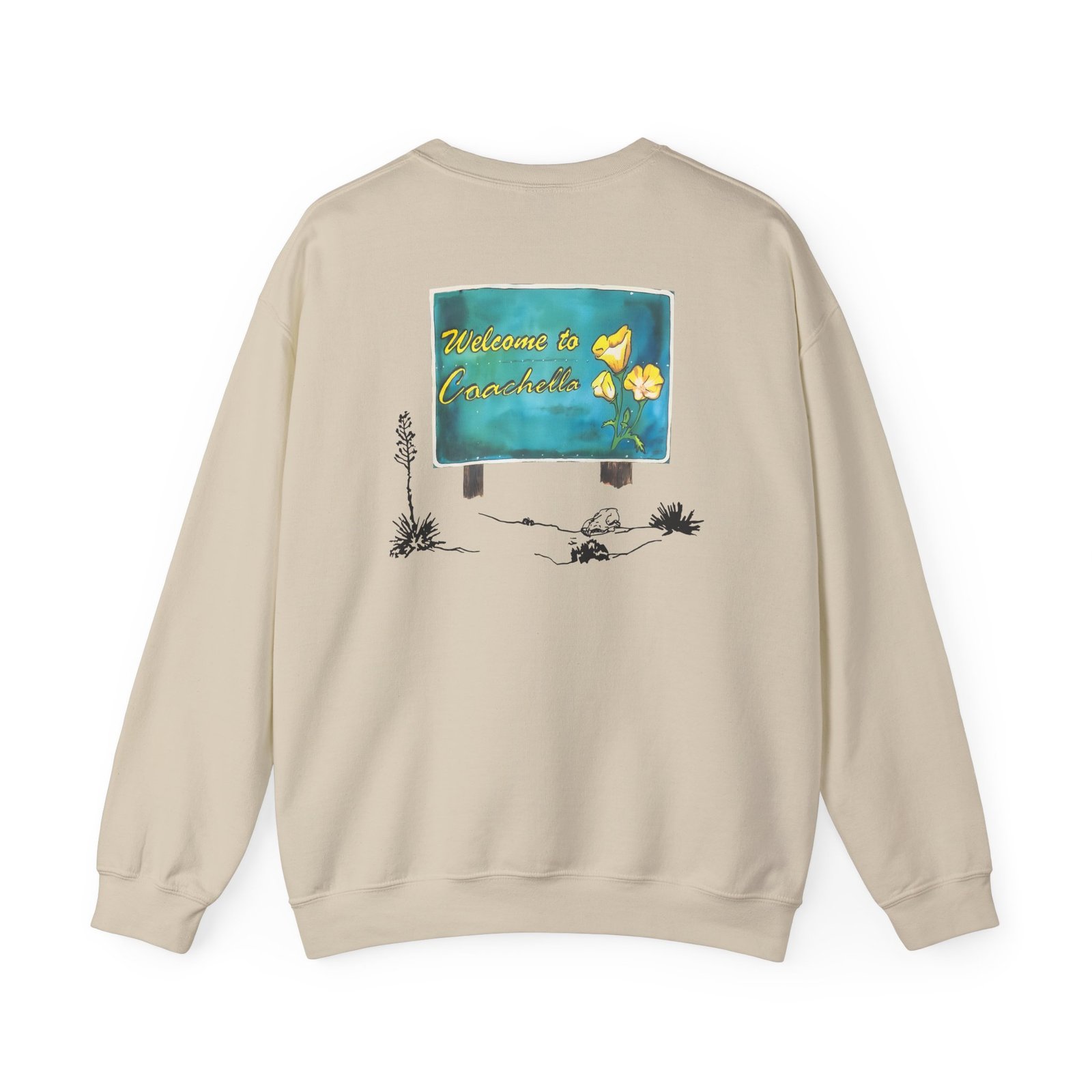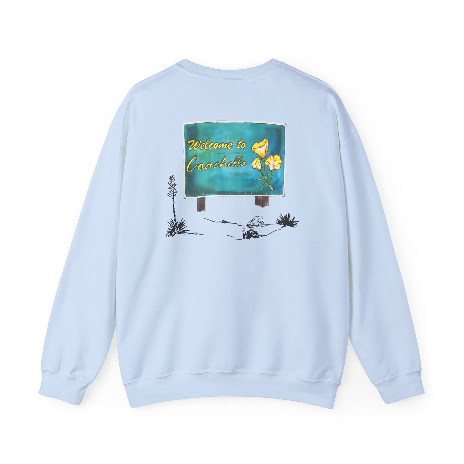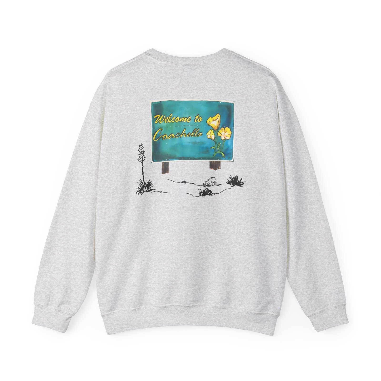 Ideal for any situation, a Coachella Welcome to Coachella unisex heavy blend crewneck sweatshirt is pure comfort. These garments are made from polyester and cotton. This combination helps designs come out looking fresh and beautiful. The collar is ribbed knit, so it retains its shape even after washing. There are no itchy side seams on these sweaters.