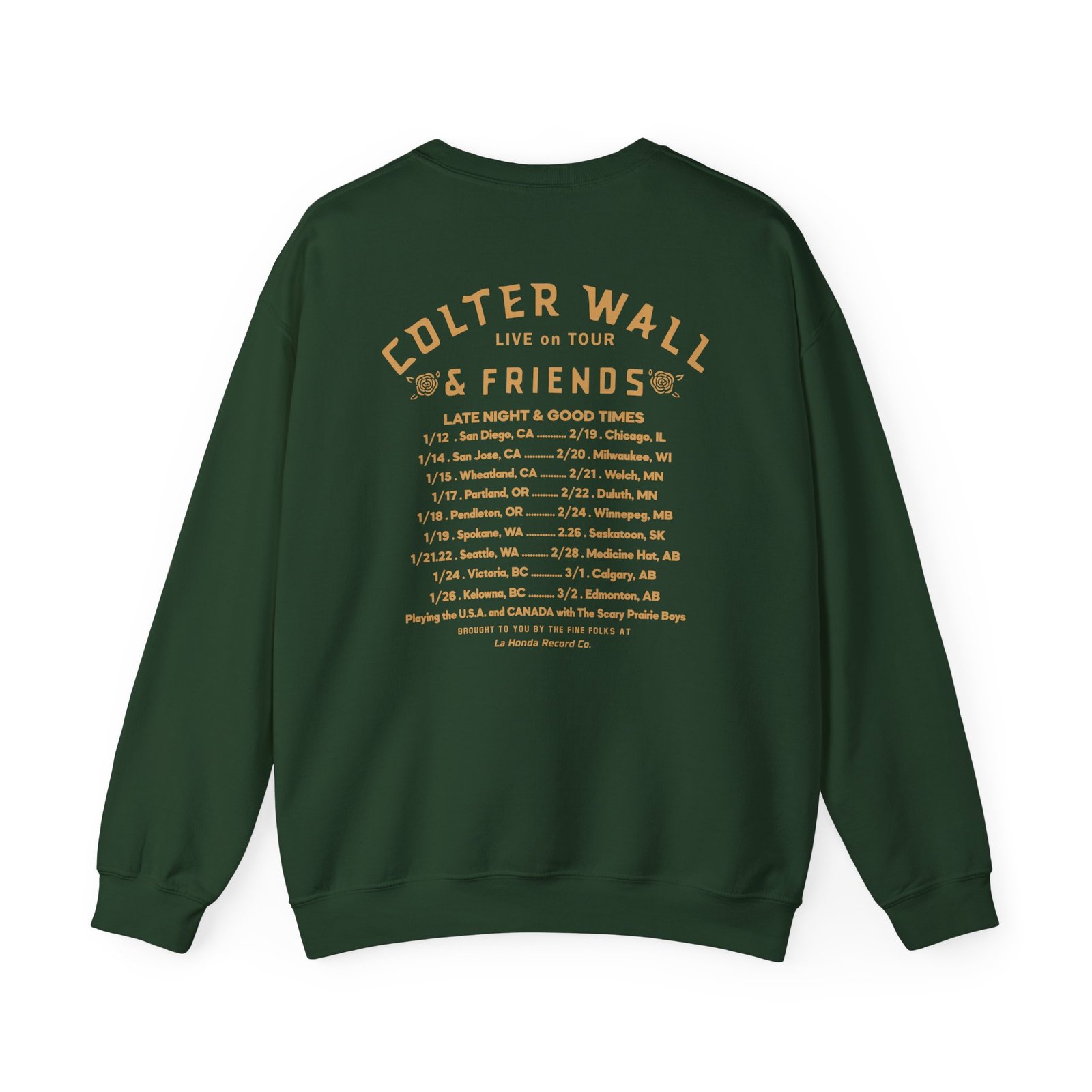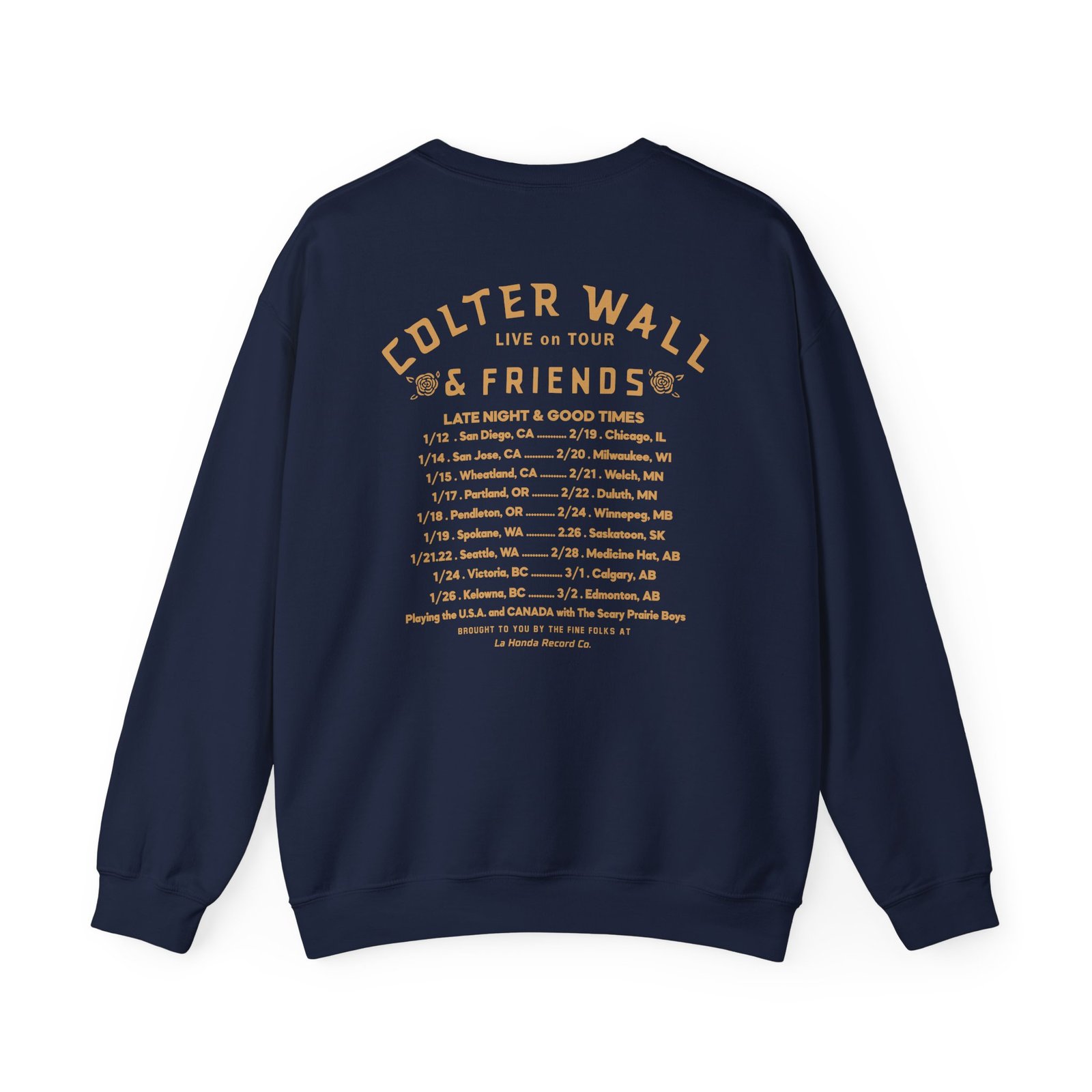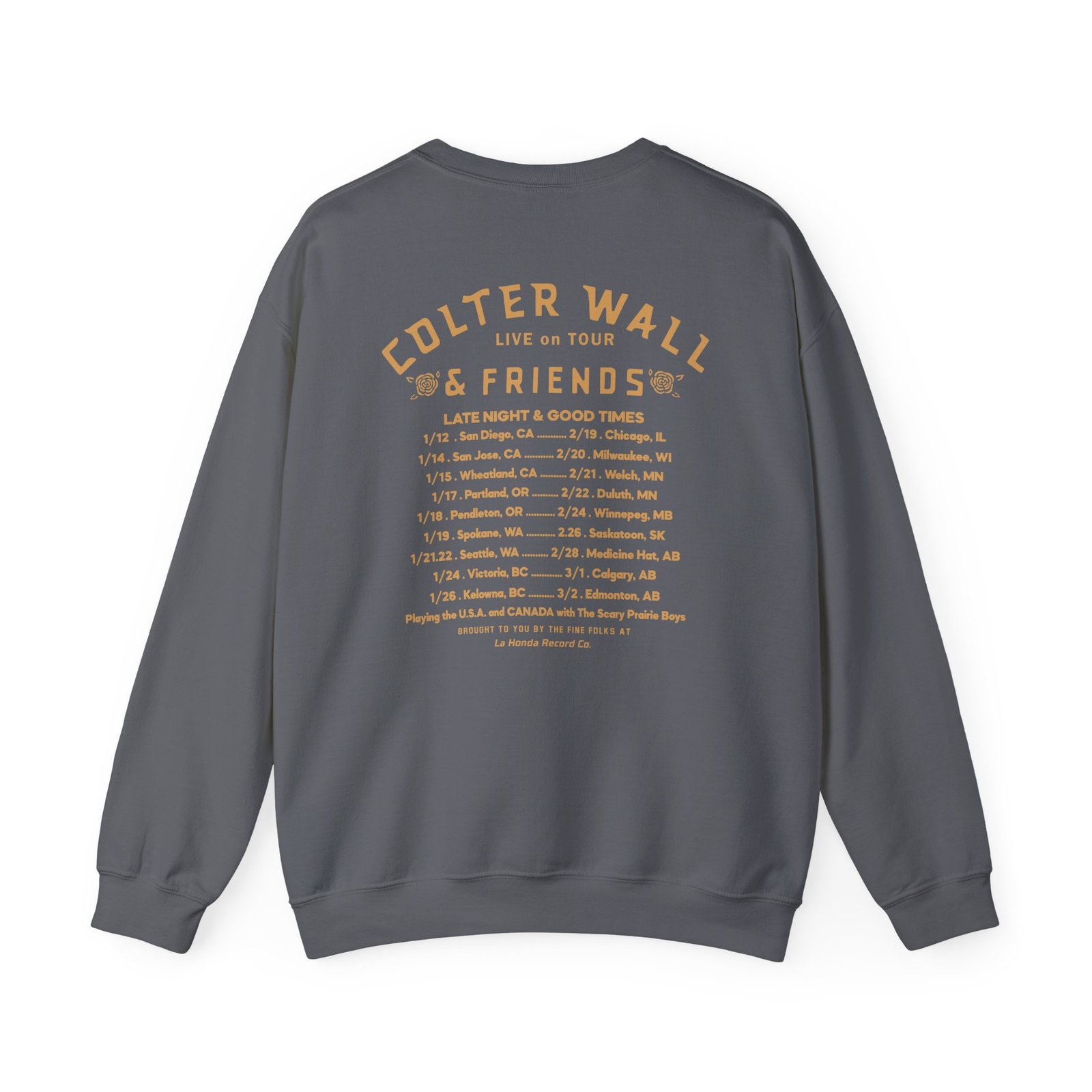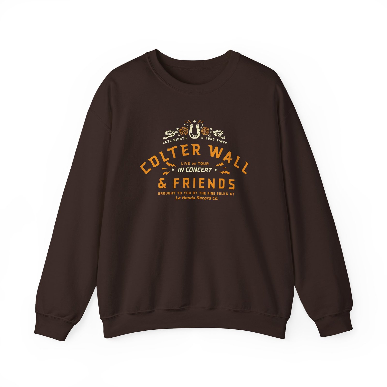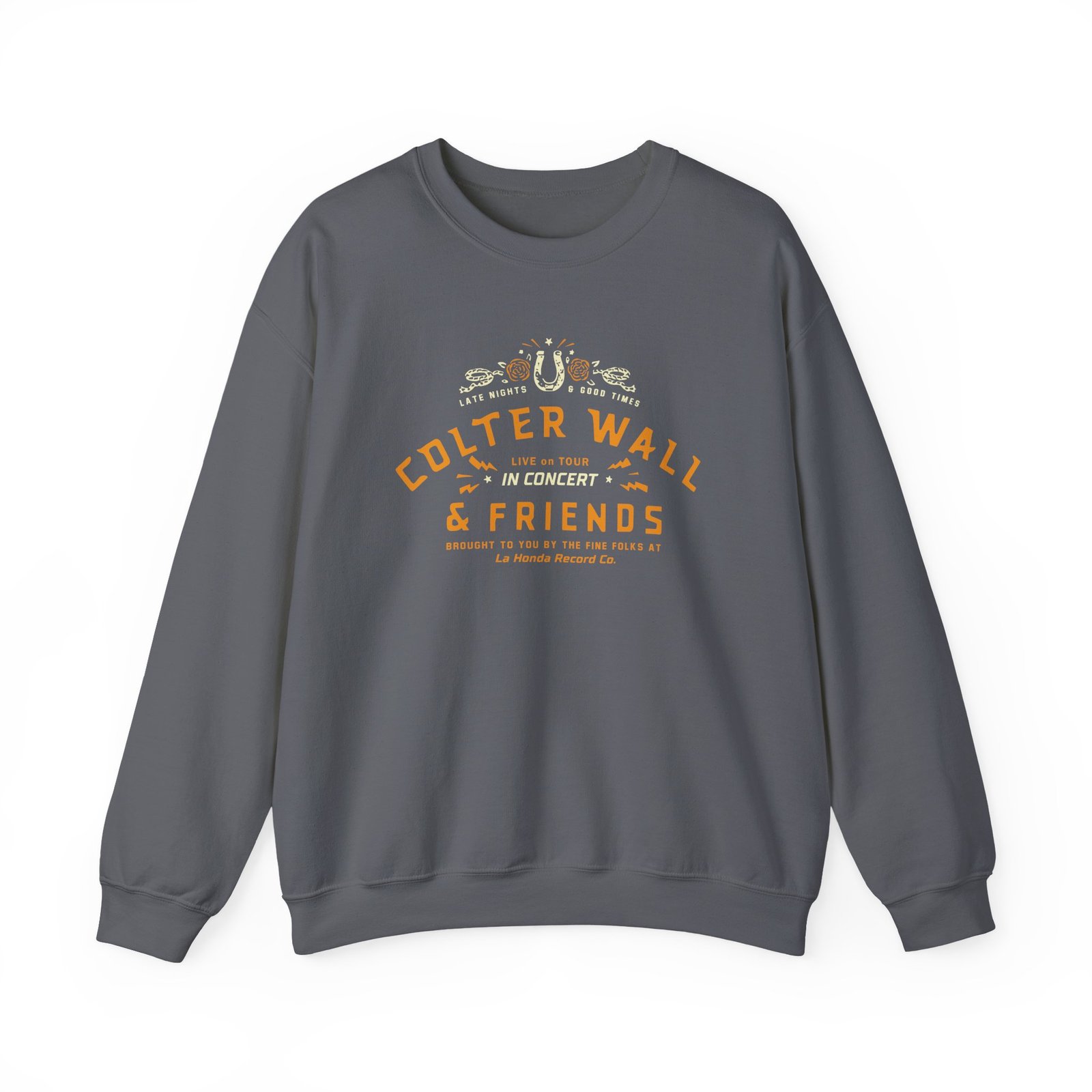 Ideal for any situation, a Colter Wall & Friends In Concert unisex heavy blend crewneck sweatshirt is pure comfort. These garments are made from polyester and cotton. This combination helps designs come out looking fresh and beautiful. The collar is ribbed knit, so it retains its shape even after washing. There are no itchy side seams on these sweaters.