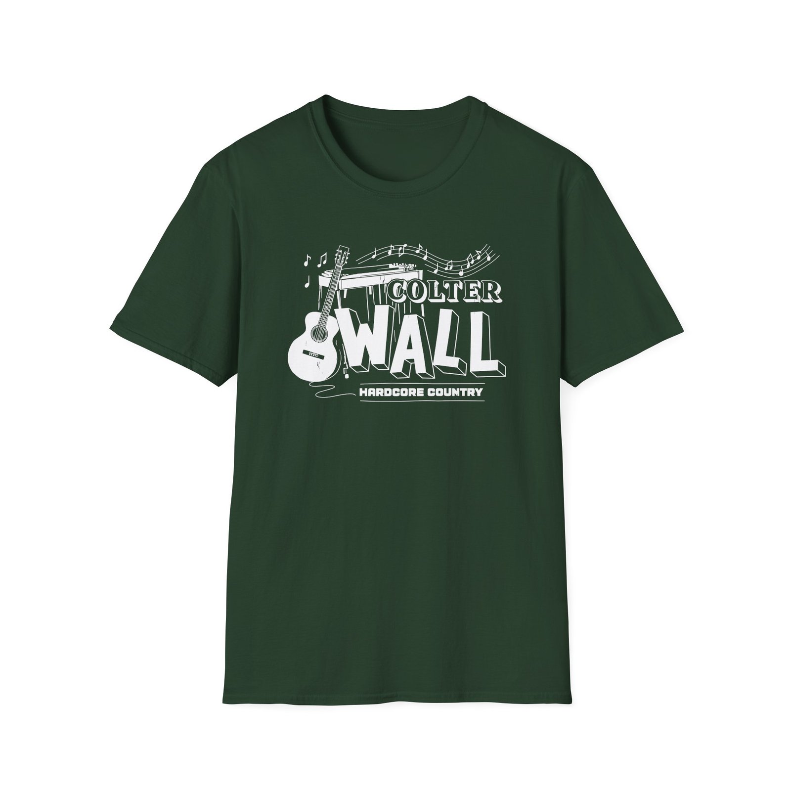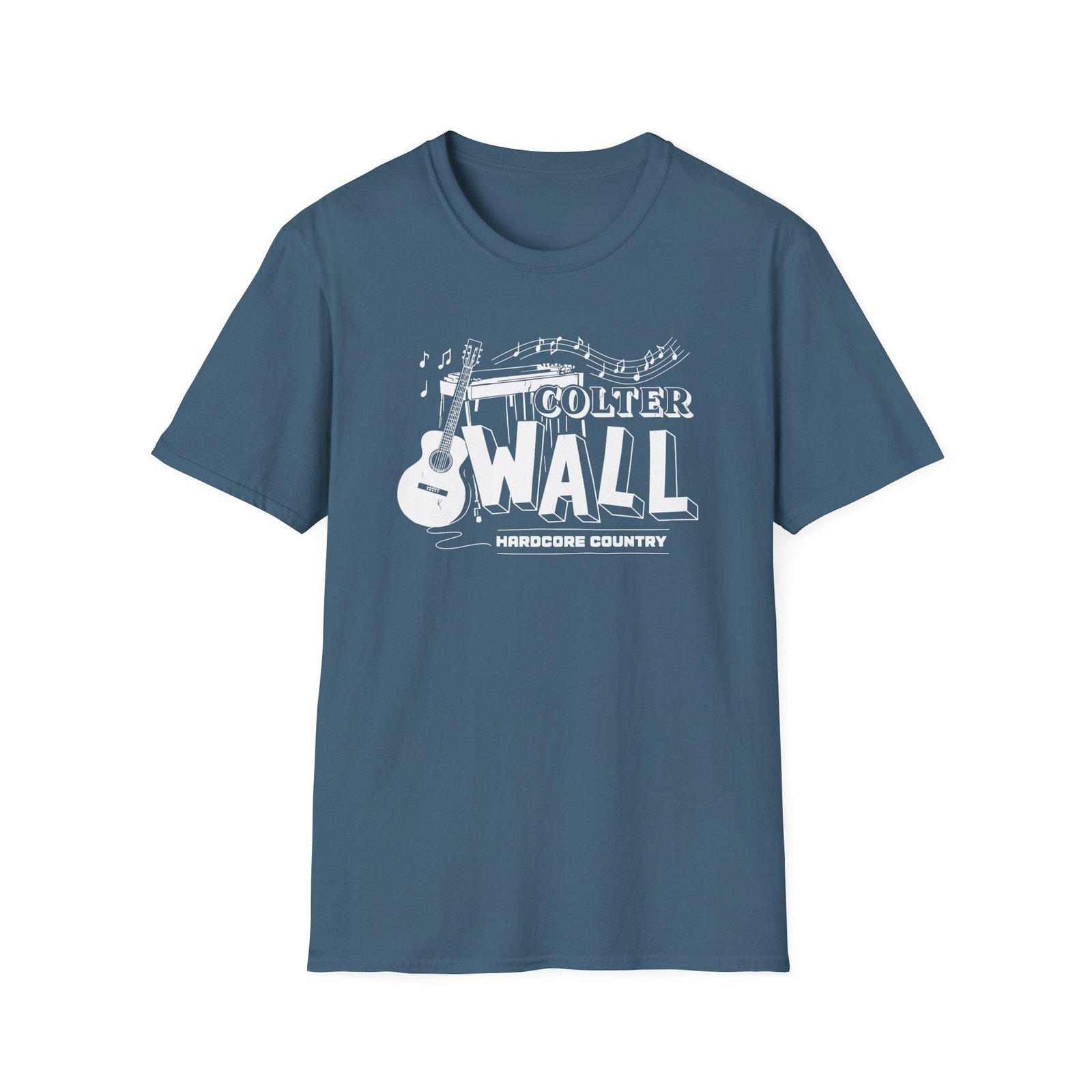 The Colter Wall Hardcore Country unisex soft-style t-shirt puts a new spin on casual comfort. Made from very soft materials, this tee is 100% cotton for solid colors. Heather colors and sports grey include polyester. The shoulders have twill tape for improved durability. There are no side seams. The collar is made with ribbed knitting to prevent curling damage.