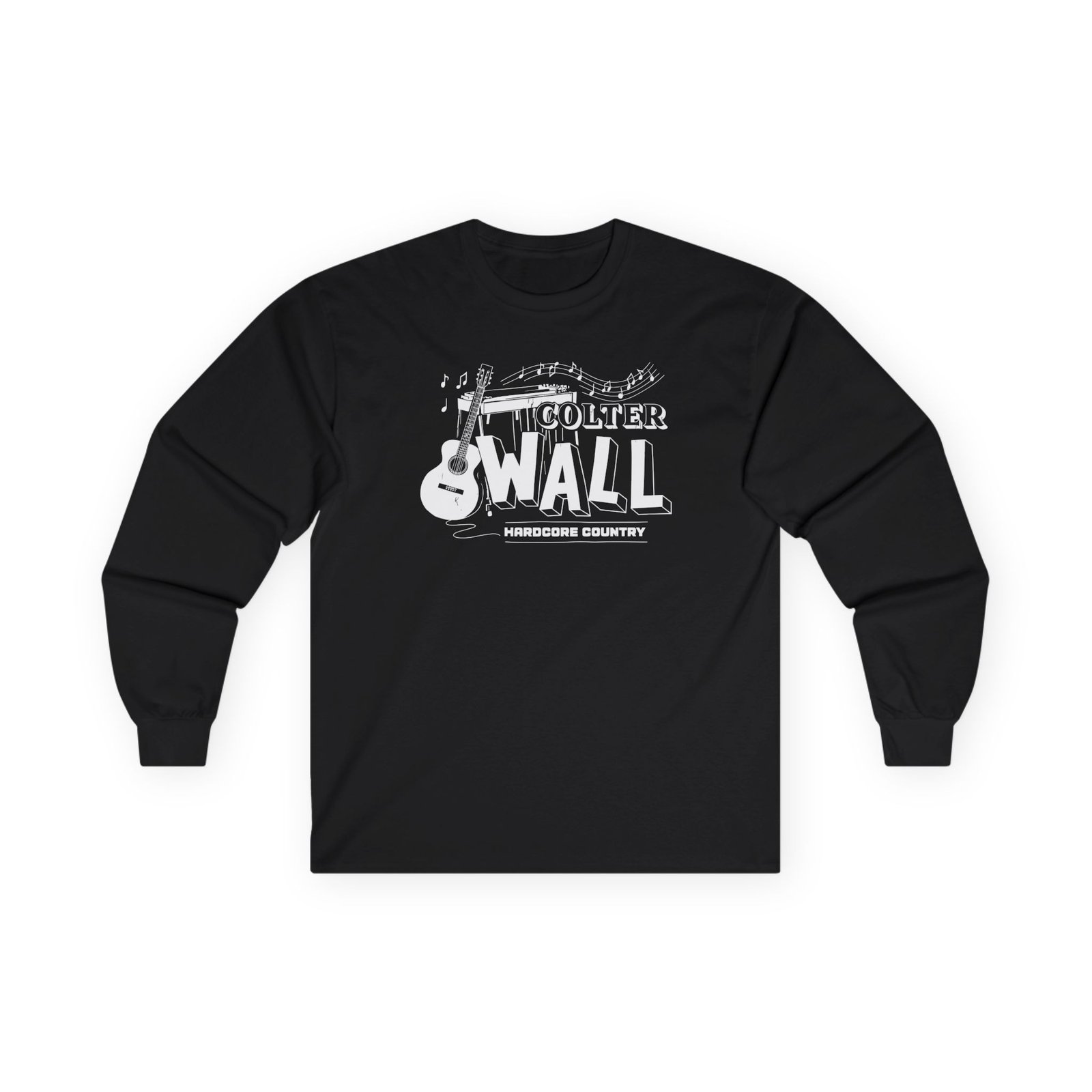 A bit more formal than a standard-issue t-shirt, the Colter Wall Hardcore Country ultra cotton long sleeve tee is a clear comfort winner. The sleeves also act as a nice frame. There are no side seams. The shoulders are taped for improved durability. This makes for a good fitting around the shoulders and neck. The cotton used for these shirts is environmentally friendly.