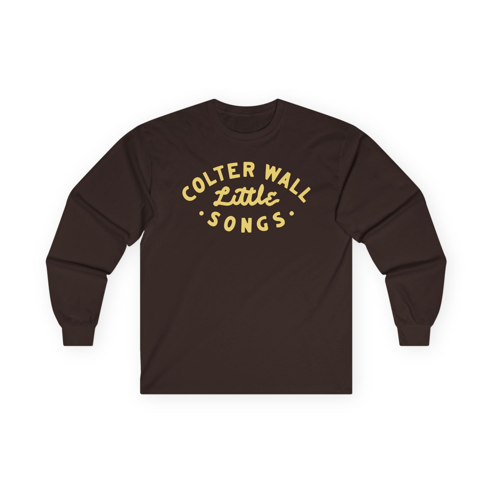 A bit more formal than a standard-issue t-shirt, the Colter Wall Little Songs Album ultra cotton long sleeve tee is a clear comfort winner. The sleeves also act as a nice frame. There are no side seams. The shoulders are taped for improved durability. This makes for a good fitting around the shoulders and neck. The cotton used for these shirts is environmentally friendly.