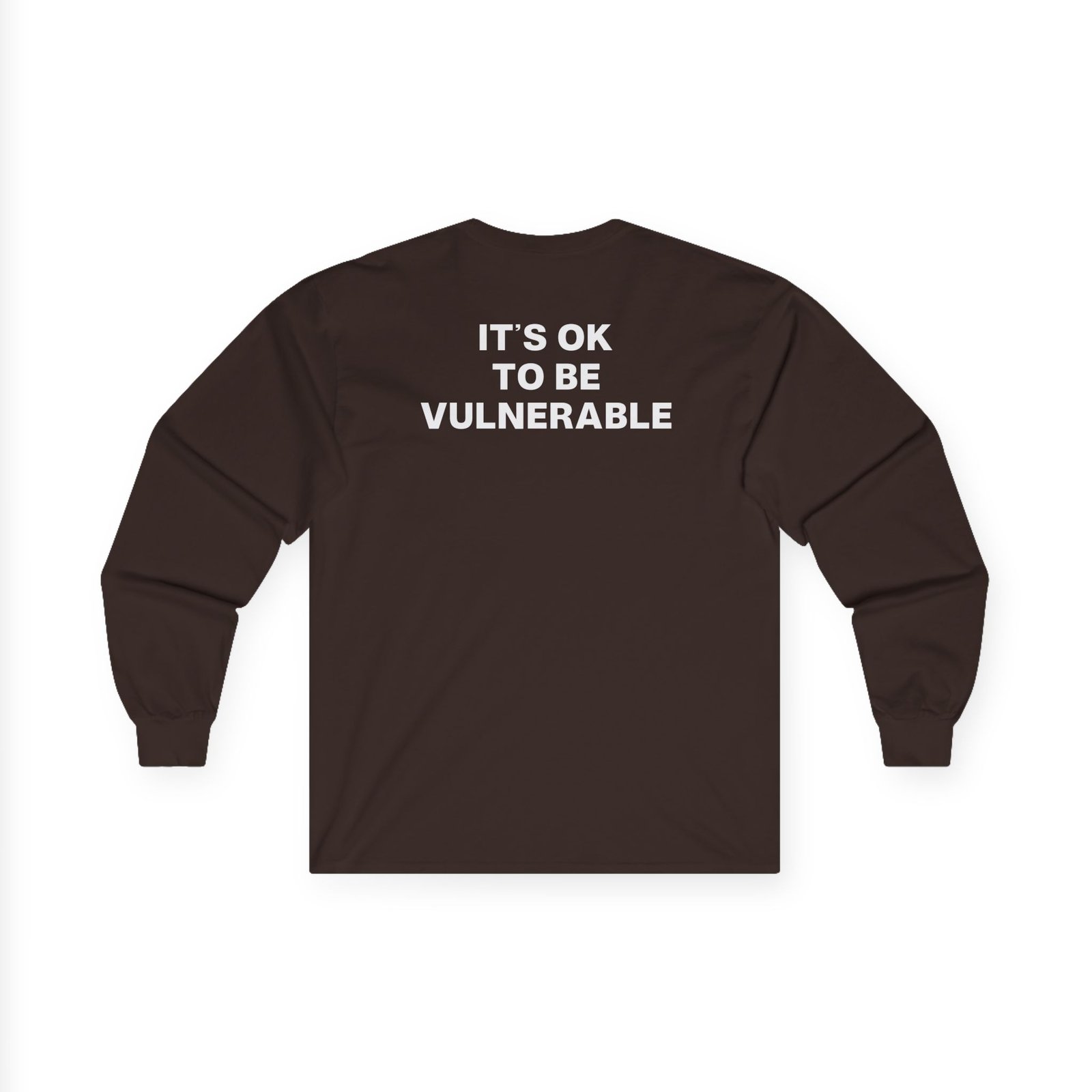 A bit more formal than a standard-issue t-shirt, the Cooper Noriega It's OK to be Vulnerable ultra cotton long sleeve tee is a clear comfort winner. The sleeves also act as a nice frame. There are no side seams. The shoulders are taped for improved durability. This makes for a good fitting around the shoulders and neck. The cotton used for these shirts is environmentally friendly.