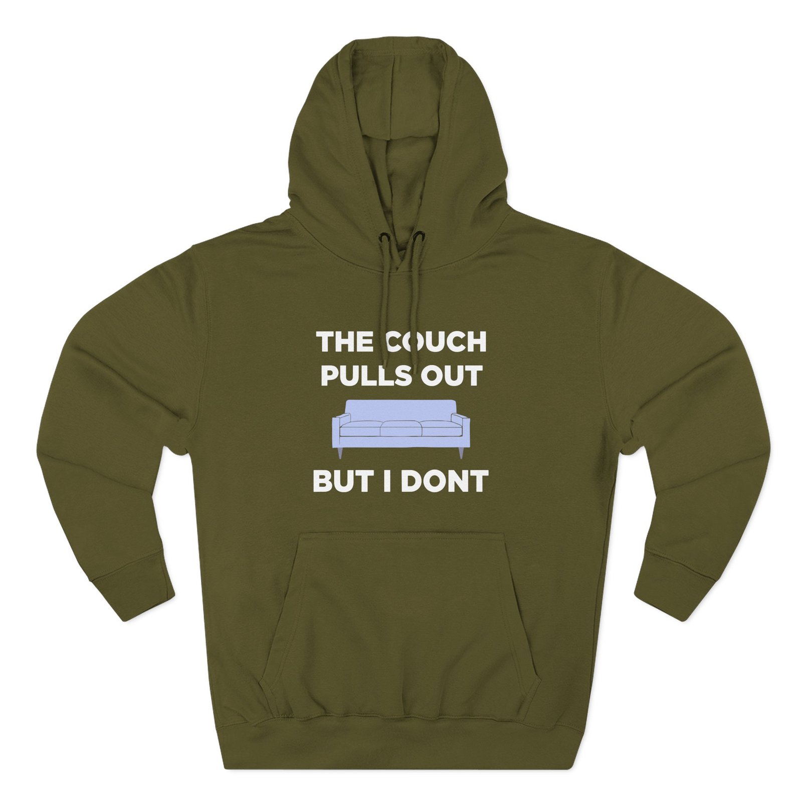 Beat the cold with this Danny Duncan Pull Out Couch premium pullover hoodie that’s just the right layer of warm and cozy. Made with three-panel fleece lining, this pullover is double stitched for durability and roomy. Pick one in your favorite color to match your style.
