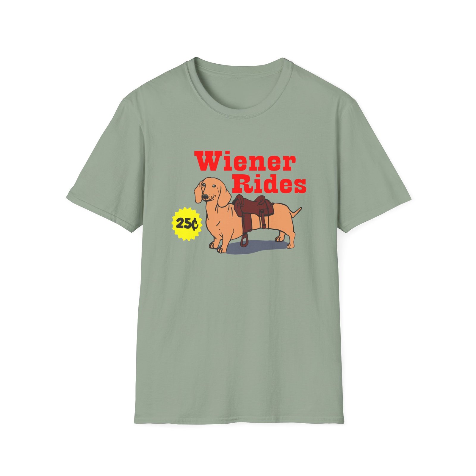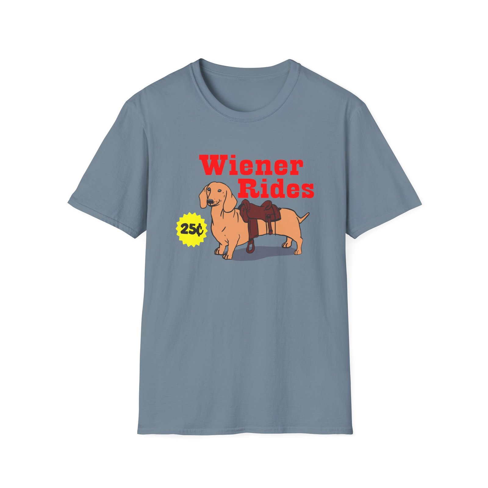The Danny Duncan Wiener Rides unisex soft-style t-shirt puts a new spin on casual comfort. Made from very soft materials, this tee is 100% cotton for solid colors. Heather colors and sports grey include polyester. The shoulders have twill tape for improved durability. There are no side seams. The collar is made with ribbed knitting to prevent curling damage.