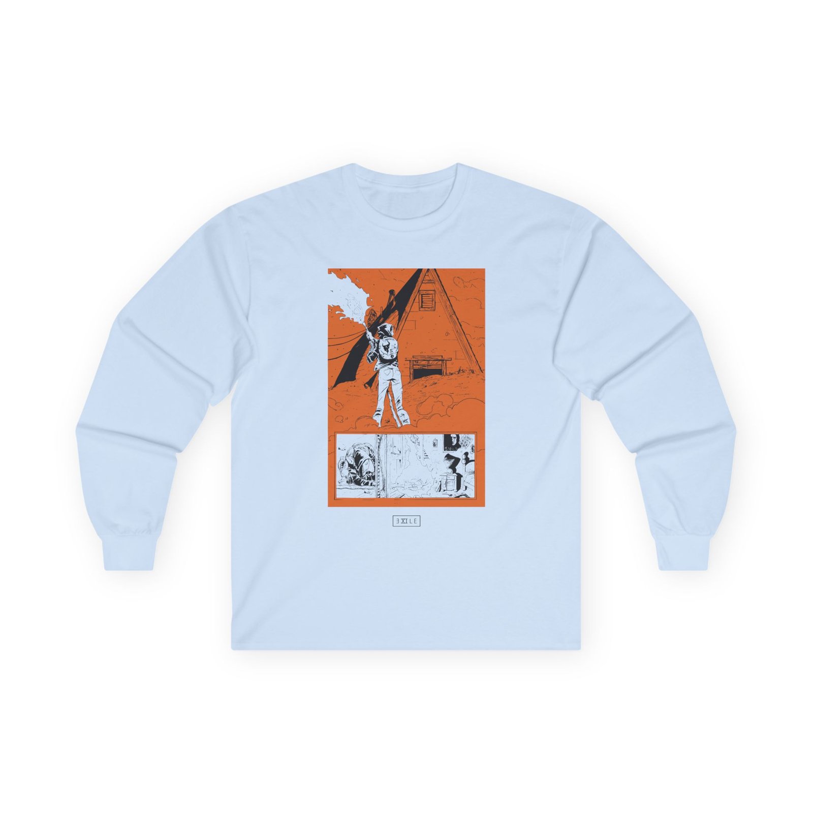A bit more formal than a standard-issue t-shirt, the Demon Hunter Black Out Comic ultra cotton long sleeve tee is a clear comfort winner. The sleeves also act as a nice frame. There are no side seams. The shoulders are taped for improved durability. This makes for a good fitting around the shoulders and neck. The cotton used for these shirts is environmentally friendly.