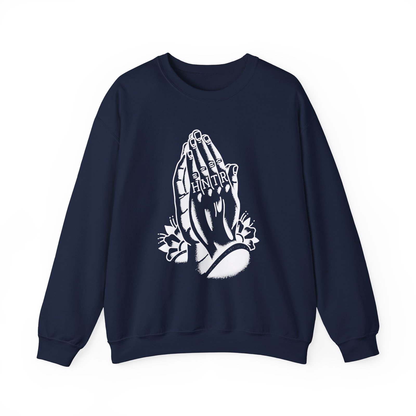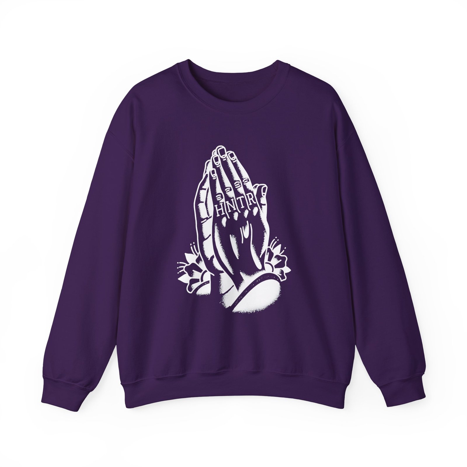 Ideal for any situation, a Demon Hunter Praying Hands unisex heavy blend crewneck sweatshirt is pure comfort. These garments are made from polyester and cotton. This combination helps designs come out looking fresh and beautiful. The collar is ribbed knit, so it retains its shape even after washing. There are no itchy side seams on these sweaters.