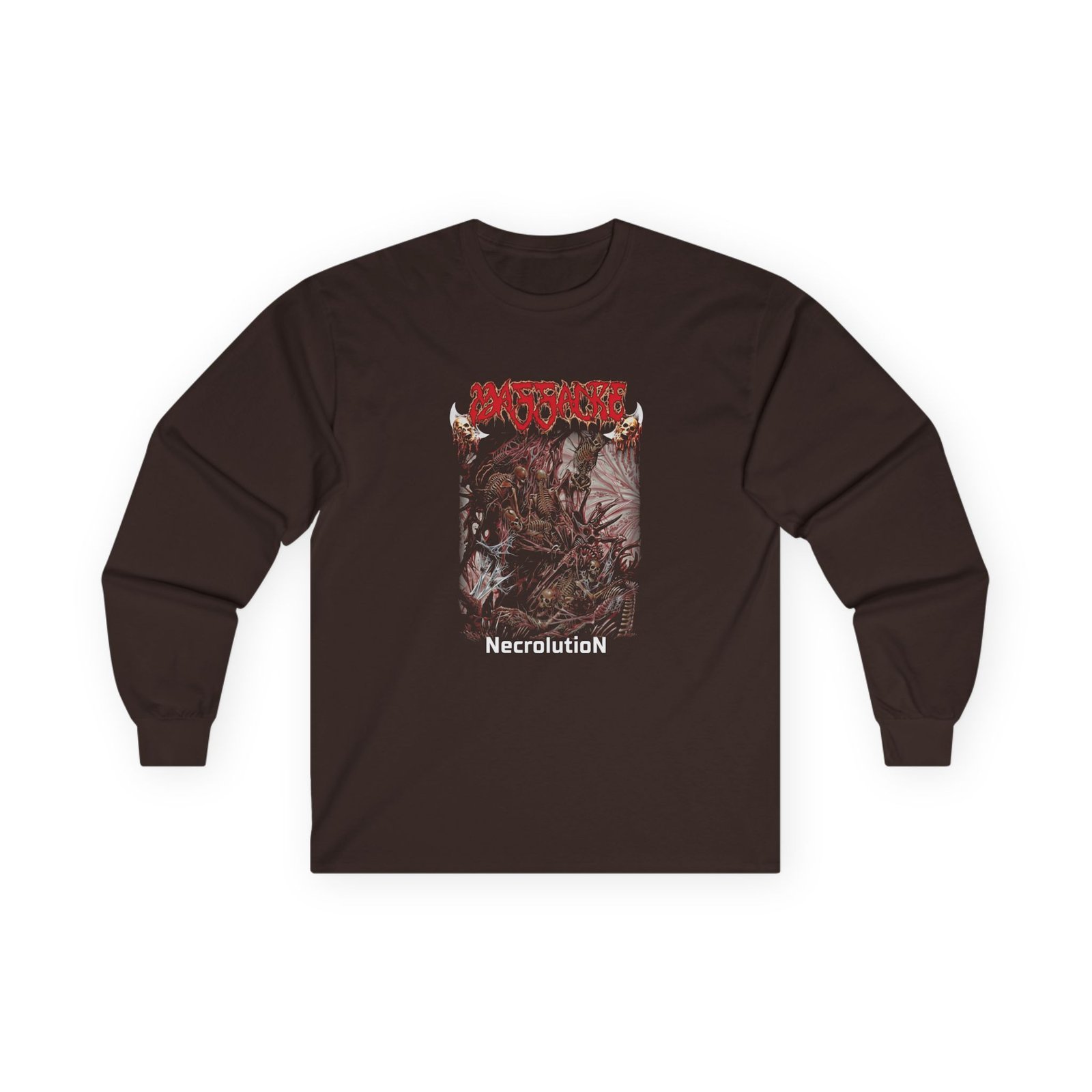 A bit more formal than a standard-issue t-shirt, the Direct Necrolution ultra cotton long sleeve tee is a clear comfort winner. The sleeves also act as a nice frame. There are no side seams. The shoulders are taped for improved durability. This makes for a good fitting around the shoulders and neck. The cotton used for these shirts is environmentally friendly.