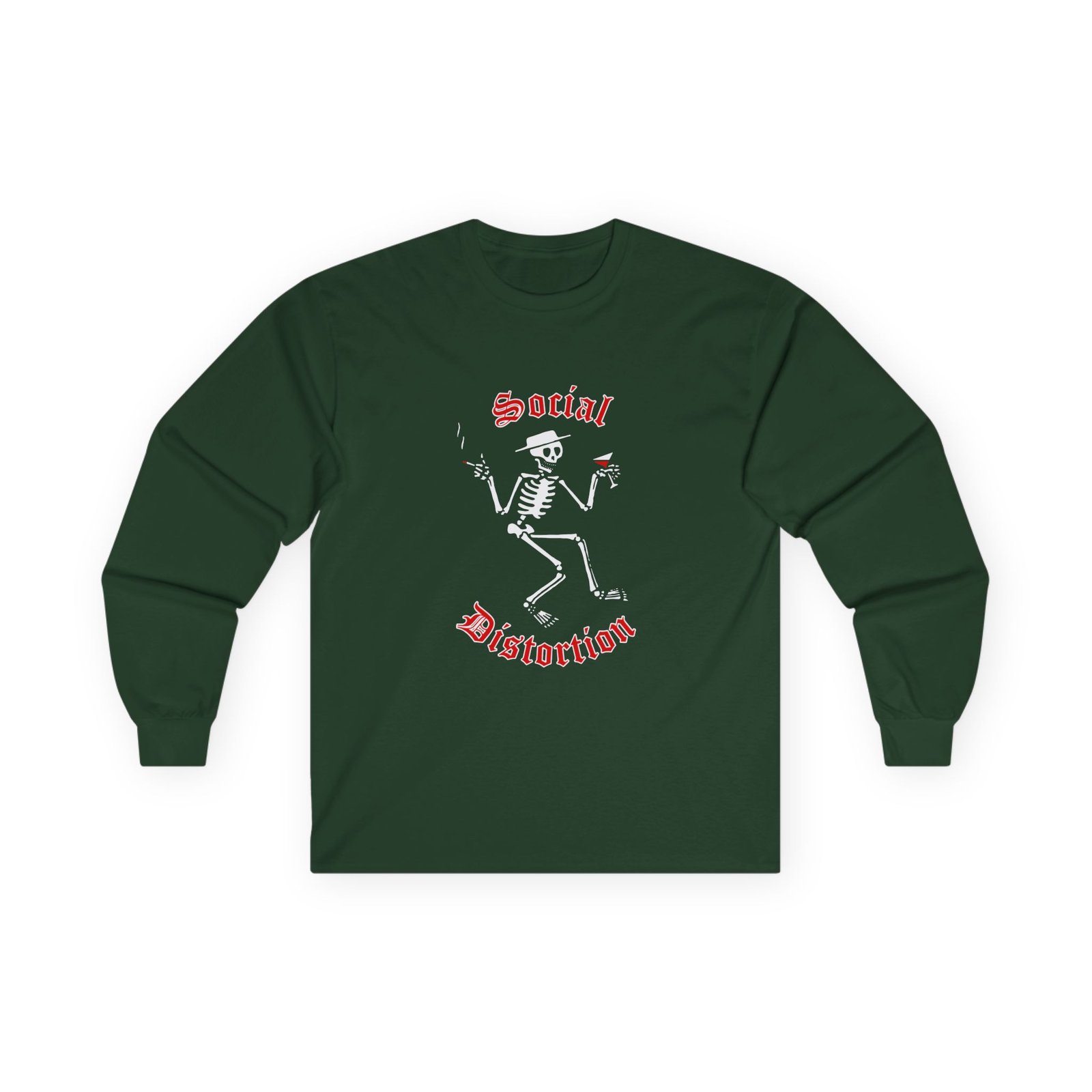 A bit more formal than a standard-issue t-shirt, the Distortion Skeleton Logo ultra cotton long sleeve tee is a clear comfort winner. The sleeves also act as a nice frame. There are no side seams. The shoulders are taped for improved durability. This makes for a good fitting around the shoulders and neck. The cotton used for these shirts is environmentally friendly.
