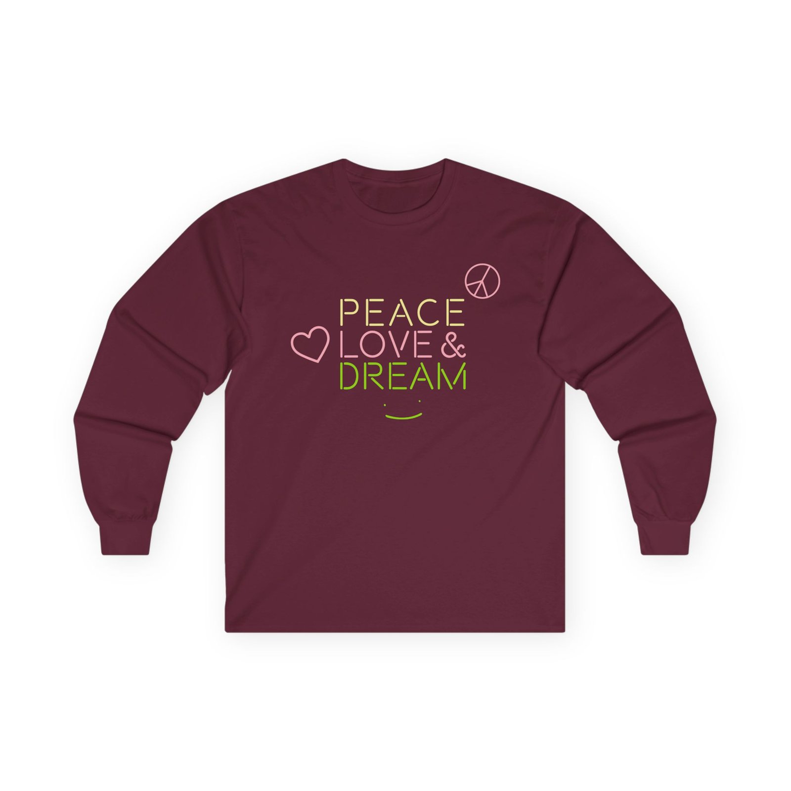 Be the first to review “Dreamwastaken Peace Love and Dream Unisex Ultra Cotton Long Sleeve Tee”