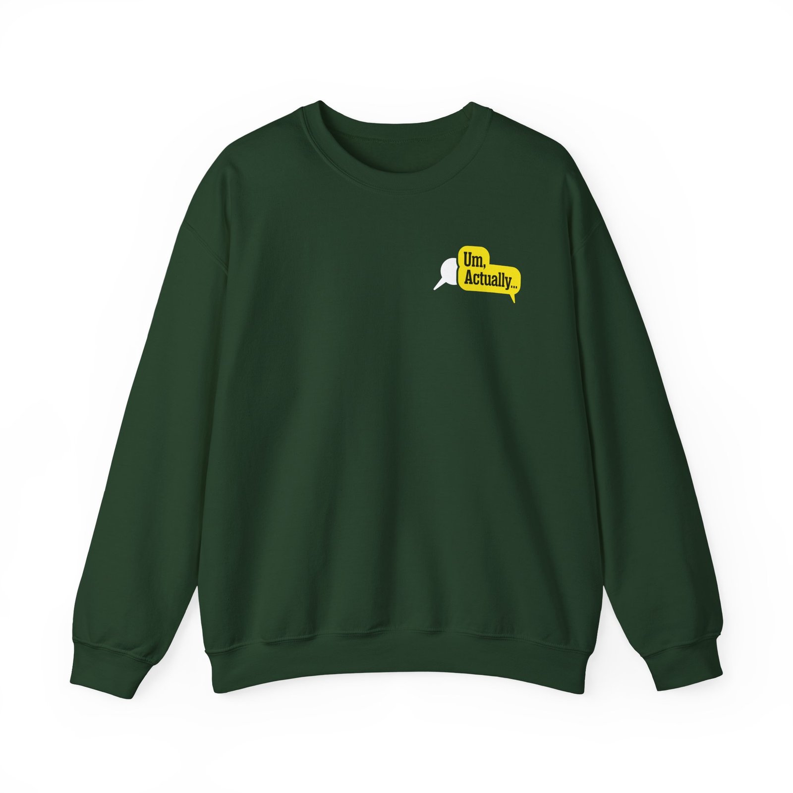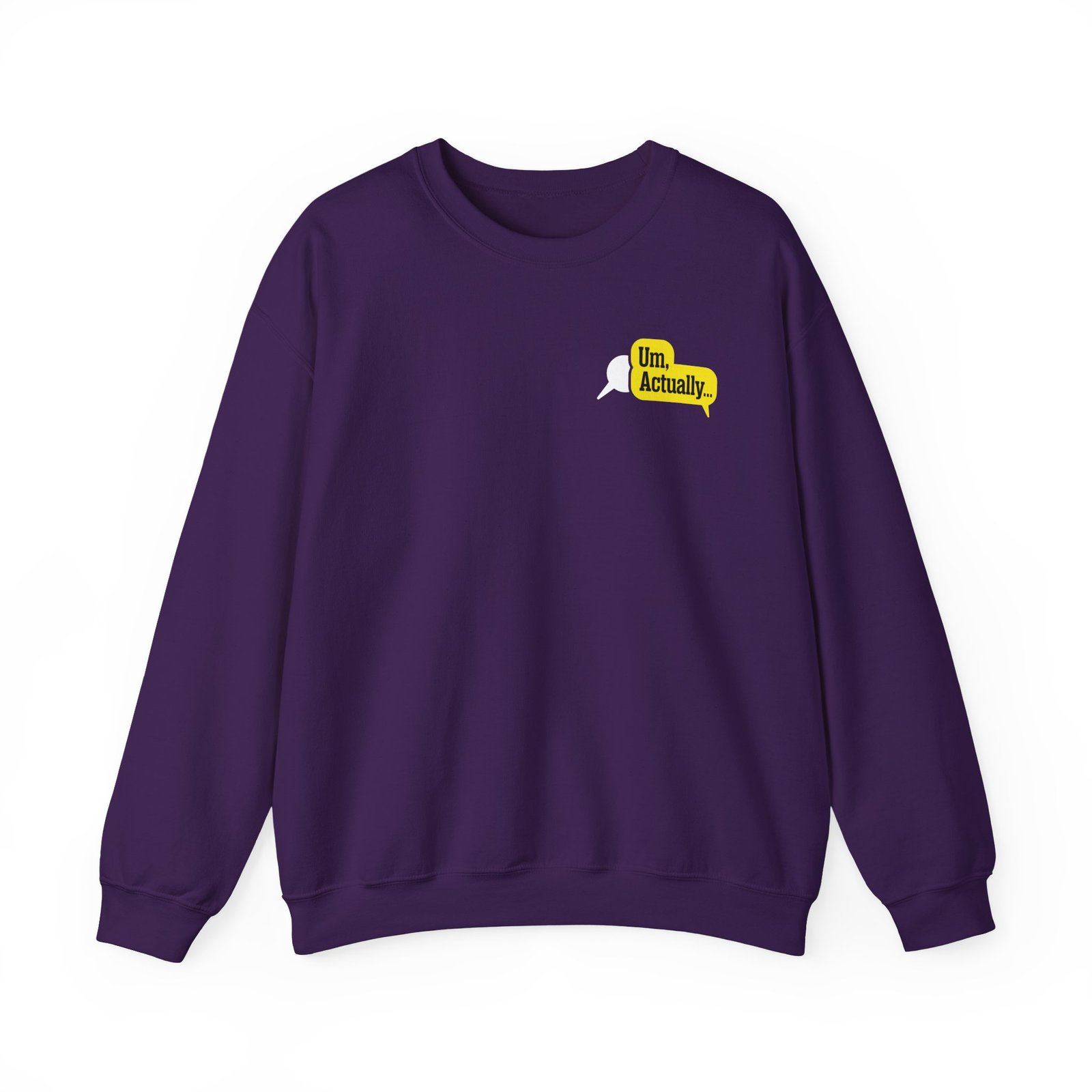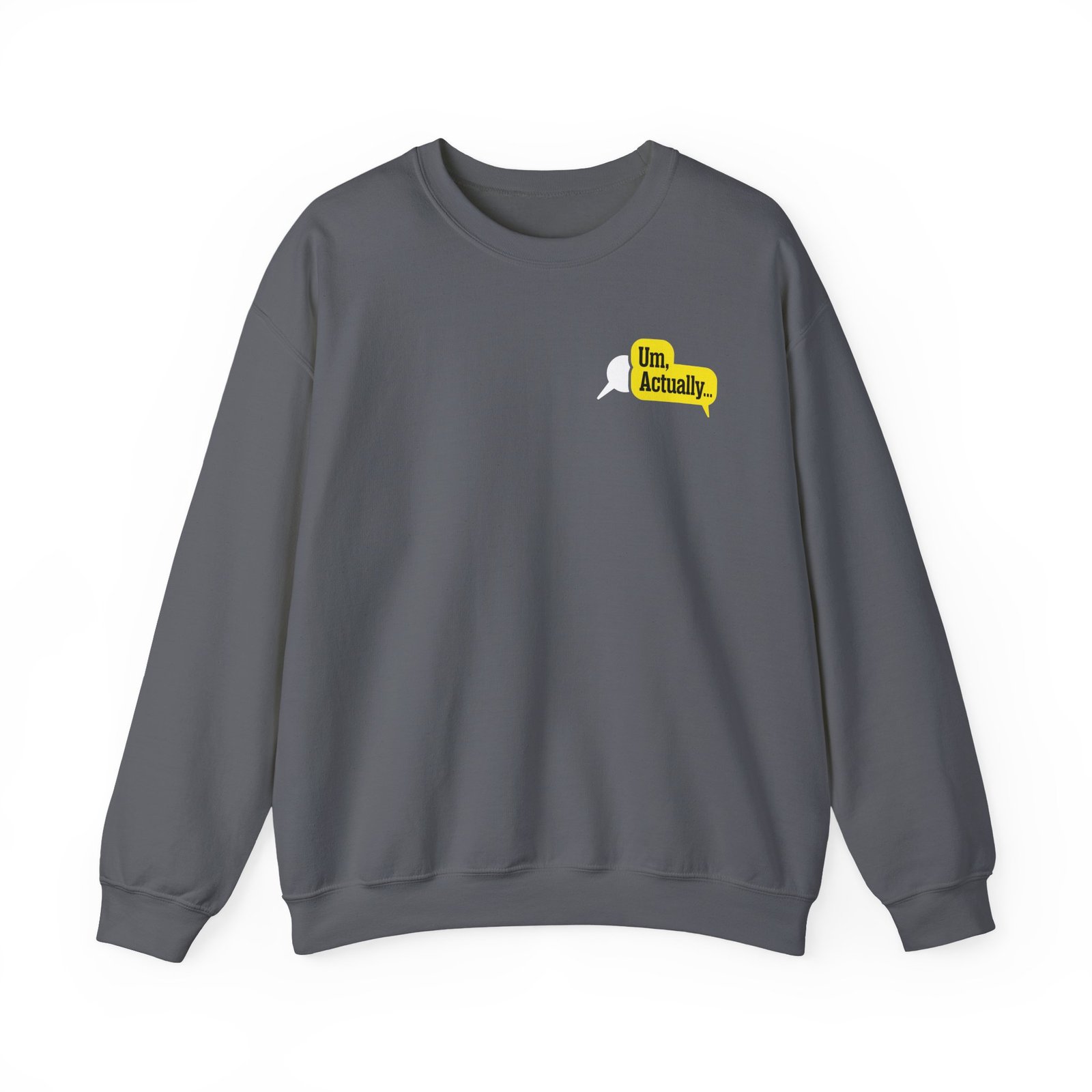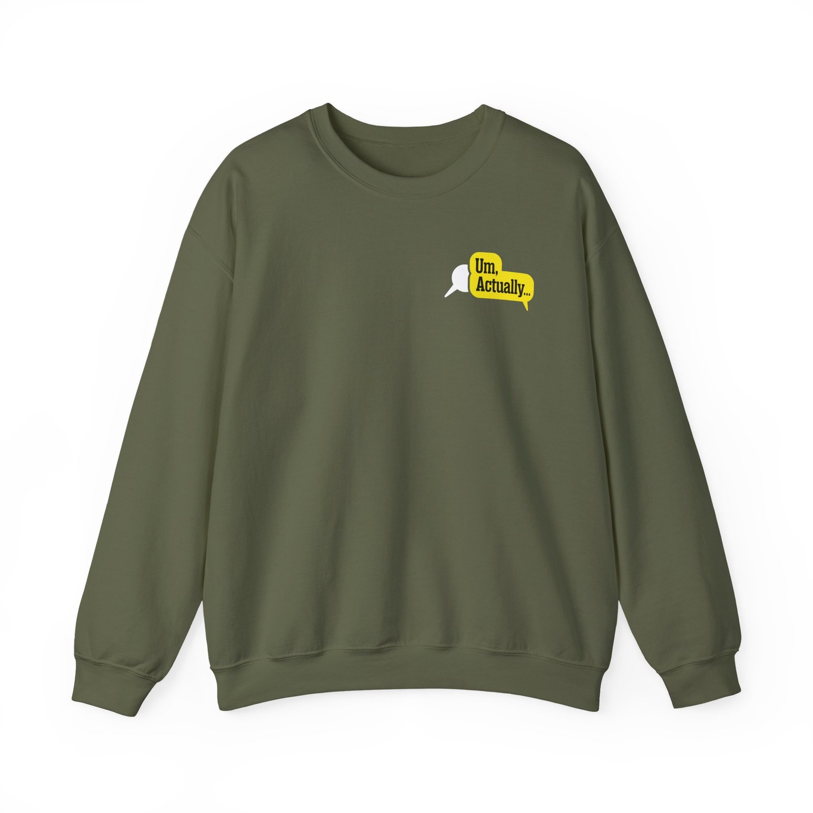 Ideal for any situation, a Dropout Um, Actually Fact Checker unisex heavy blend crewneck sweatshirt is pure comfort. These garments are made from polyester and cotton. This combination helps designs come out looking fresh and beautiful. The collar is ribbed knit, so it retains its shape even after washing. There are no itchy side seams on these sweaters.