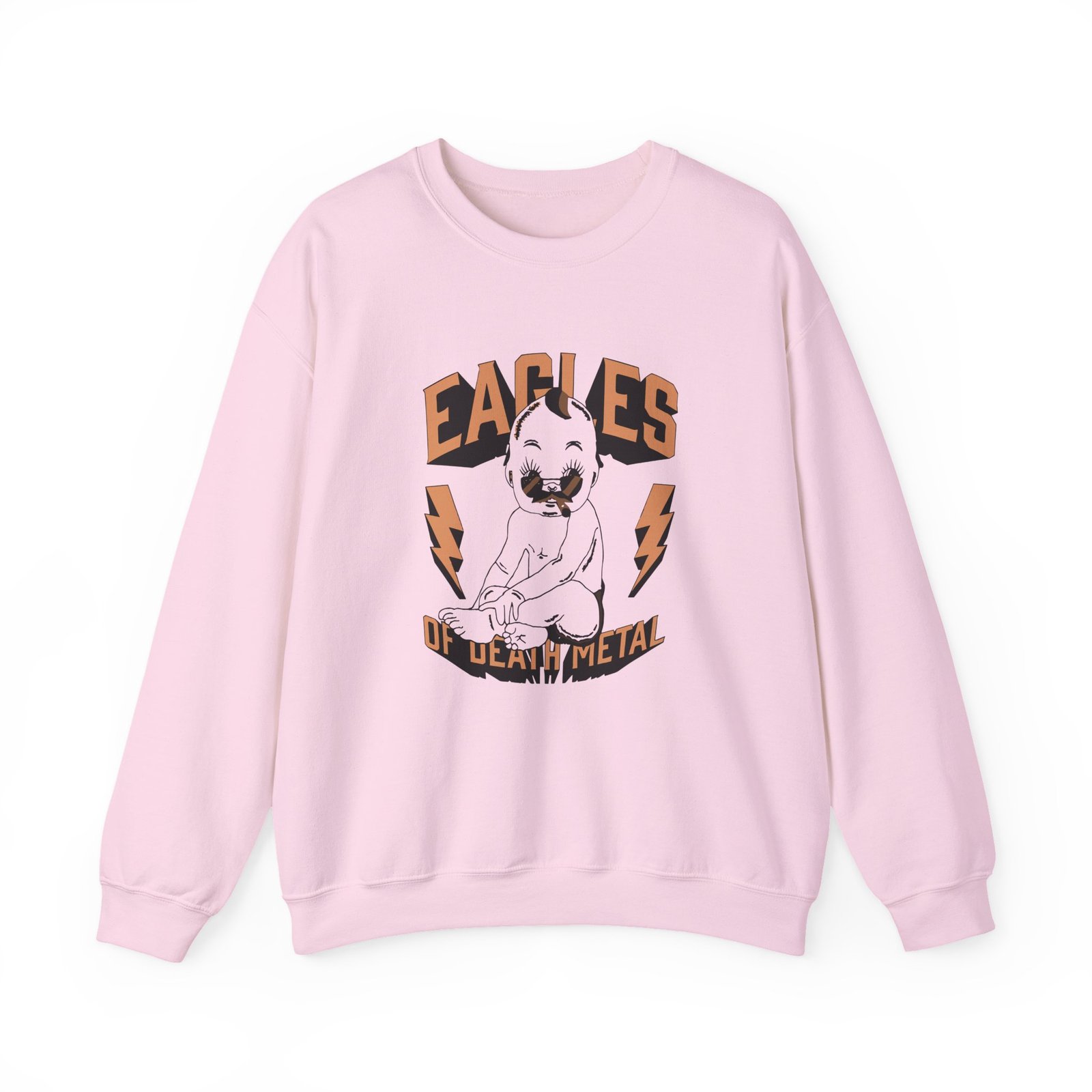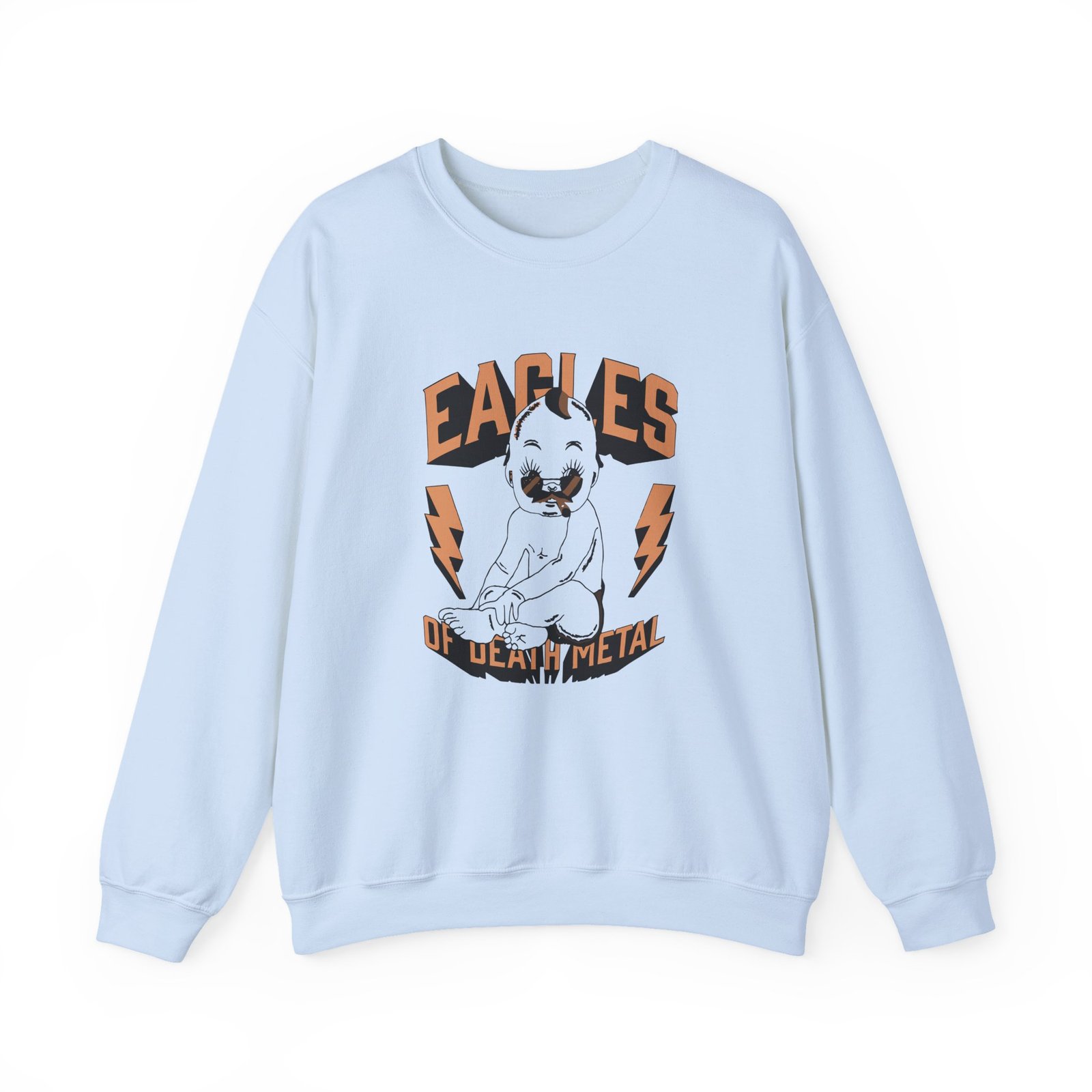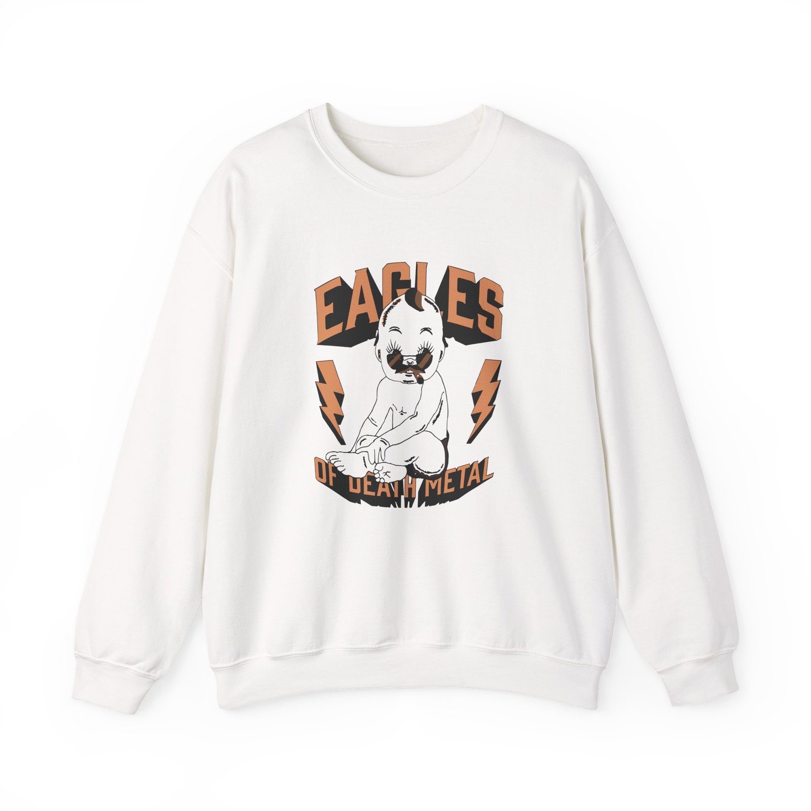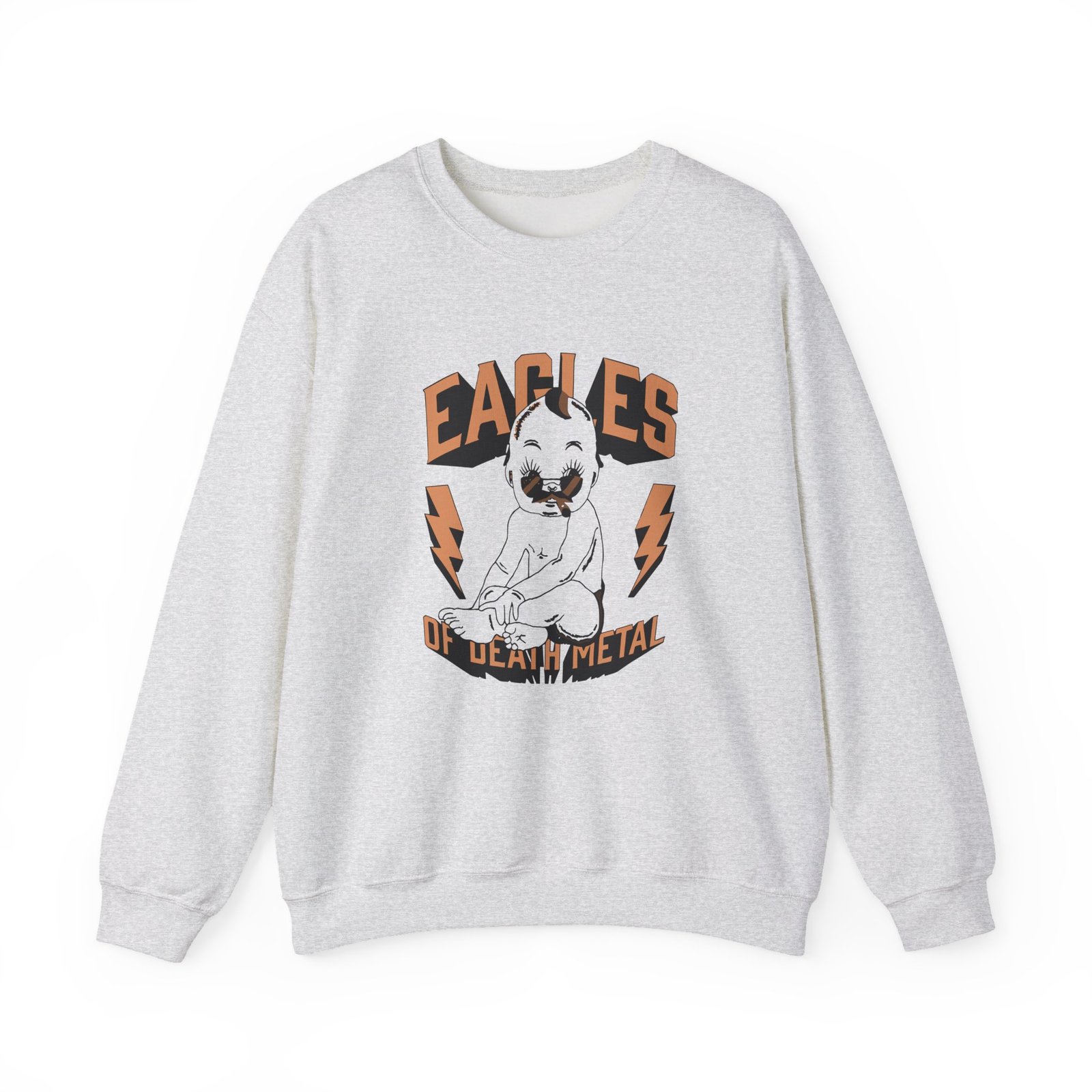 Ideal for any situation, a Eagles of Death Metal Baby unisex heavy blend crewneck sweatshirt is pure comfort. These garments are made from polyester and cotton. This combination helps designs come out looking fresh and beautiful. The collar is ribbed knit, so it retains its shape even after washing. There are no itchy side seams on these sweaters.