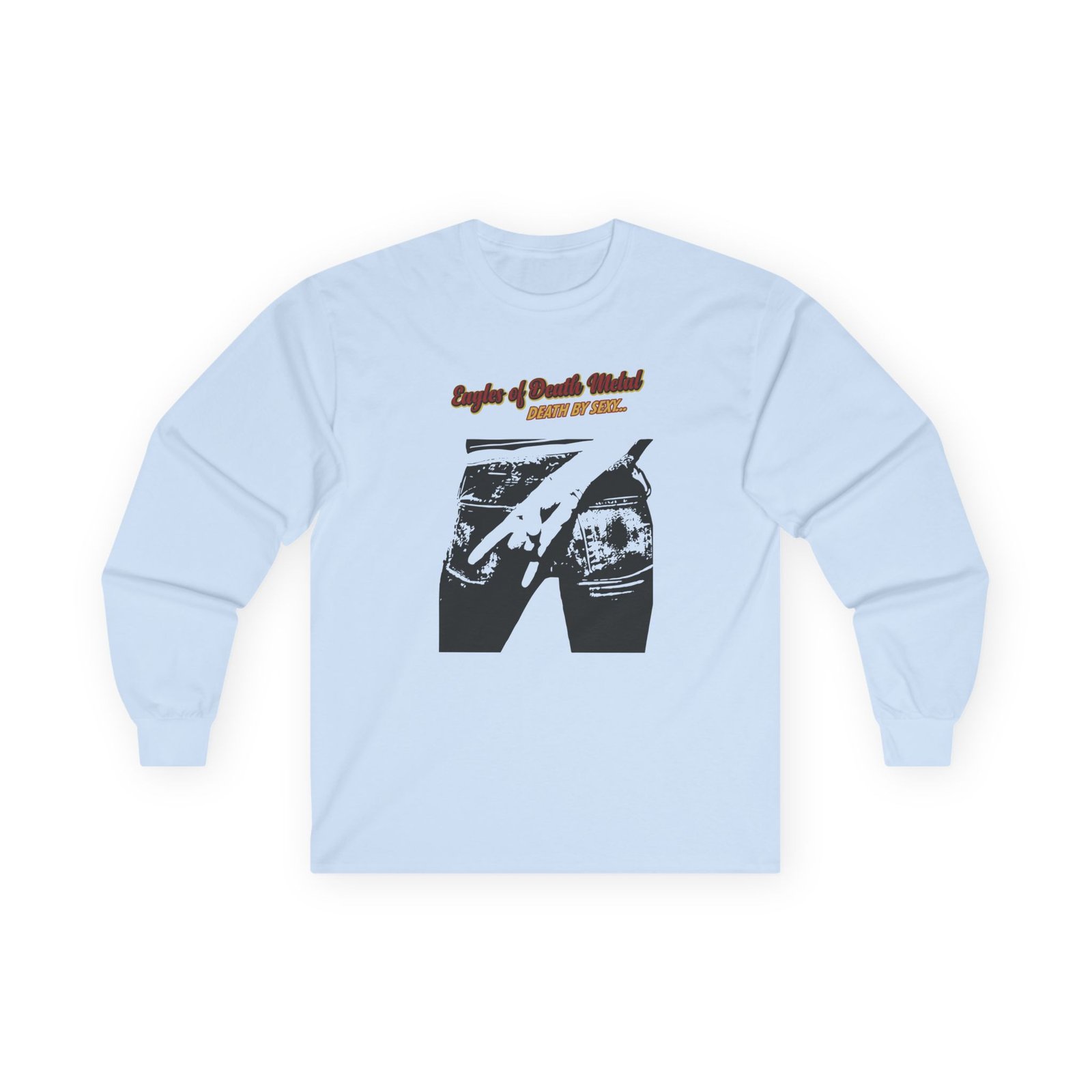 A bit more formal than a standard-issue t-shirt, the Eagles of Death Metal Death by Sexy ultra cotton long sleeve tee is a clear comfort winner. The sleeves also act as a nice frame. There are no side seams. The shoulders are taped for improved durability. This makes for a good fitting around the shoulders and neck. The cotton used for these shirts is environmentally friendly.