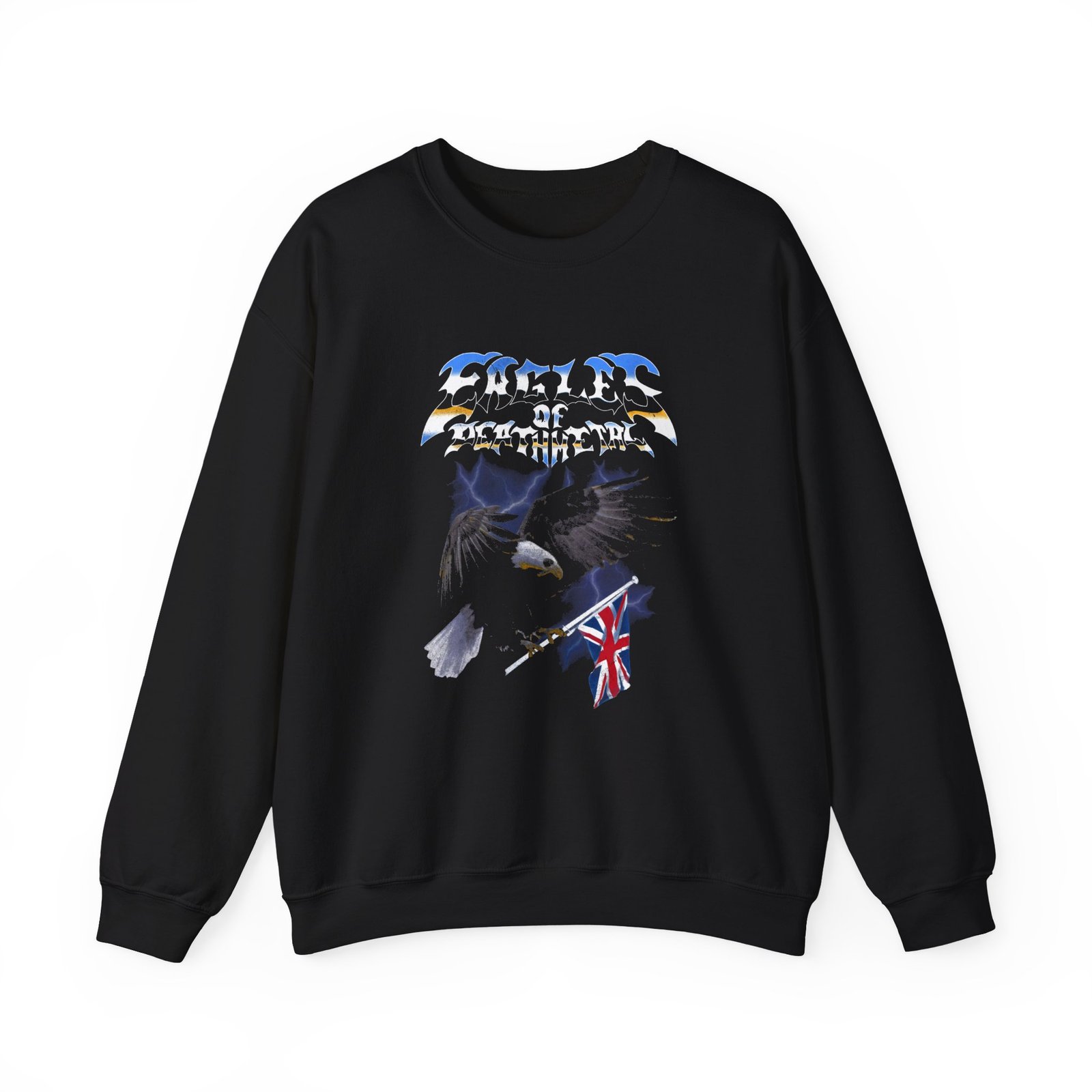 Ideal for any situation, a Eagles of Death Metal Eagle unisex heavy blend crewneck sweatshirt is pure comfort. These garments are made from polyester and cotton. This combination helps designs come out looking fresh and beautiful. The collar is ribbed knit, so it retains its shape even after washing. There are no itchy side seams on these sweaters.