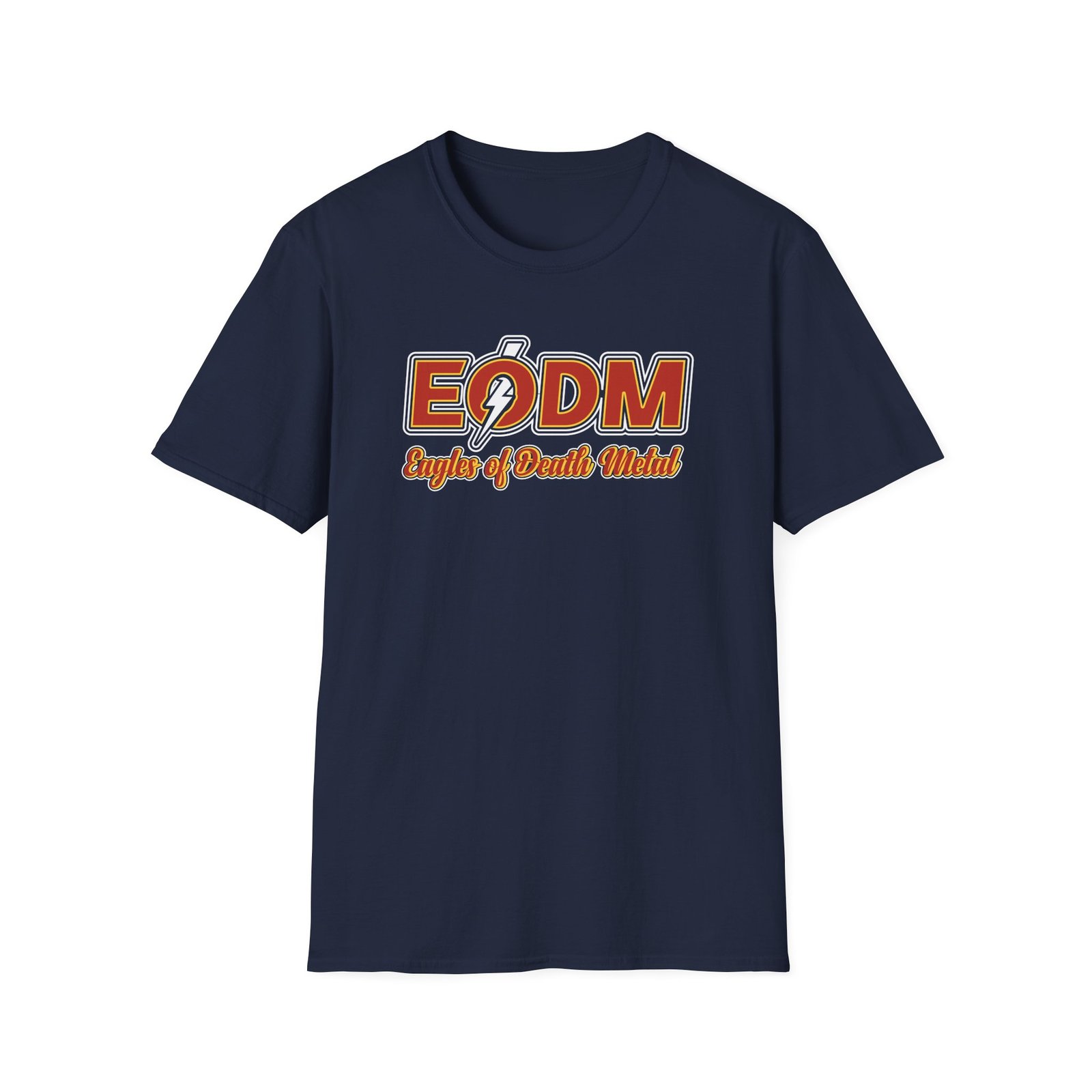 The Eagles of Death Metal unisex soft-style t-shirt puts a new spin on casual comfort. Made from very soft materials, this tee is 100% cotton for solid colors. Heather colors and sports grey include polyester. The shoulders have twill tape for improved durability. There are no side seams. The collar is made with ribbed knitting to prevent curling damage.