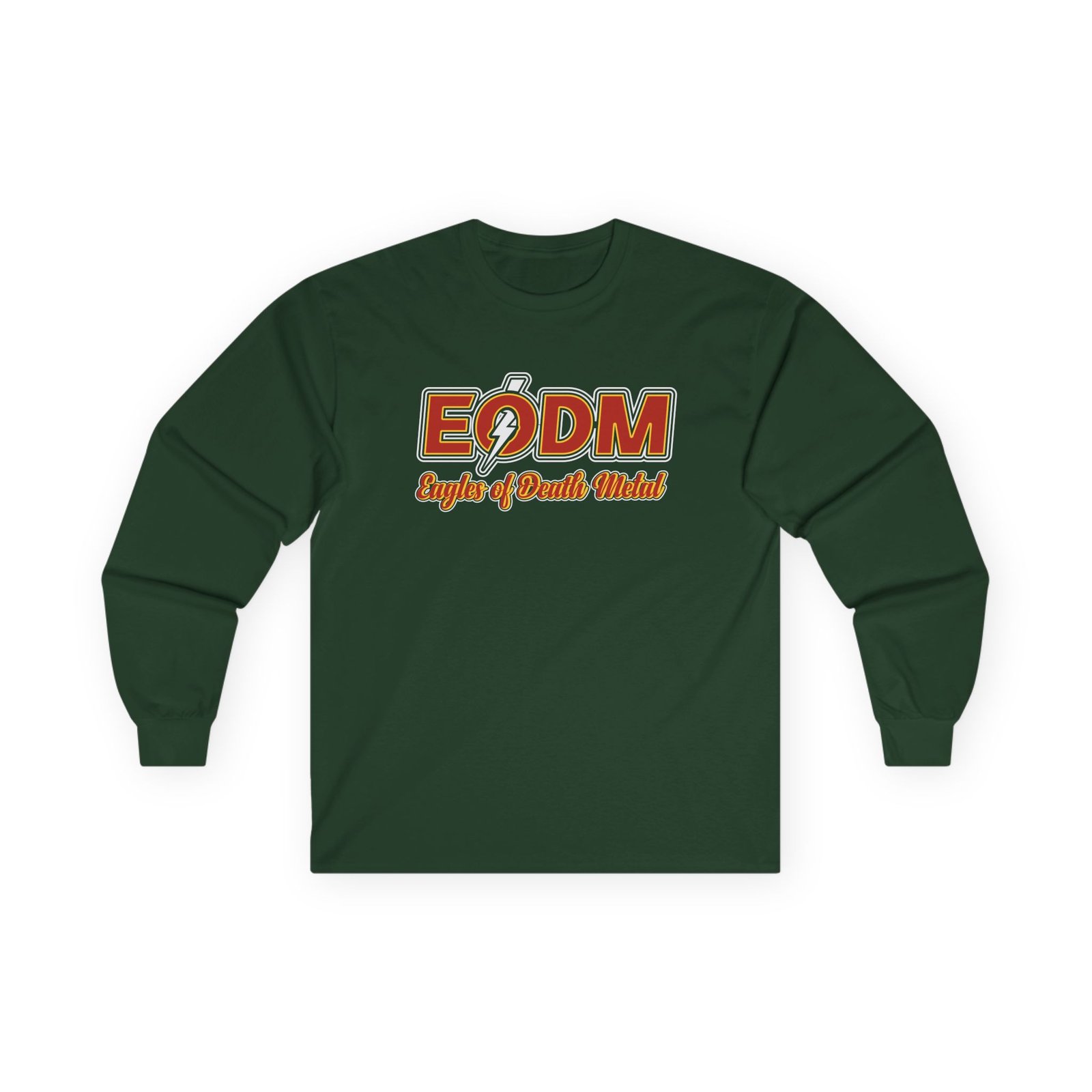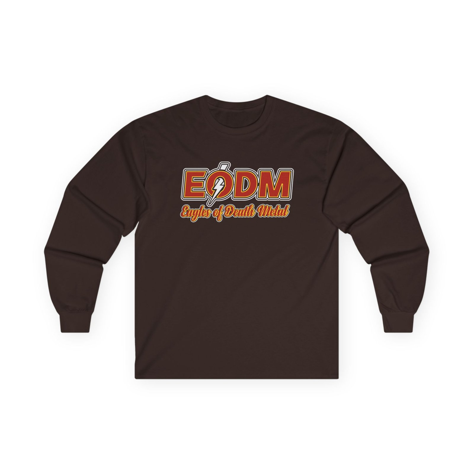 A bit more formal than a standard-issue t-shirt, the Eagles of Death Metal ultra cotton long sleeve tee is a clear comfort winner. The sleeves also act as a nice frame. There are no side seams. The shoulders are taped for improved durability. This makes for a good fitting around the shoulders and neck. The cotton used for these shirts is environmentally friendly.