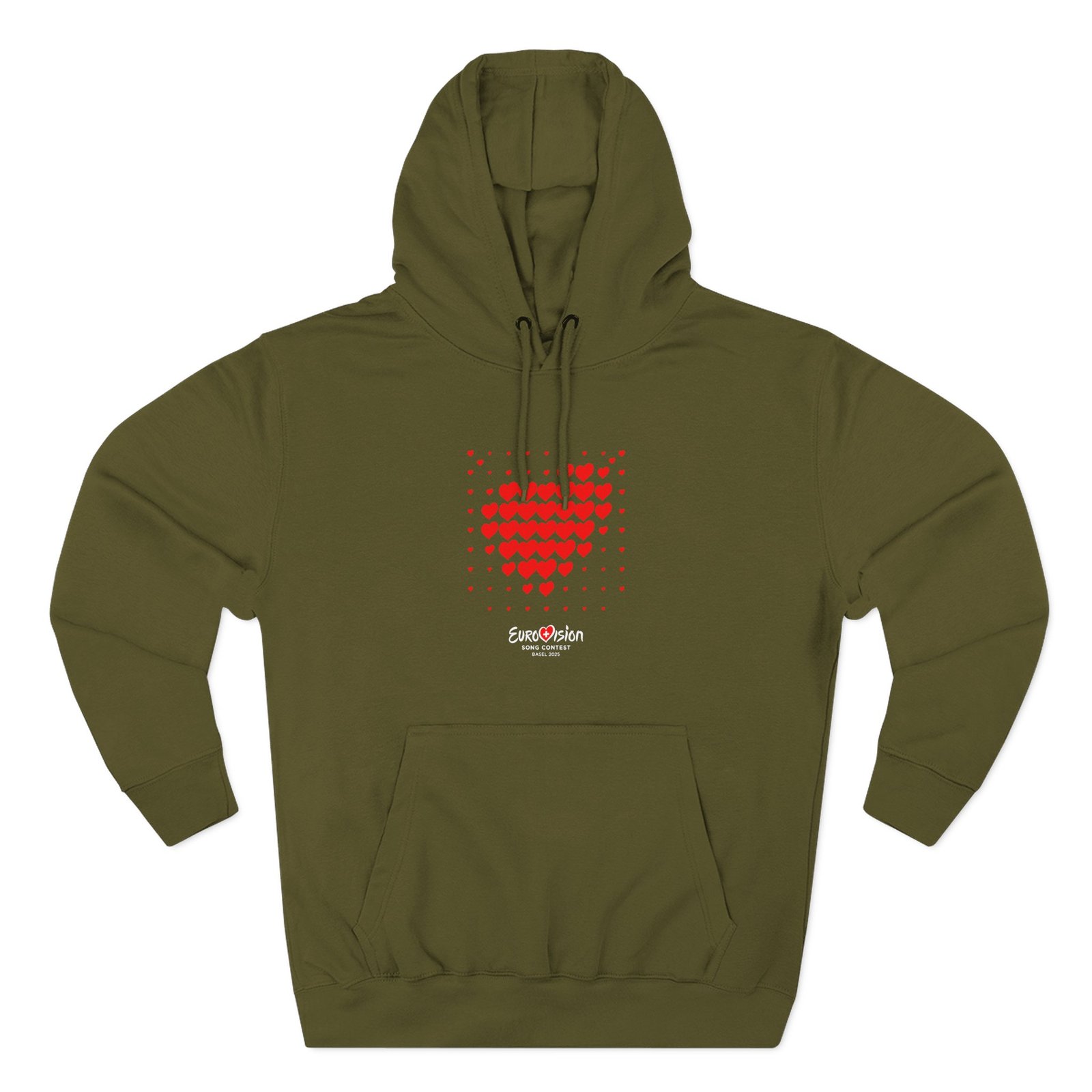Beat the cold with this Eurovision Red Heart pullover hoodie that’s just the right layer of warm and cozy. Made with three-panel fleece lining, this pullover is double stitched for durability and roomy. Pick one in your favorite color to match your style.