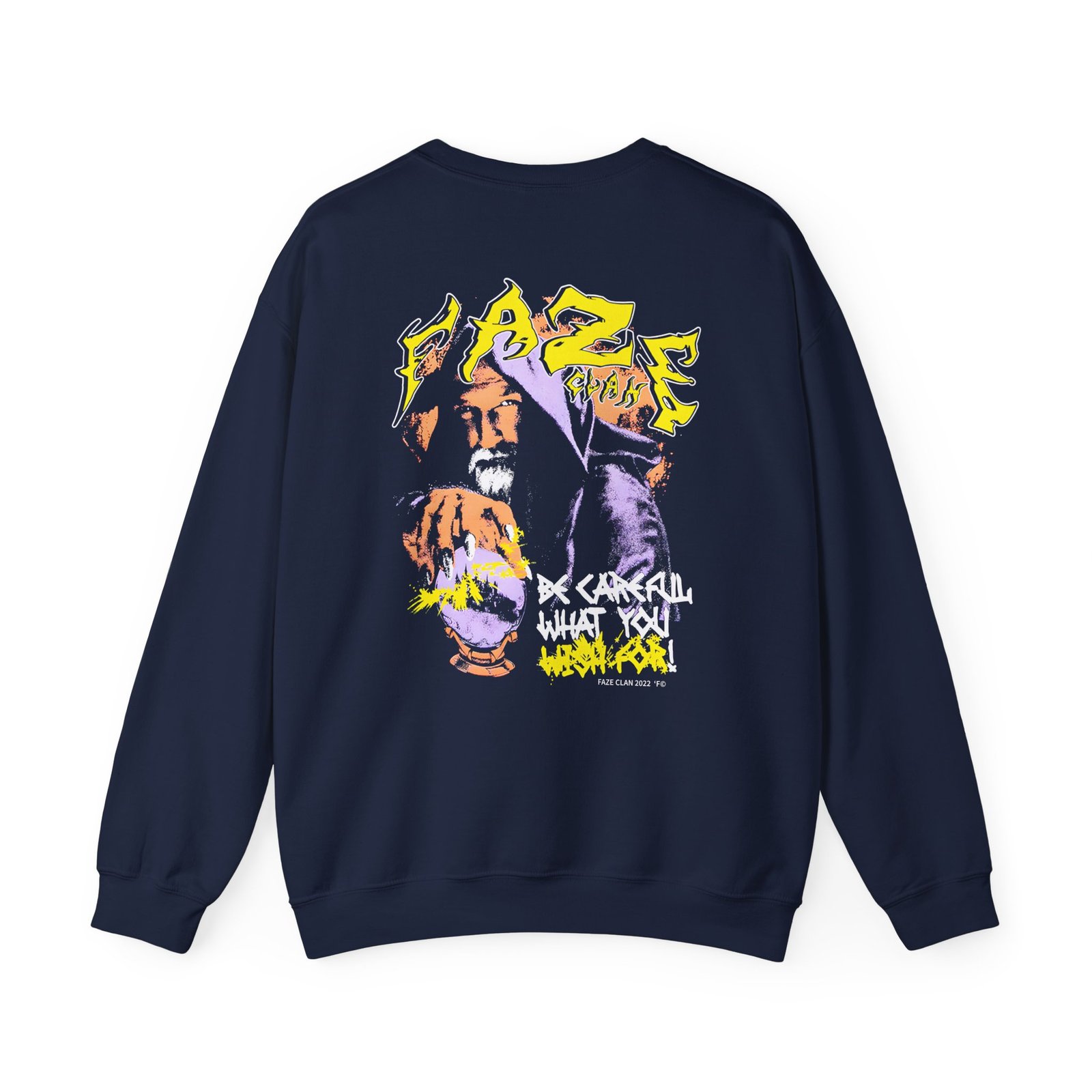Ideal for any situation, a Faze Clan Be Careful What You Wish for Wizard unisex heavy blend crewneck sweatshirt is pure comfort. These garments are made from polyester and cotton. This combination helps designs come out looking fresh and beautiful. The collar is ribbed knit, so it retains its shape even after washing. There are no itchy side seams on these sweaters.
