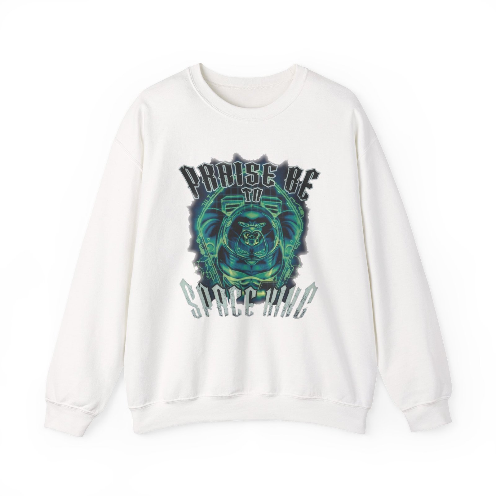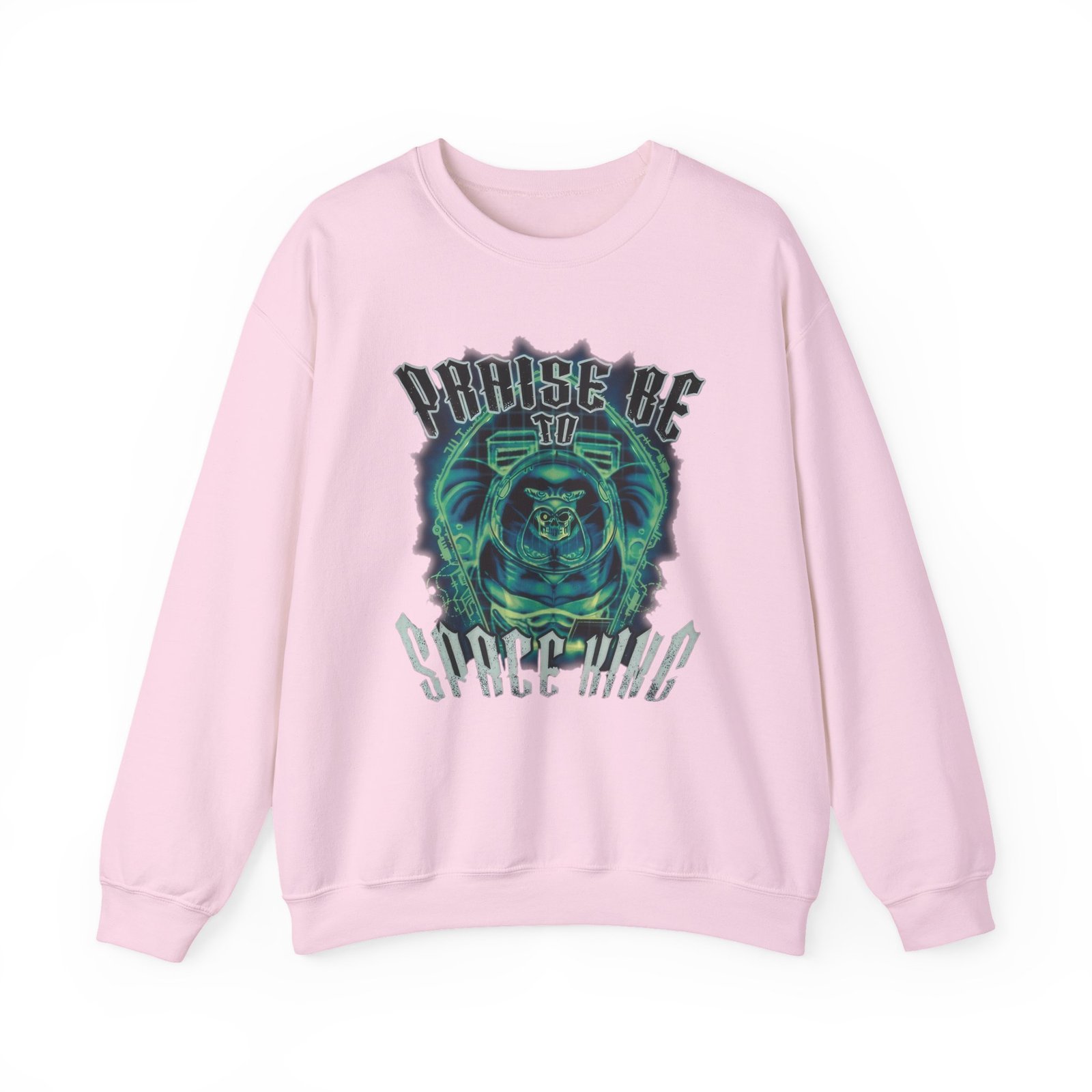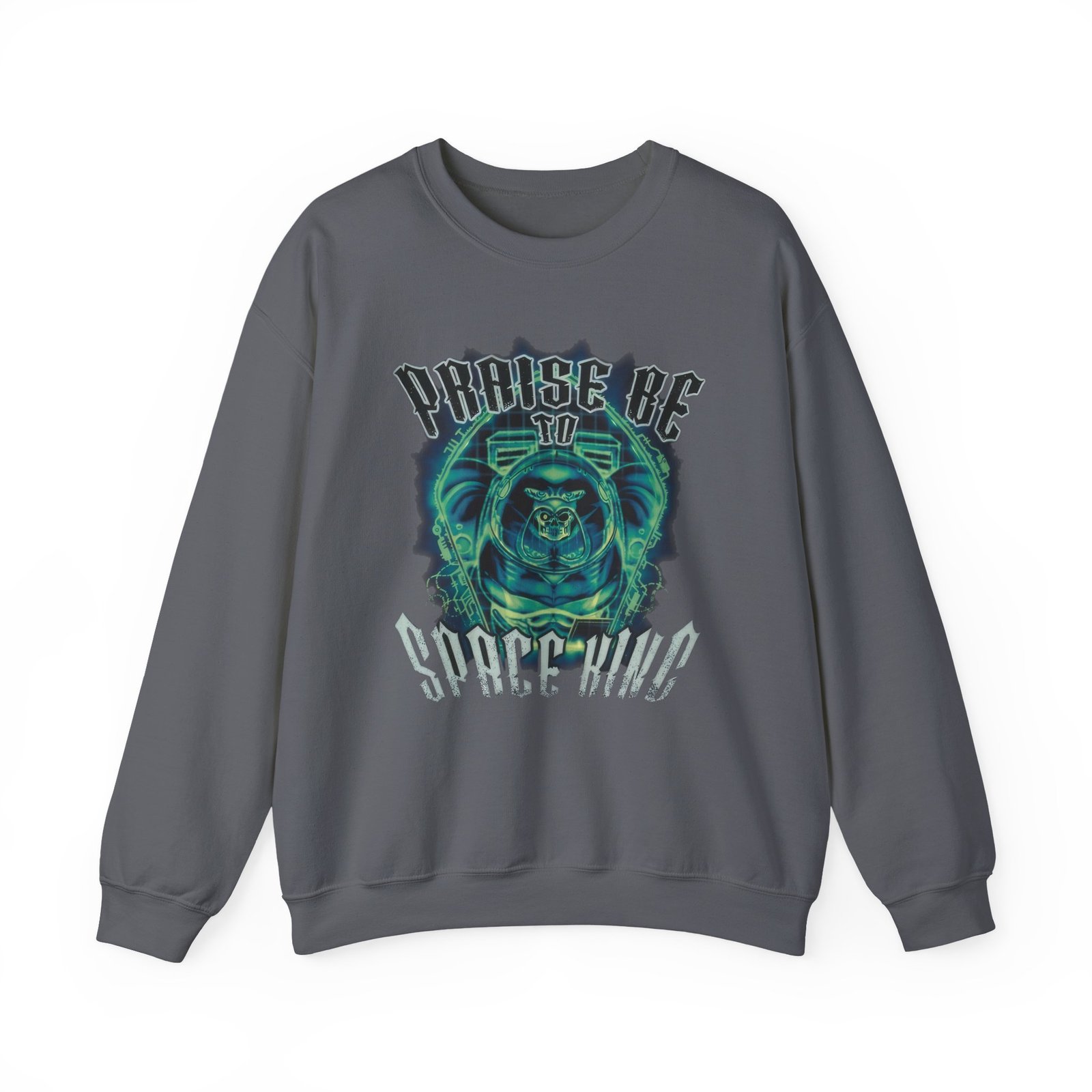 Ideal for any situation, a Flashgitz Praise Be to Space King unisex heavy blend crewneck sweatshirt is pure comfort. These garments are made from polyester and cotton. This combination helps designs come out looking fresh and beautiful. The collar is ribbed knit, so it retains its shape even after washing. There are no itchy side seams on these sweaters.