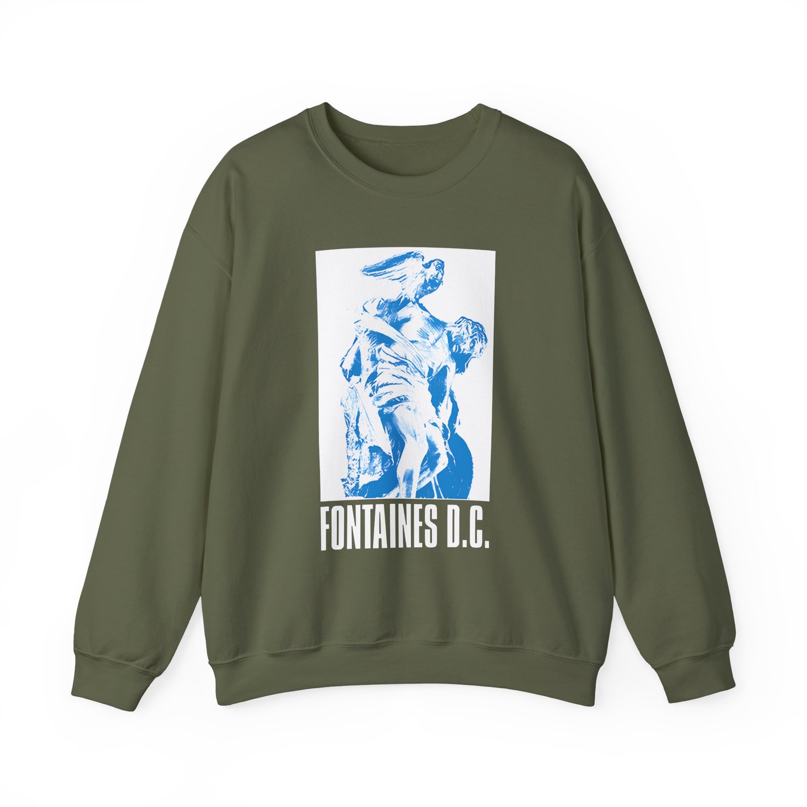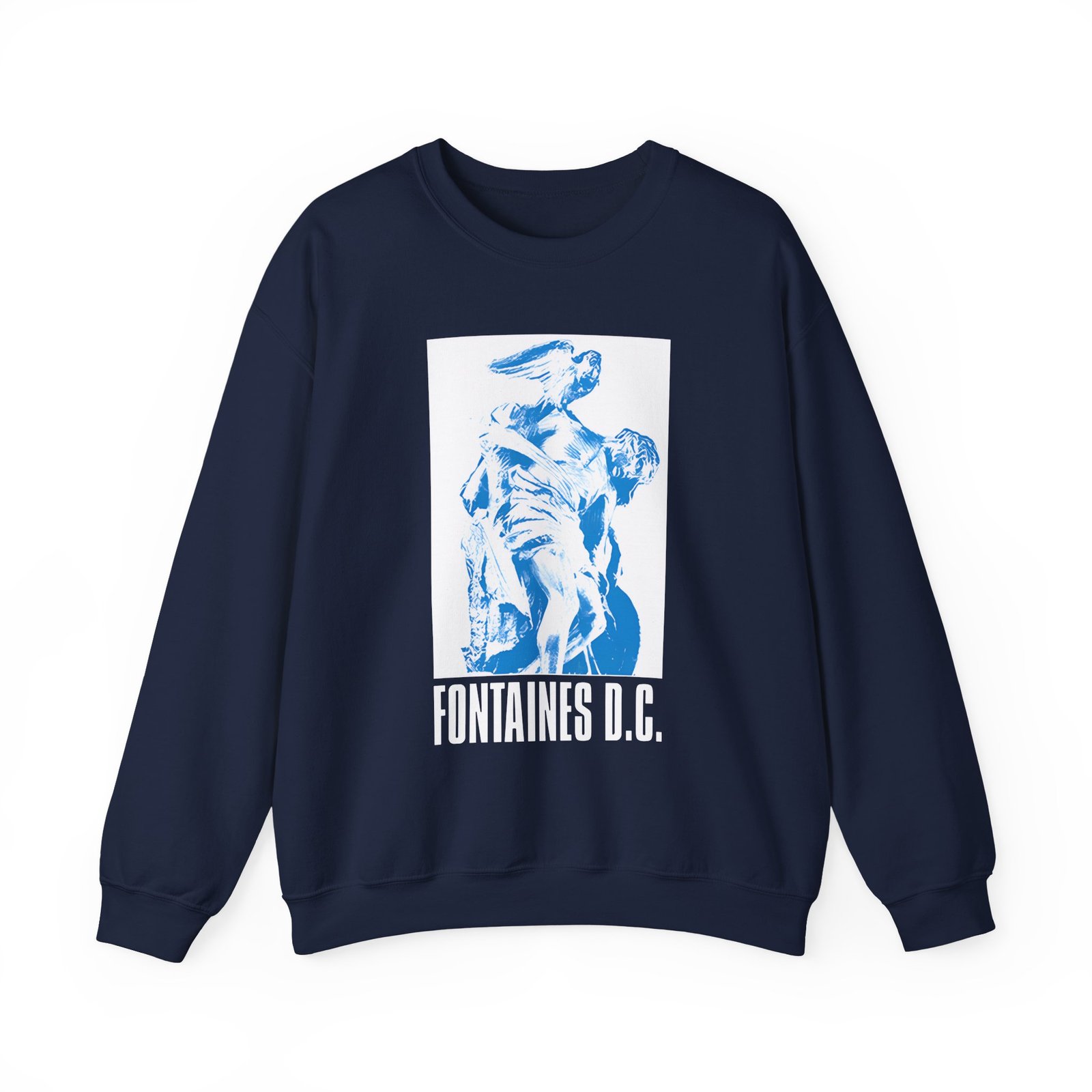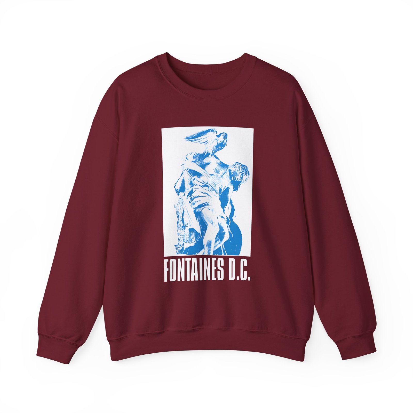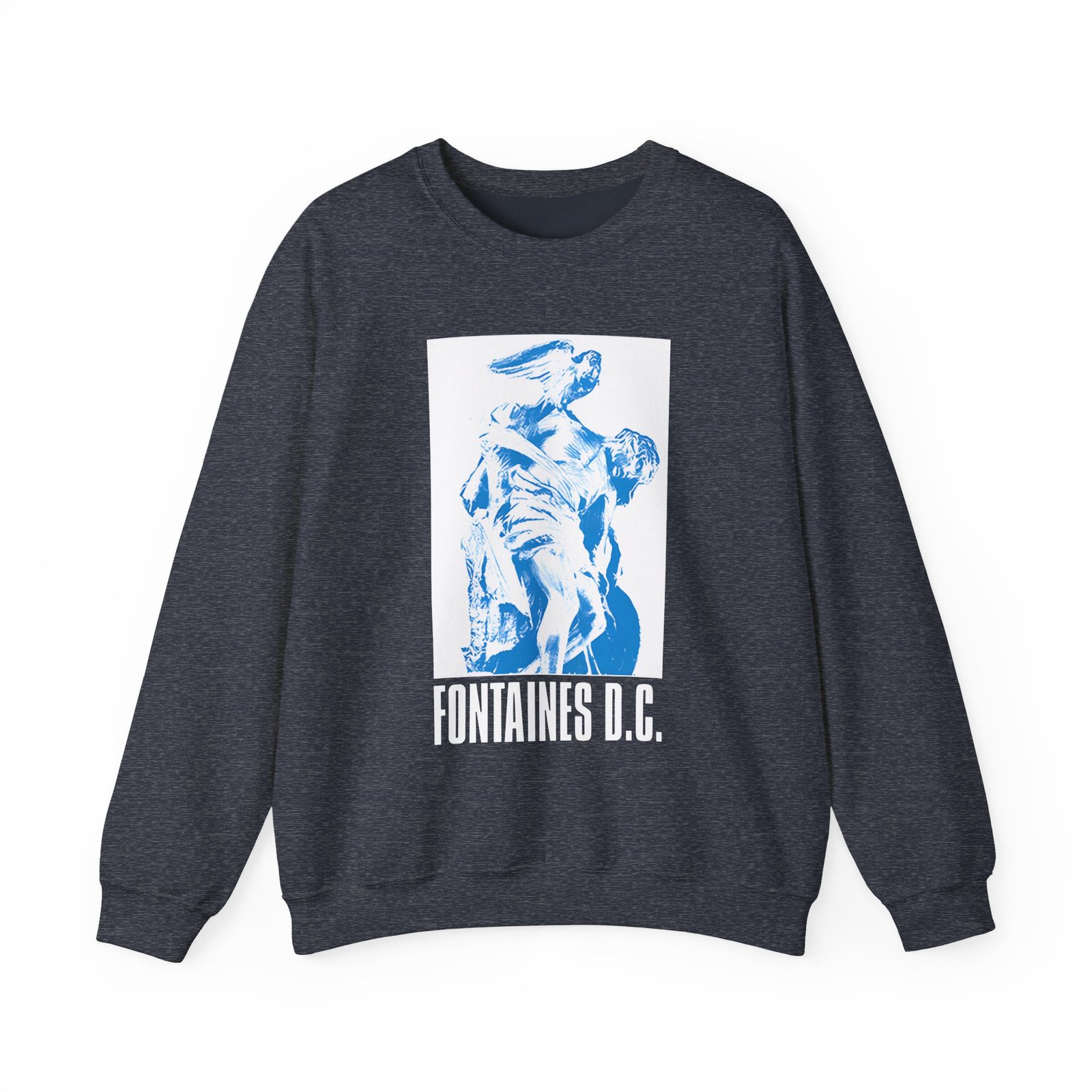 Ideal for any situation, a Fontaines D.C. unisex heavy blend crewneck sweatshirt is pure comfort. These garments are made from polyester and cotton. This combination helps designs come out looking fresh and beautiful. The collar is ribbed knit, so it retains its shape even after washing. There are no itchy side seams on these sweaters.
