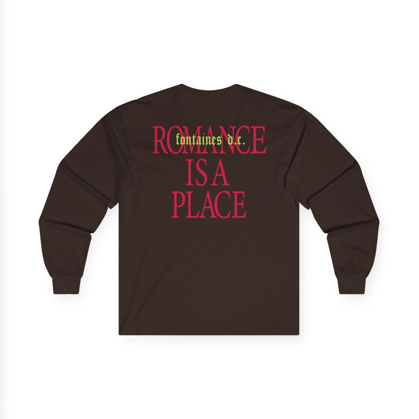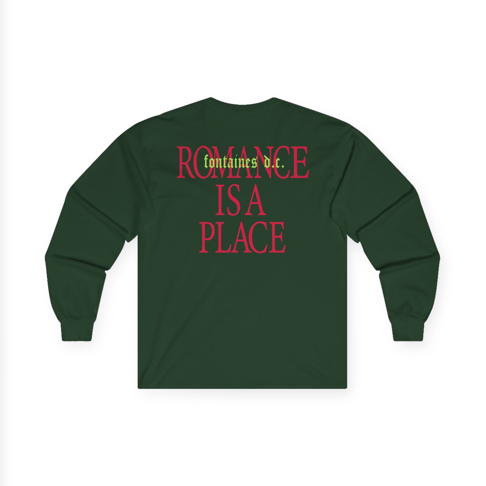 A bit more formal than a standard-issue t-shirt, the Fontaines Romance Is A Place ultra cotton long sleeve tee is a clear comfort winner. The sleeves also act as a nice frame. There are no side seams. The shoulders are taped for improved durability. This makes for a good fitting around the shoulders and neck. The cotton used for these shirts is environmentally friendly.