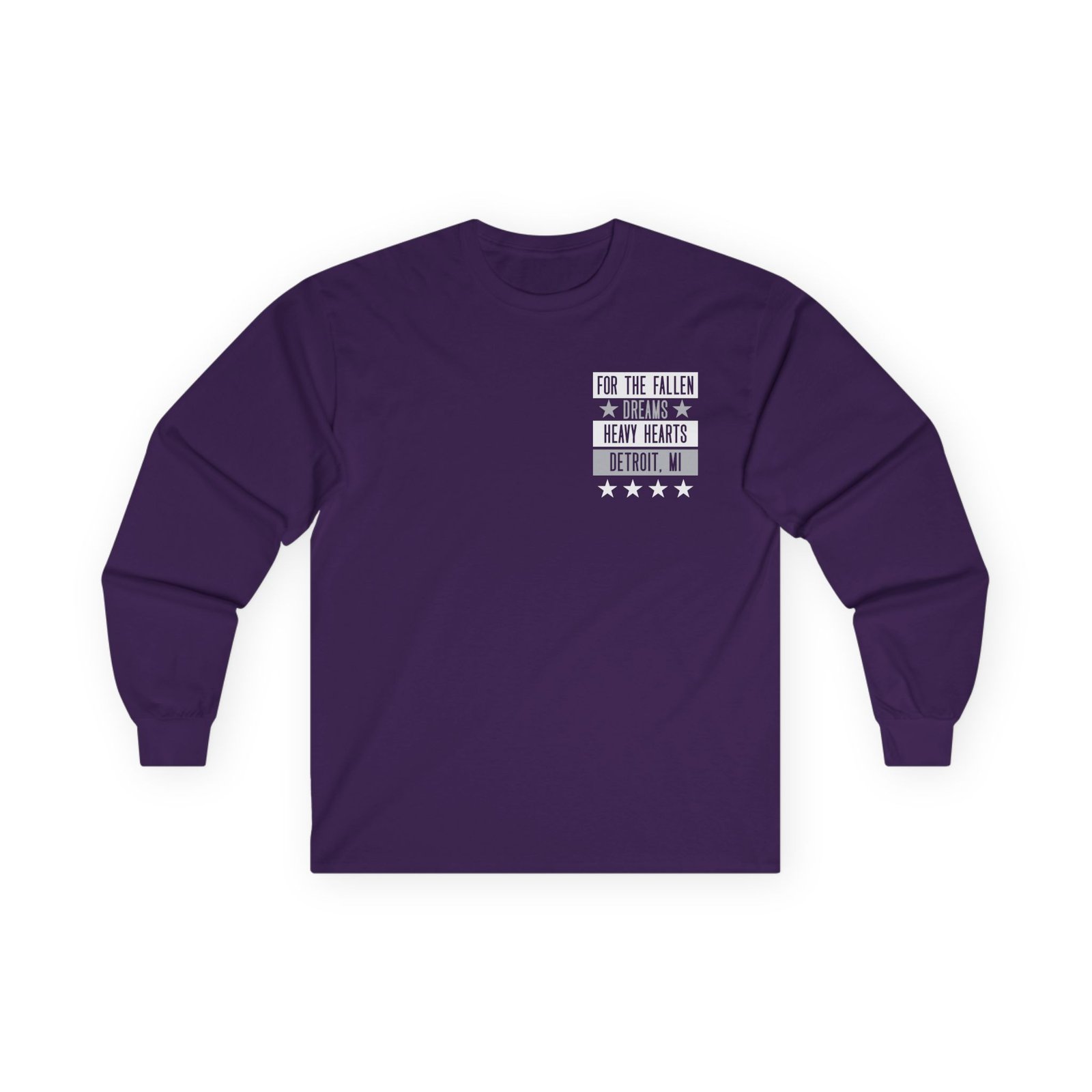 A bit more formal than a standard-issue t-shirt, the For the Fallen Dreams Heavy Hearts ultra cotton long sleeve tee is a clear comfort winner. The sleeves also act as a nice frame. There are no side seams. The shoulders are taped for improved durability. This makes for a good fitting around the shoulders and neck. The cotton used for these shirts is environmentally friendly.